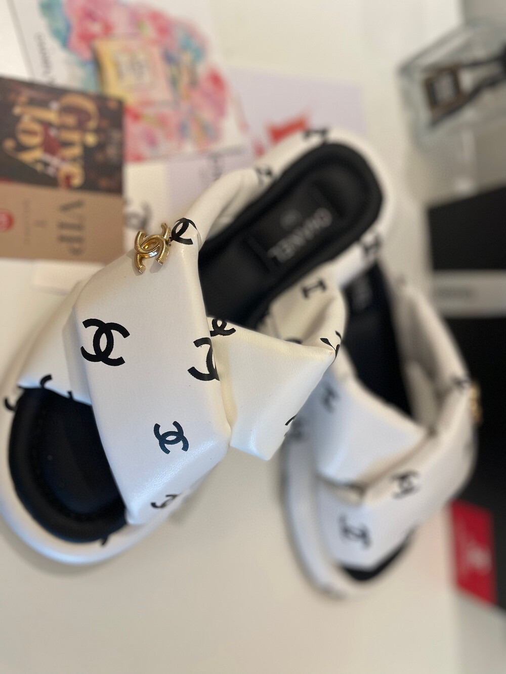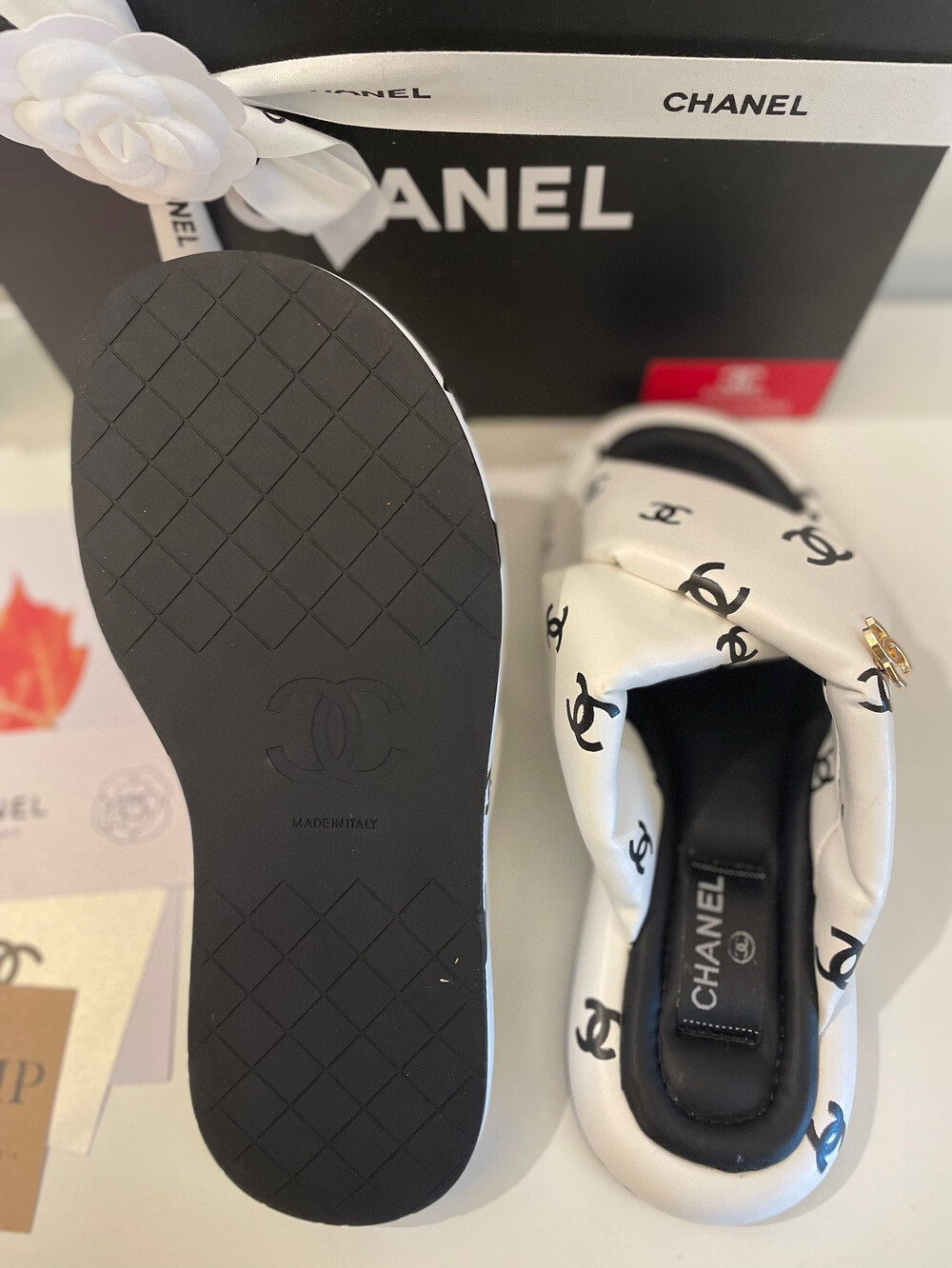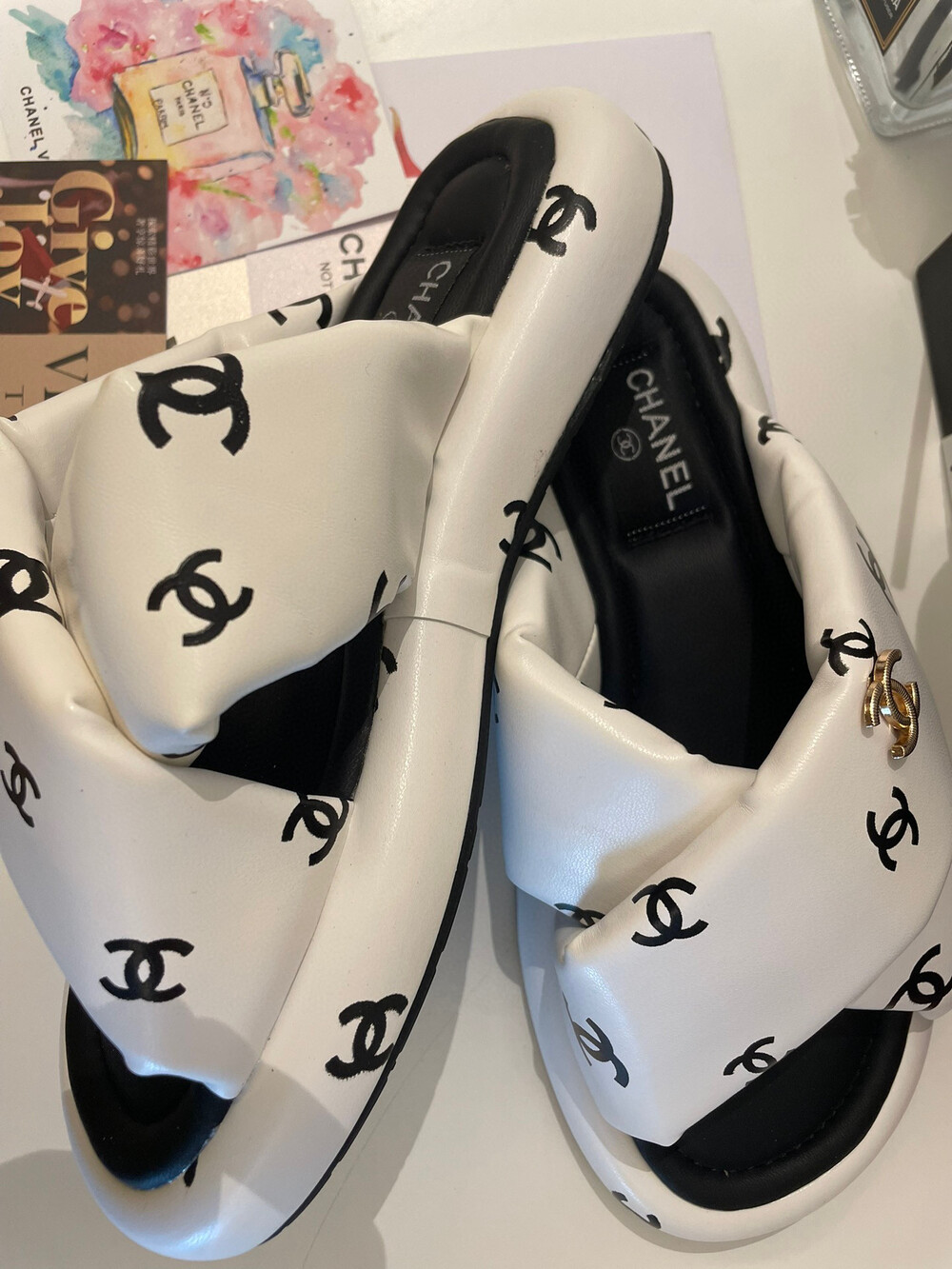 Chanel VIP Gift Slipper Special 35-40 yards Chanel Cross Platform Slippers. This cross-platform mule has a very comfortable fit as it gently wraps the top of the foot with cushion material. I recommend the standard size. The standard size is prettier because it is more elastic than leather. It's a model that I recommend daily because it doesn't come out with this kind of material