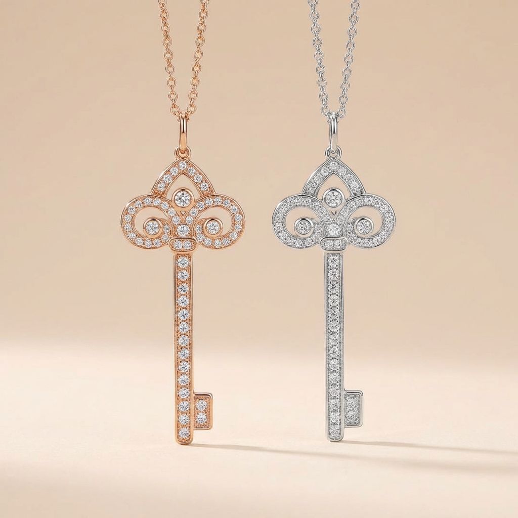 this key pendant is designed with a refined silhouette and delicately