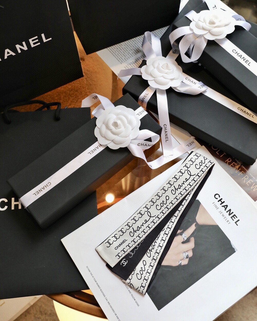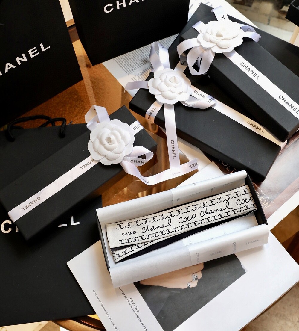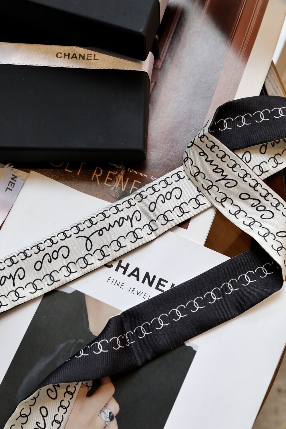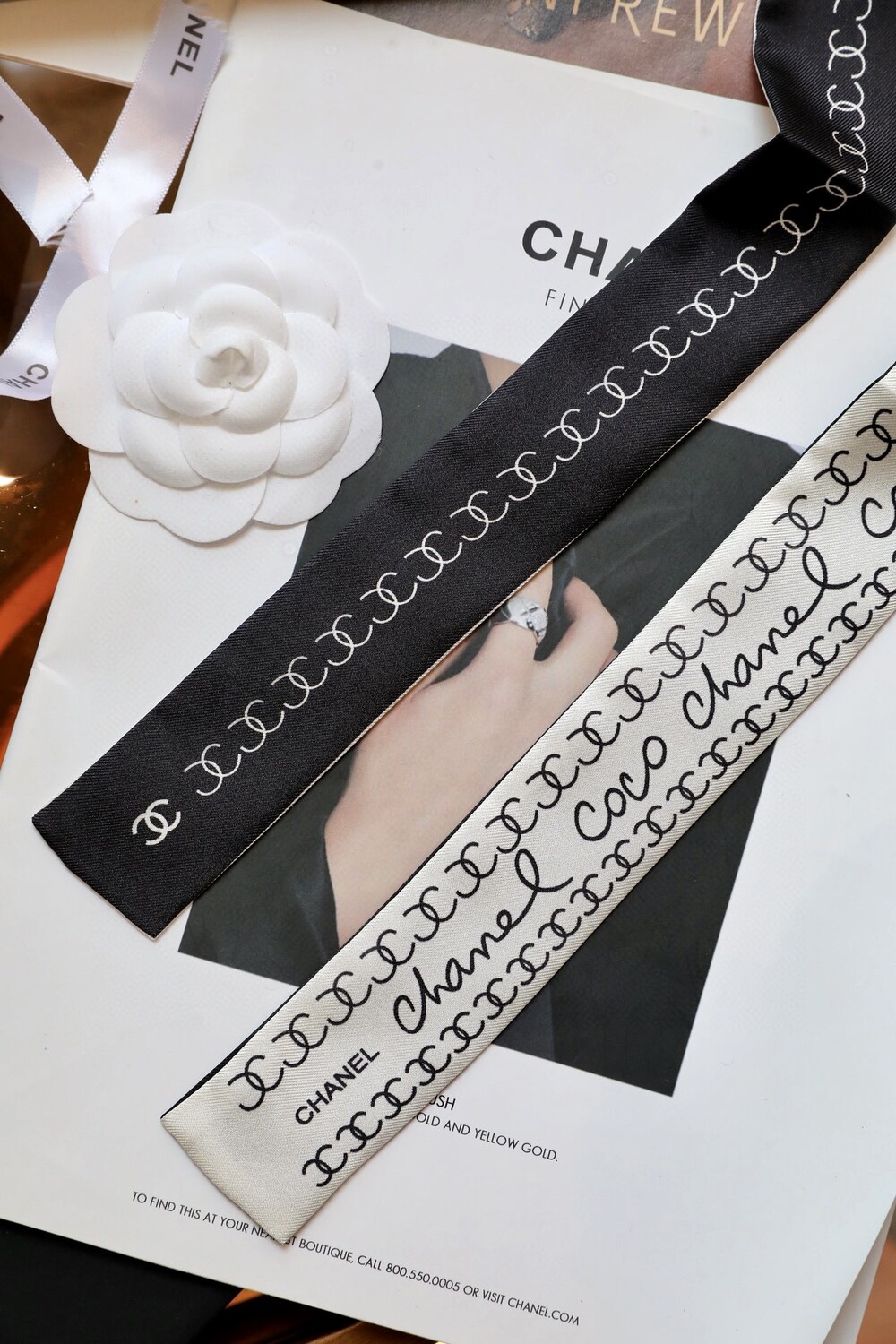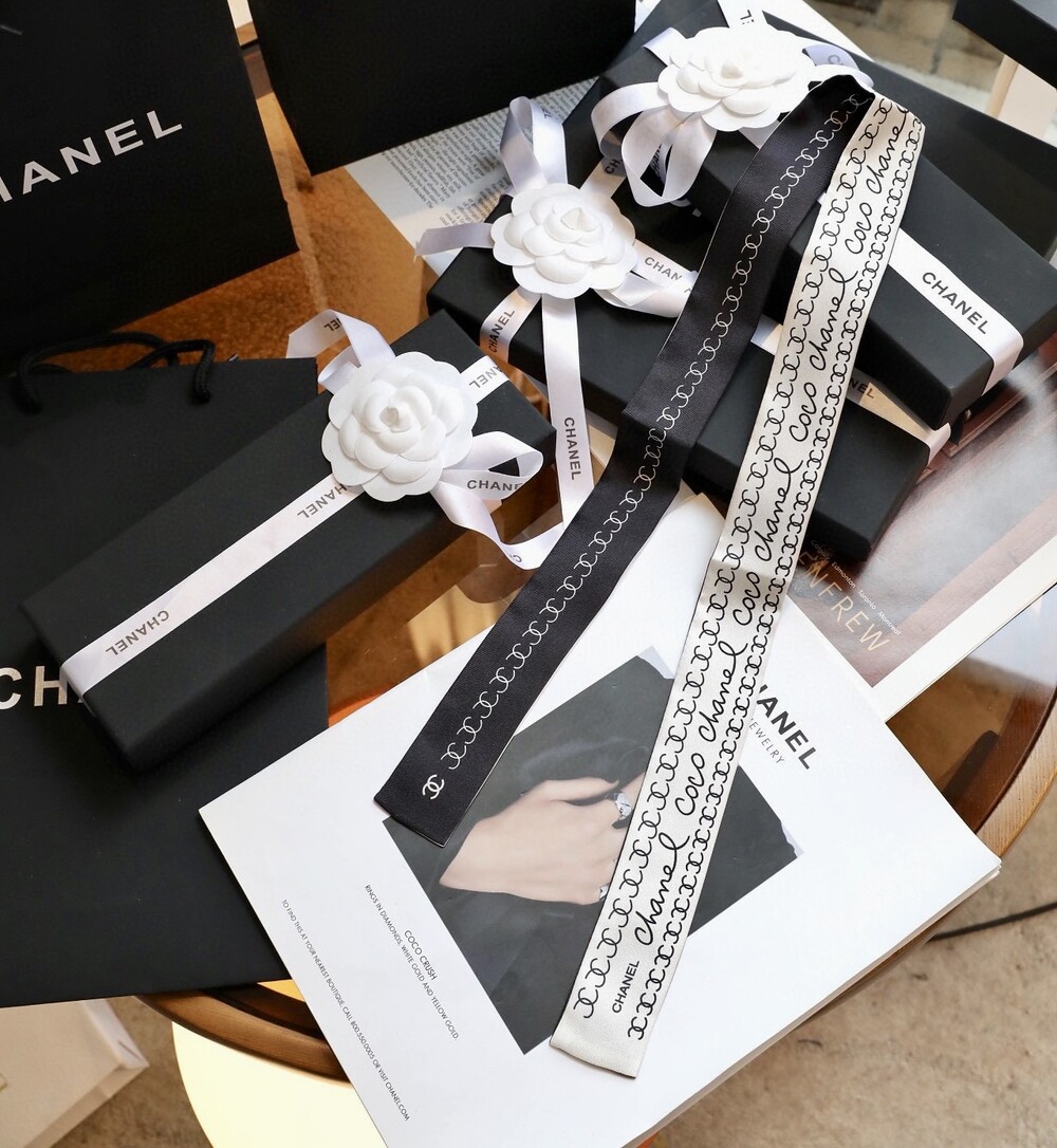 including gift box package mail, new letter style, website synchronization, CHANEL hairband / ribbon style Can be a small scarf, tied hair, tied handbag, tied in wrist decoration!Multifunctional whatever you want to match!Double-sided twill silkSpecification 3.5*90