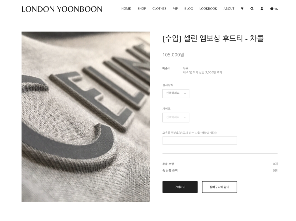 셀린 엠보싱은 후드마감, 마감부분 각인, 고리 각인, 택, 끈, 엠보싱 등