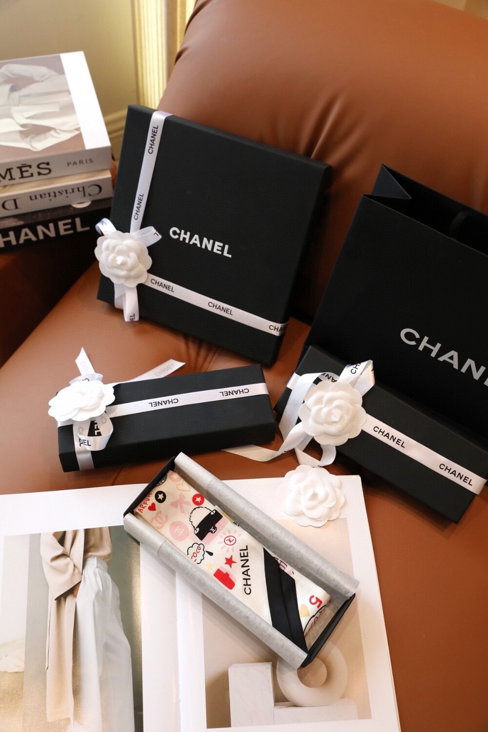 gift box package chanel 23N new/irresistible fragrance grandmother's small flower scarfSmall and exquisite daily love of good thingsConscientiously remembered, I have seen such a delicate and charming little silk scarf for a long time.It's really fragrant, mini size 5/110cm silk hair scarfUnderstand naturally Unique, better lacking than over-exhaustingMaterial: 100% double-sided silk scarf