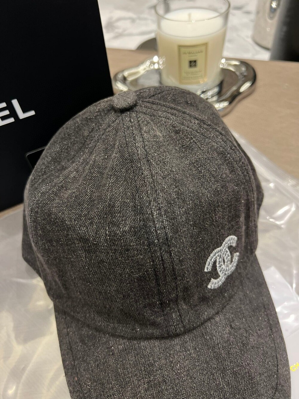 Chanel Little Red Book Hot BuyDenim with sequins, super literary style exclusive beauty beauty letteringAny small white skirt can attract a lot of attentionHead circumference 55cm can be done without picking people