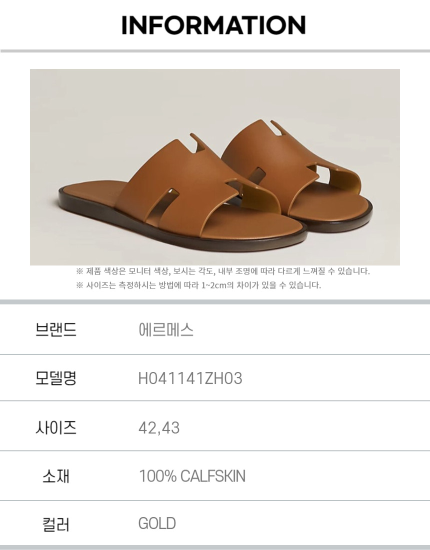 [국내재고보유] 에르메스 이즈미르 샌들[GOLD/42] H041141ZH03 , H041141ZH02 2컬러