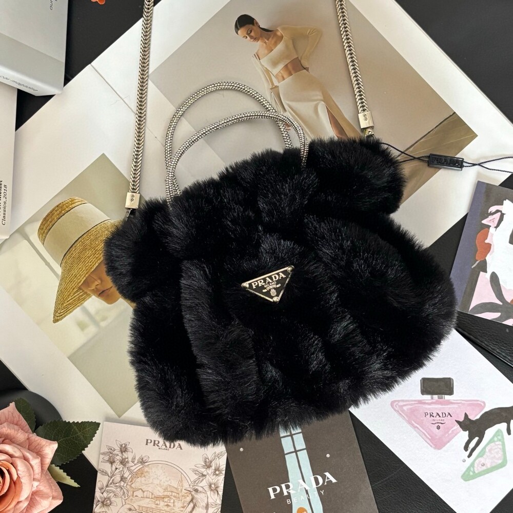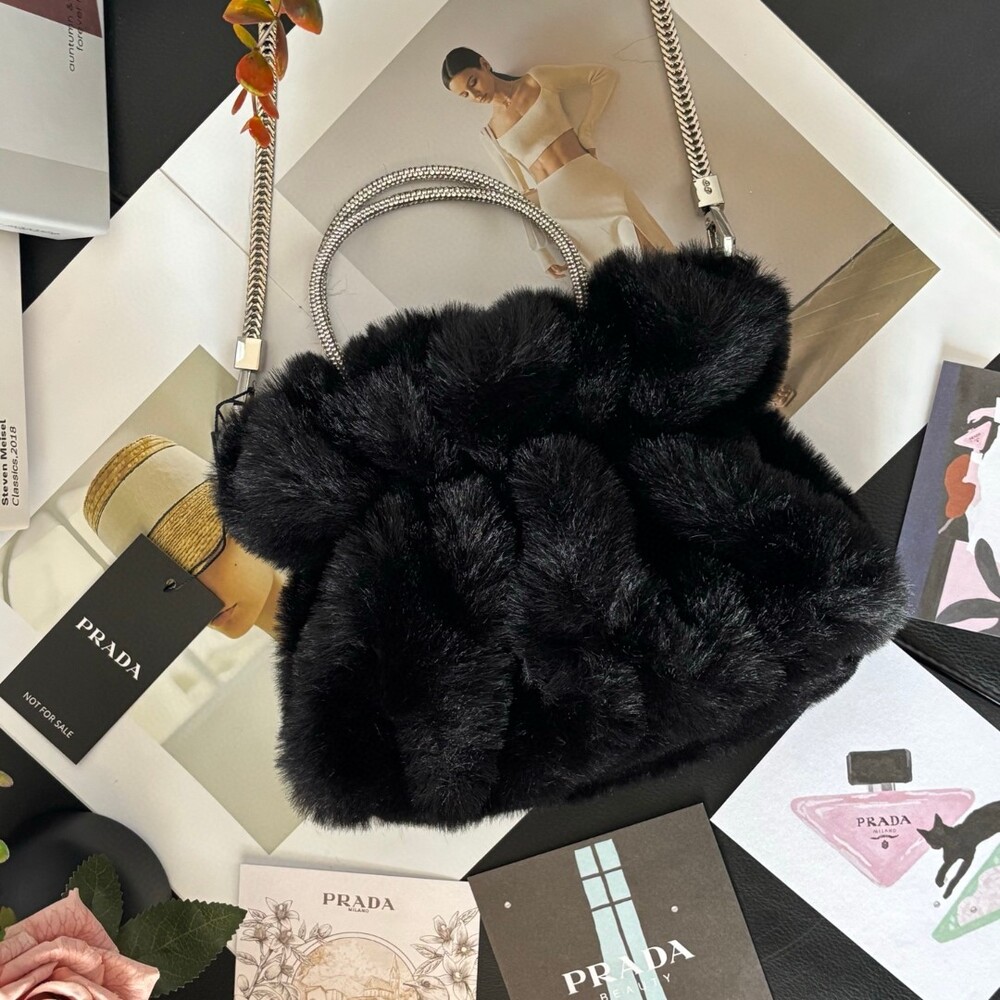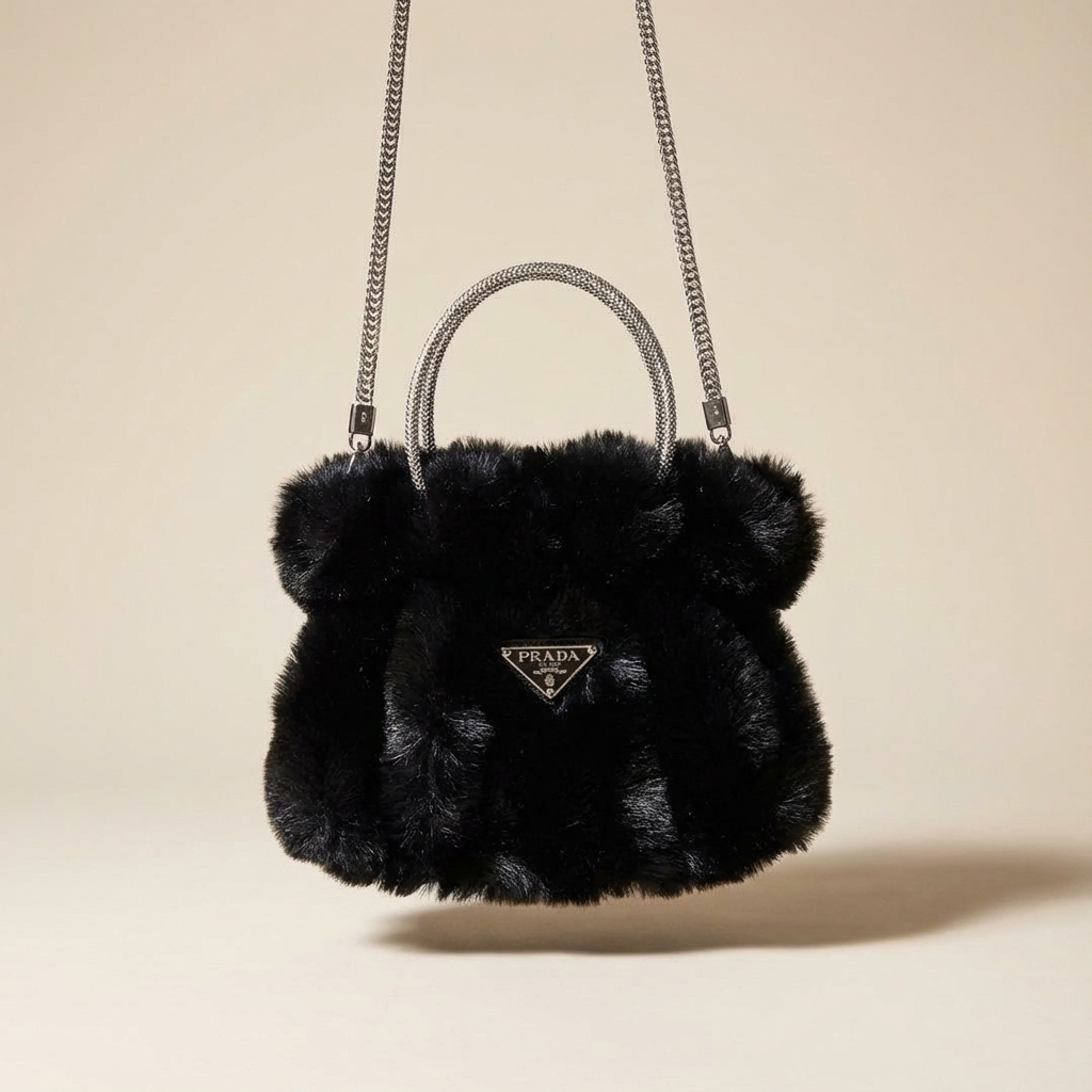 The Prada Faux Fur Chain Pouch Bag brings cozy luxury to the winter season.