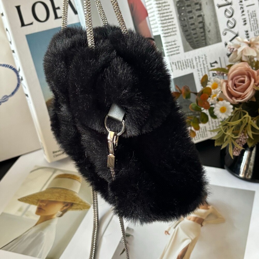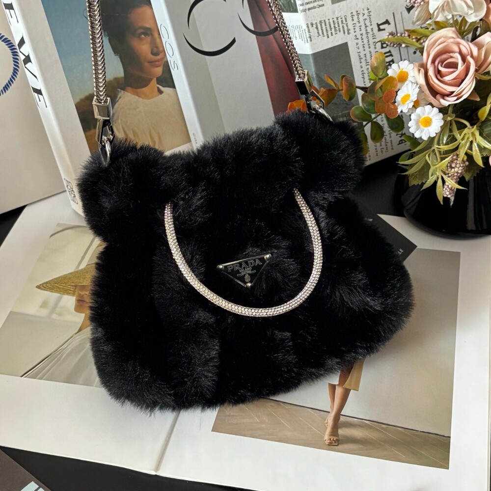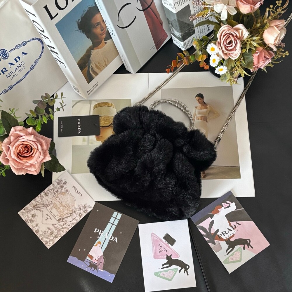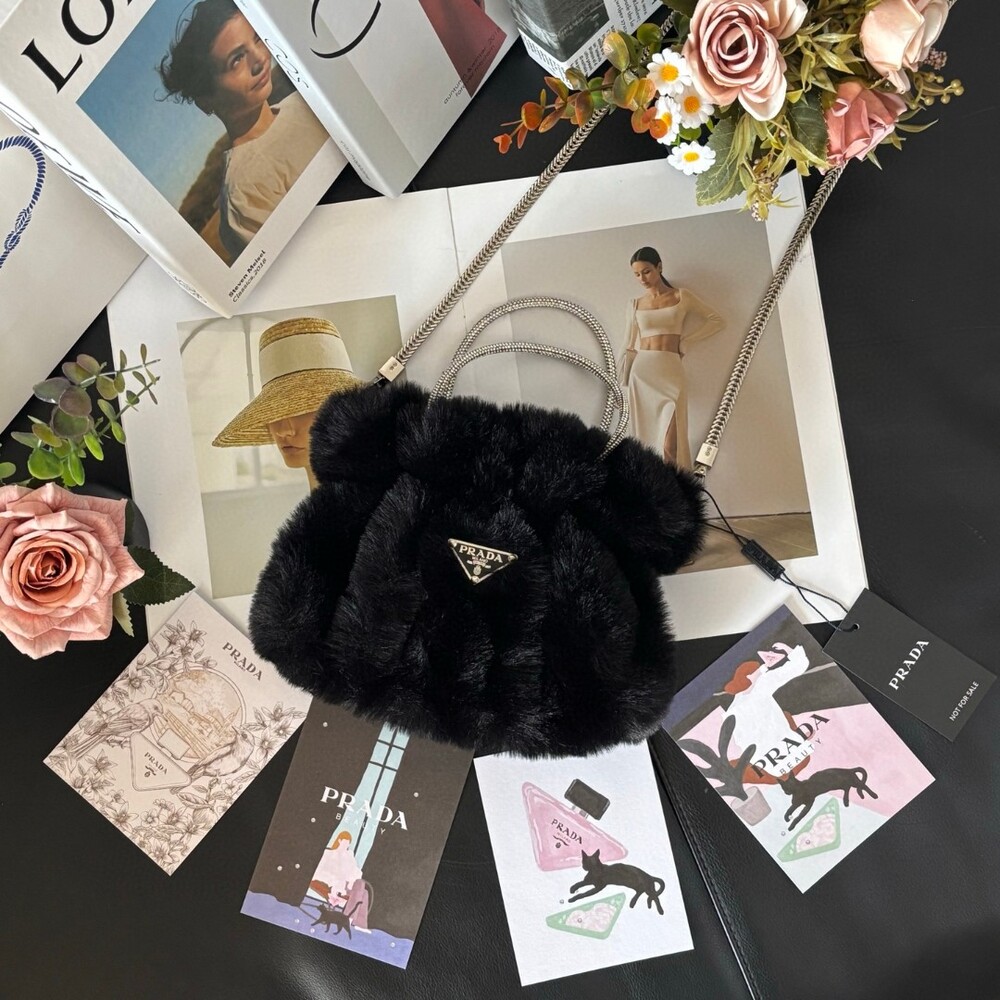 The Prada Faux Fur Chain Pouch Bag brings cozy luxury to the winter season.