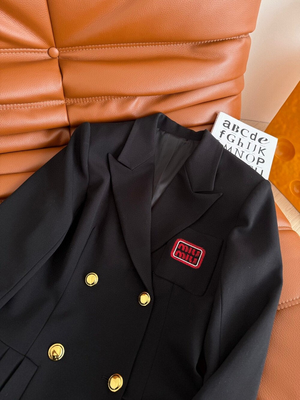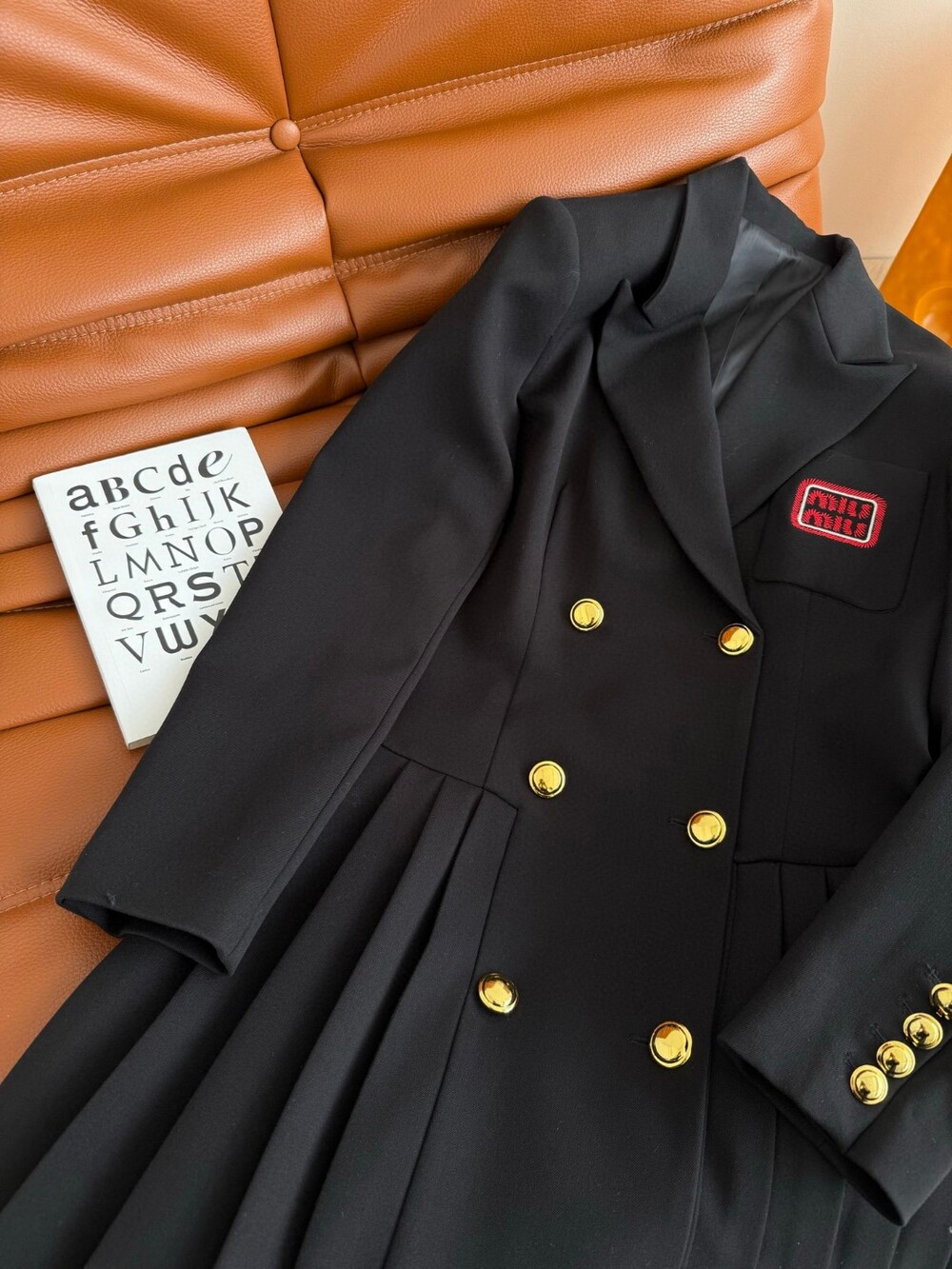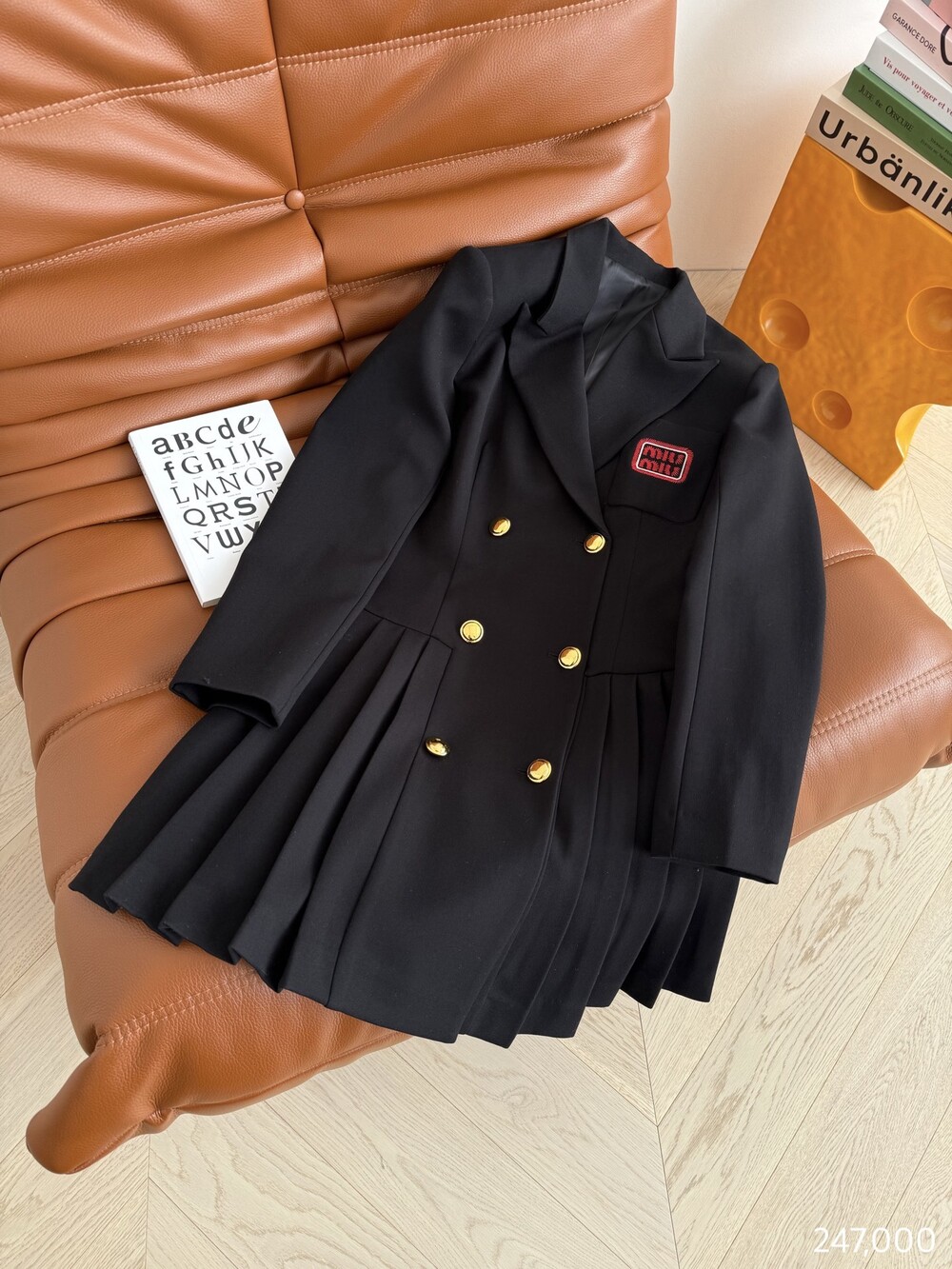 E. miu 금장 버튼 플리츠 원피스
