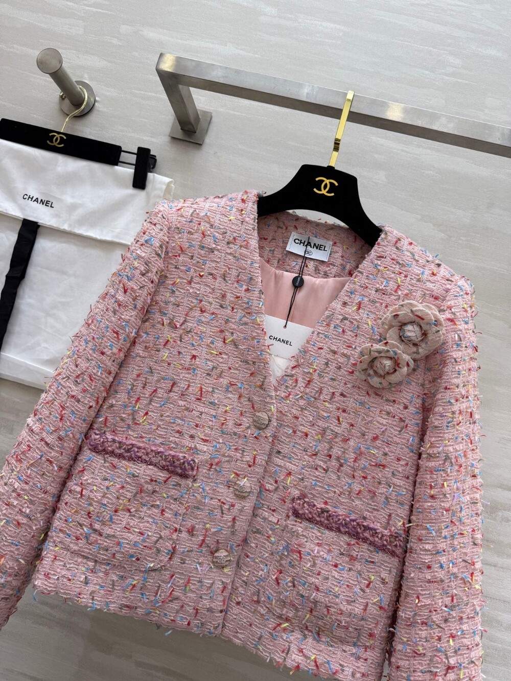 G. CC 트위드 까멜리아 자켓