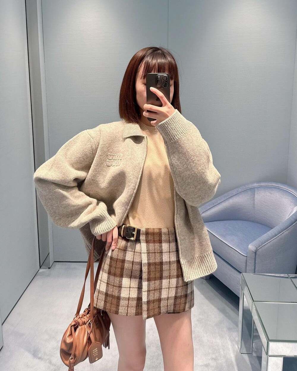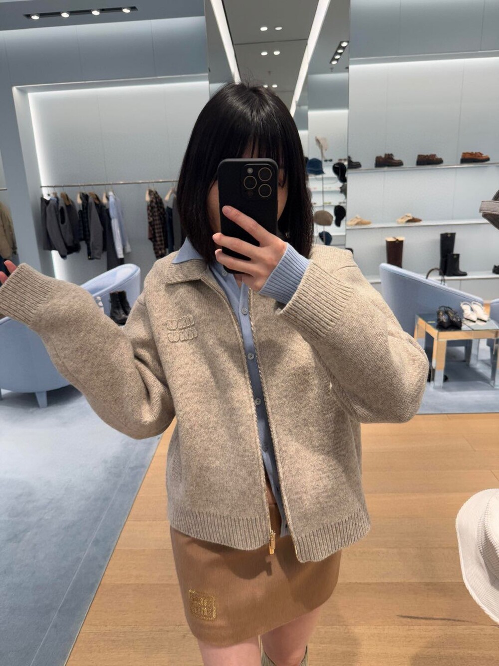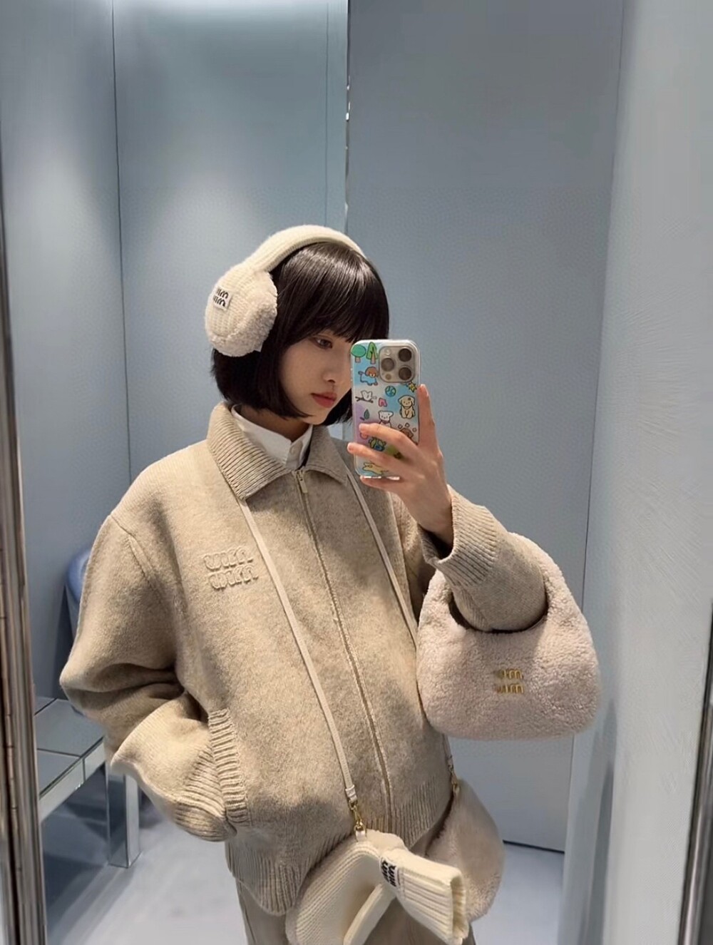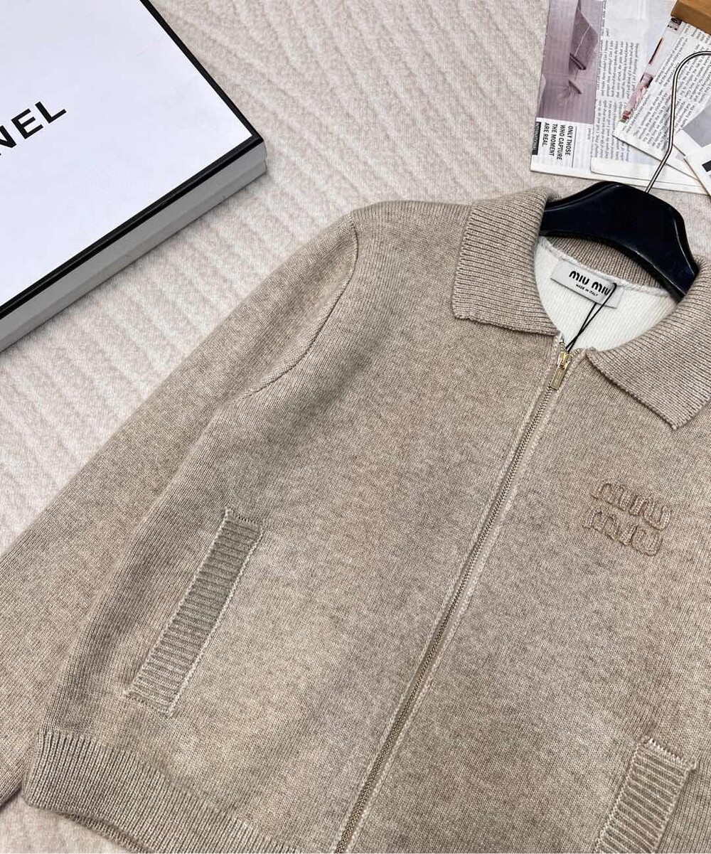 H. miu 울 니트 숏 집업