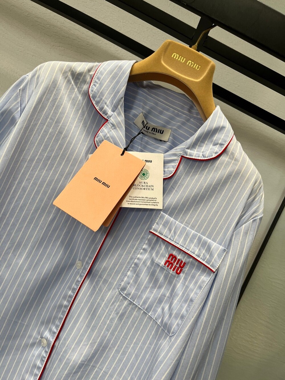K. miu 배색 스트라이프 셔츠