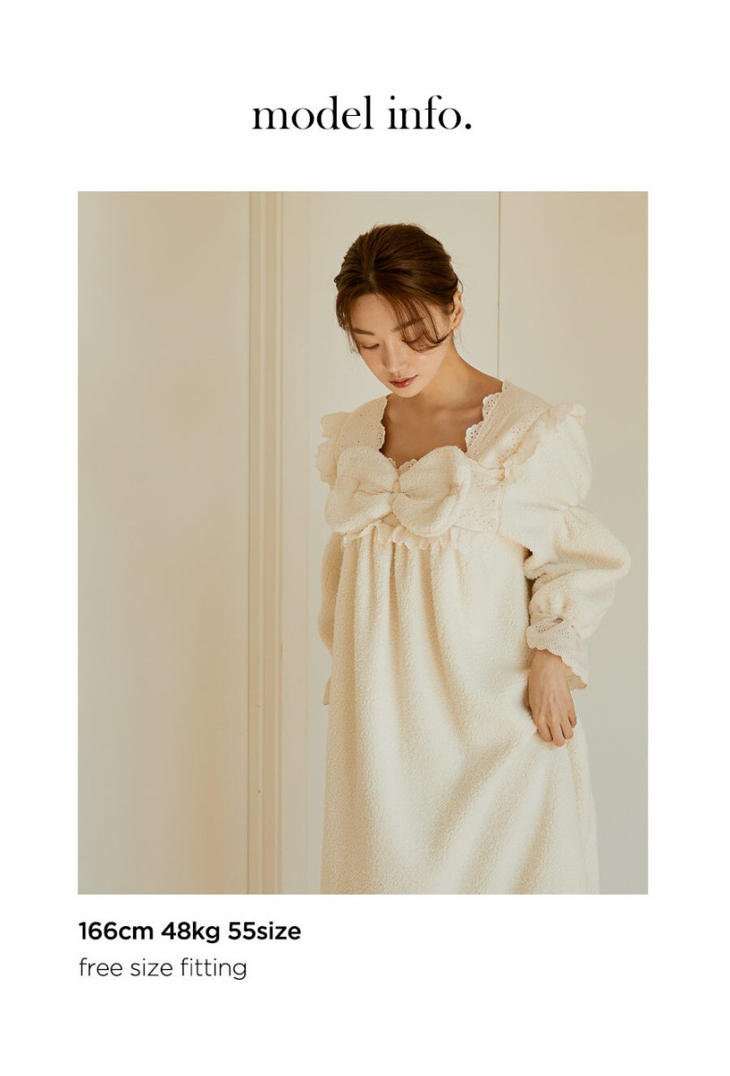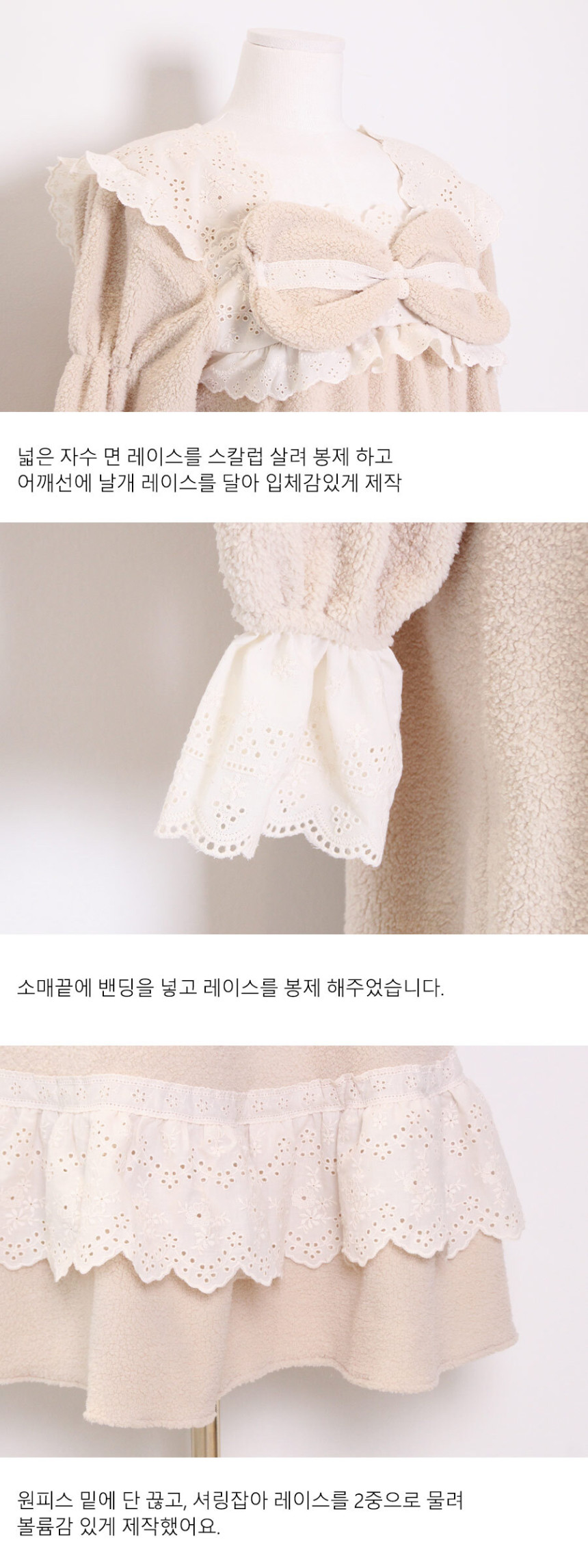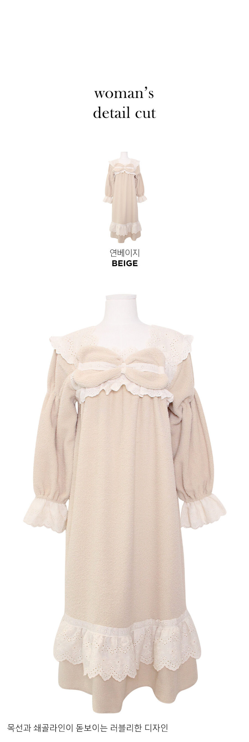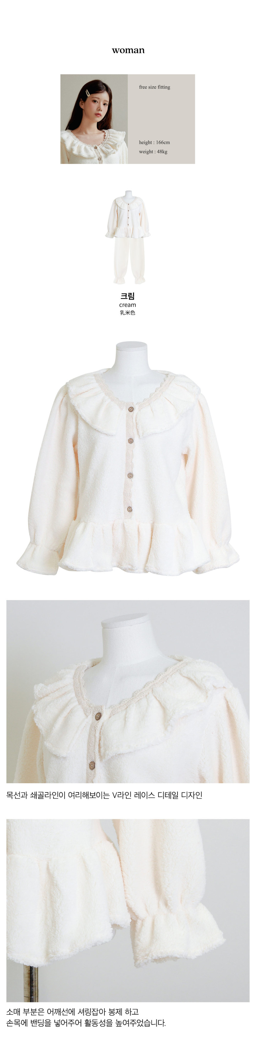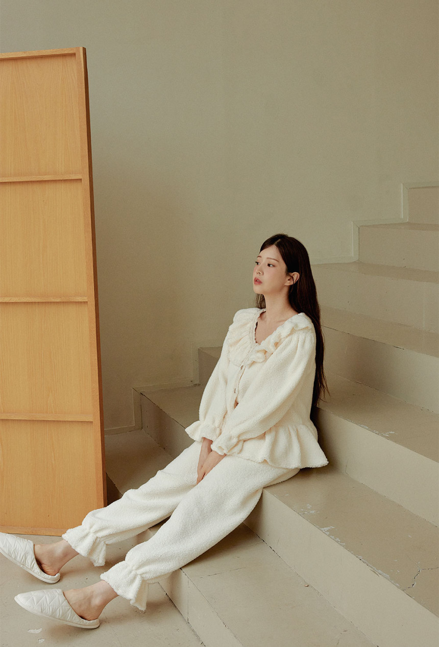 여성 플랫치노 리본 러플 양털 투피스 수면 잠옷