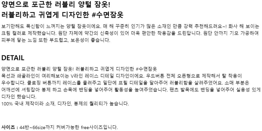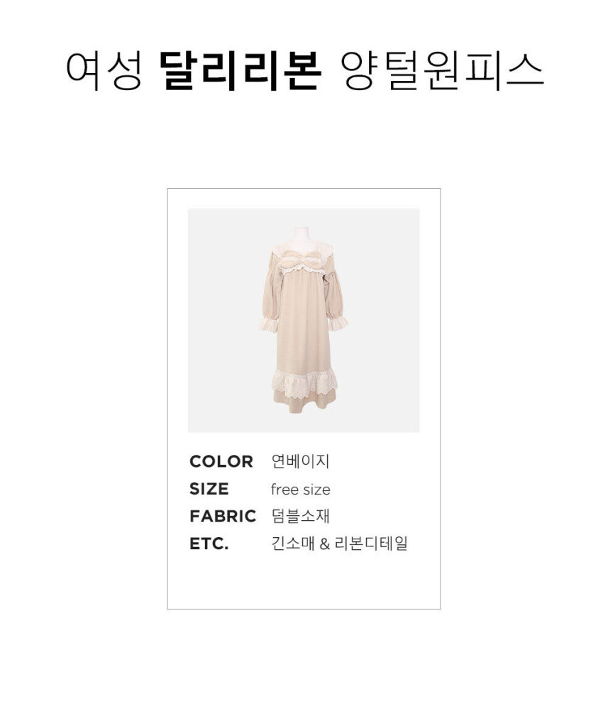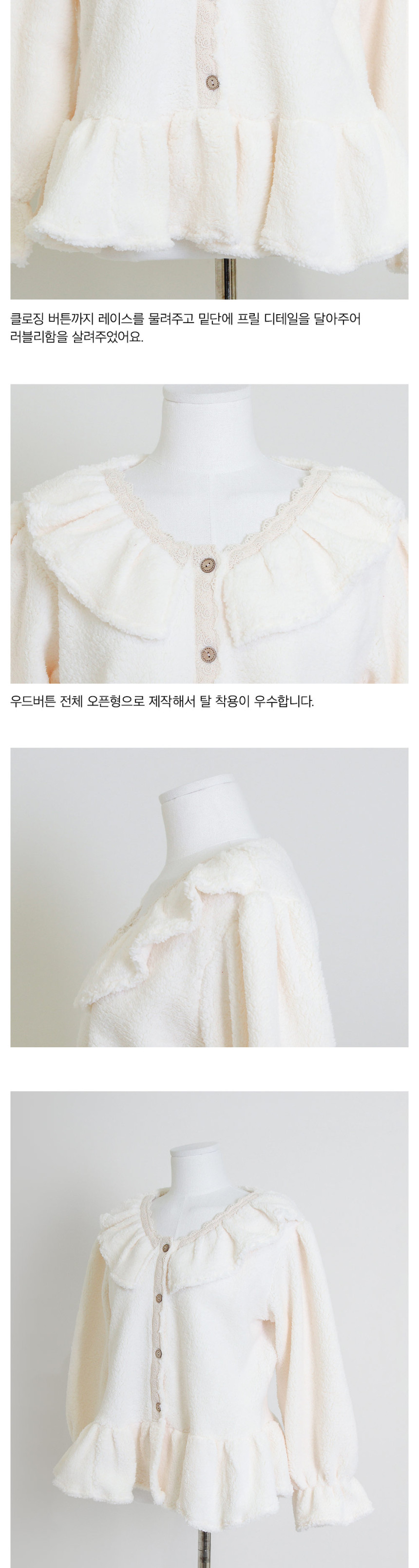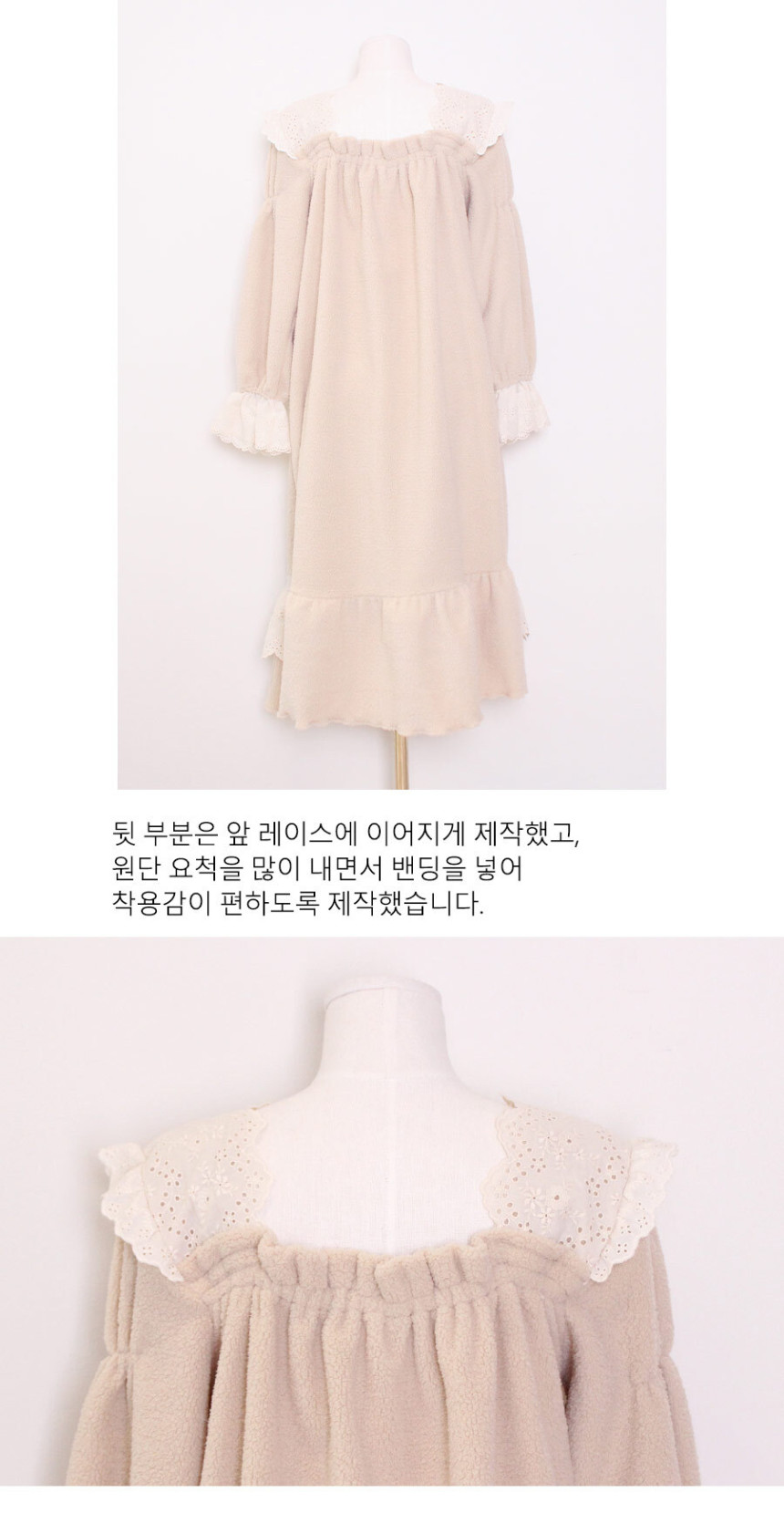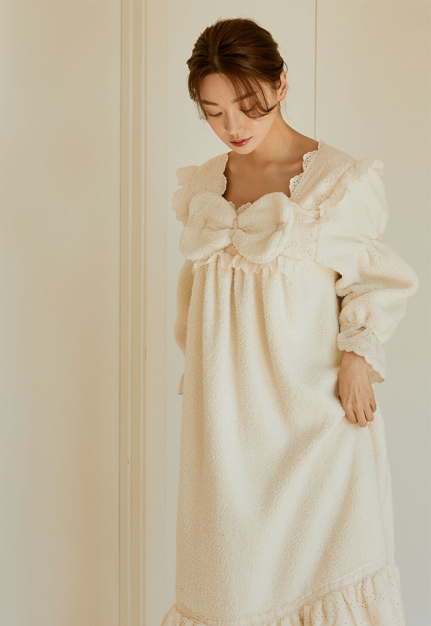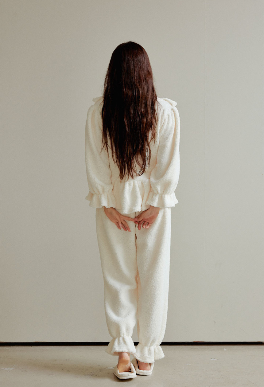 여성 플랫치노 리본 러플 양털 투피스 수면 잠옷