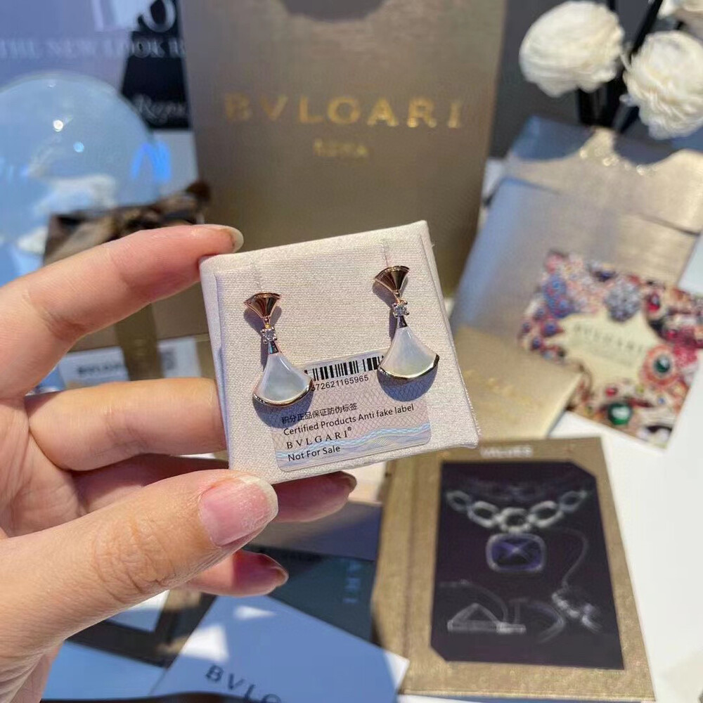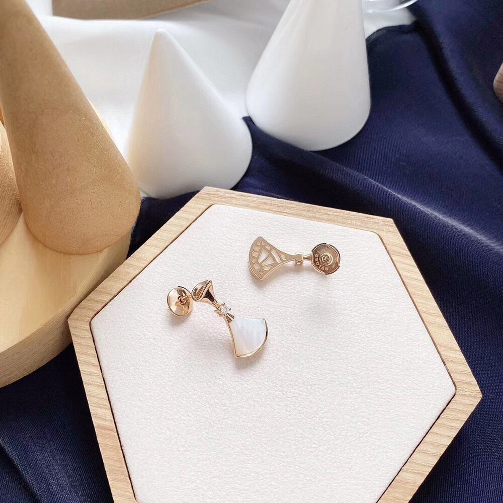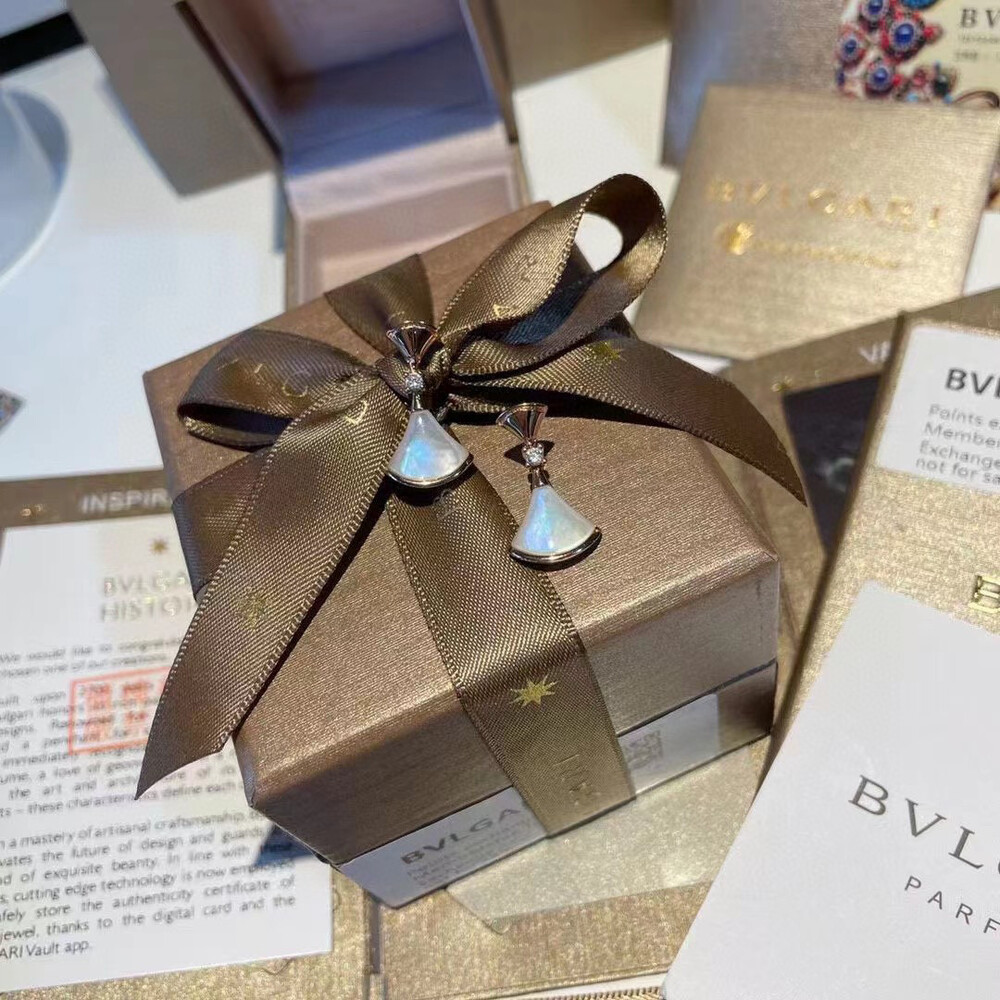 【Bulgari Points Exchange】Bulgari bvlgari overseas member gift Bulgari skirt earring seriesAU750+ Natural White Shell Full Gift Box PackagingBVLGARI/Bulgari DIVAS' DREAM series rosegold skirtEarrings and earrings The earrings draw inspiration from the elegance of women and the charming atmosphere of the Eternal City, paying tribute to charming women with a unique Roman spirit 💃. Feminine and refined, these earrings represent the true essence of Italian aesthetics with the splendor of the Caracara Baths marble and the enchanting curves of the fan-shaped mosaic.