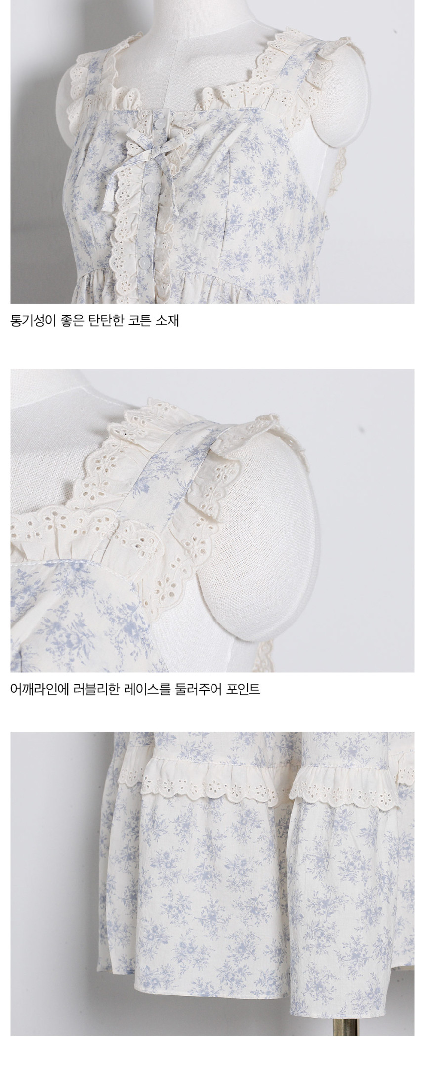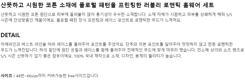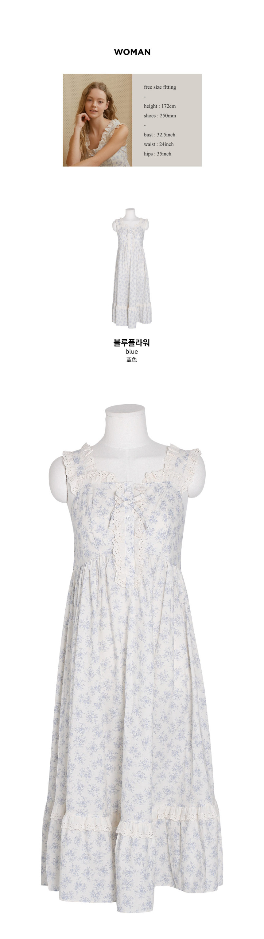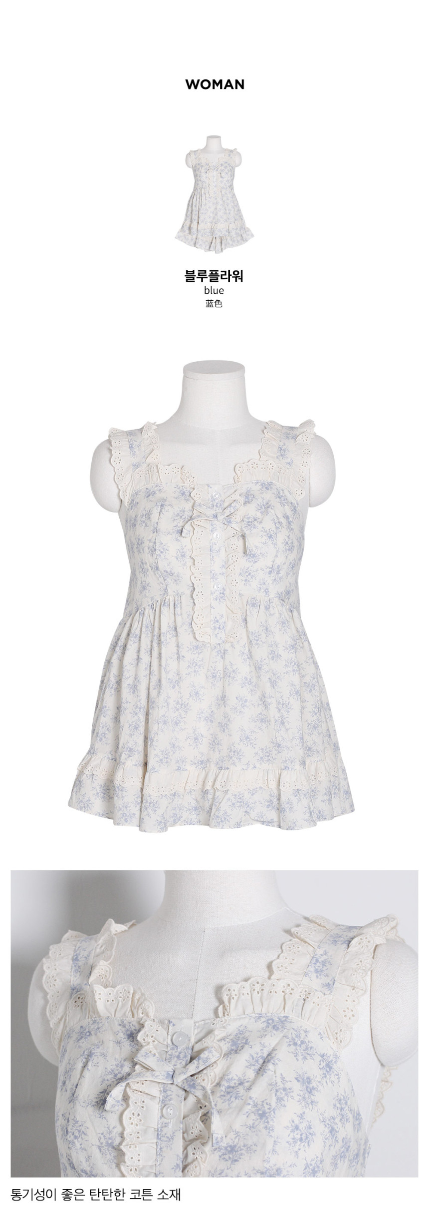 여성 로제플라워 원피스 투피스 수면 잠옷
