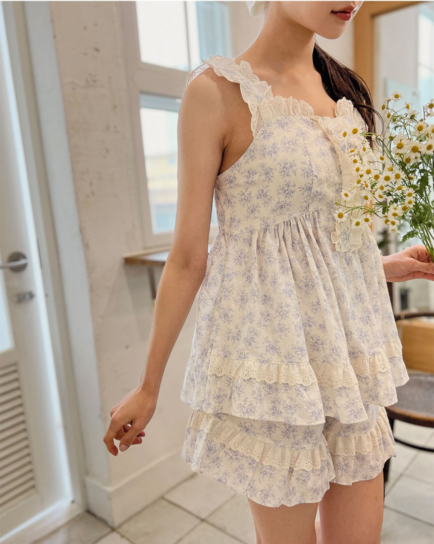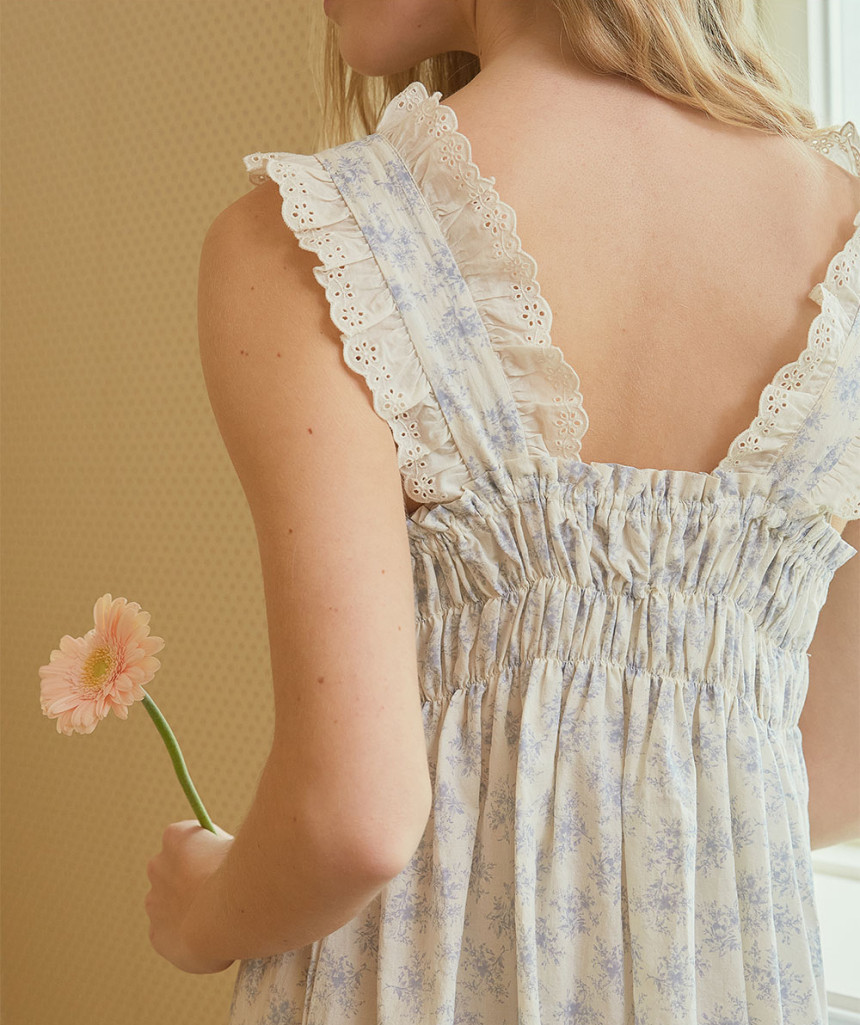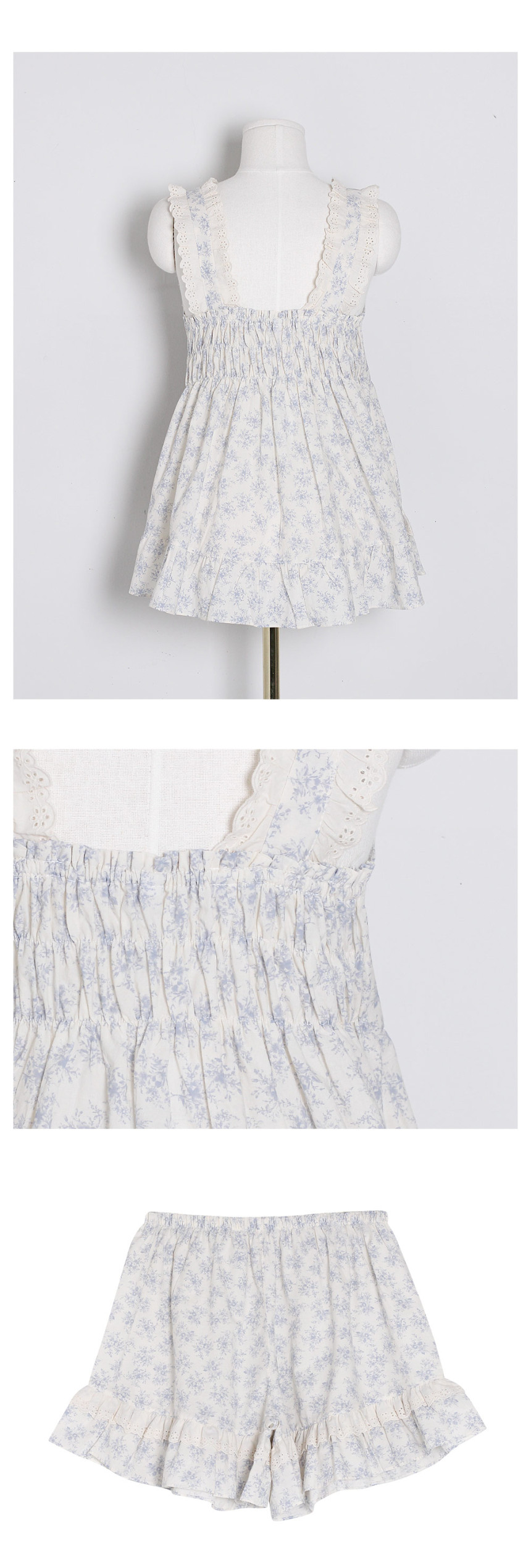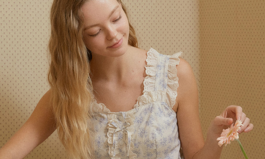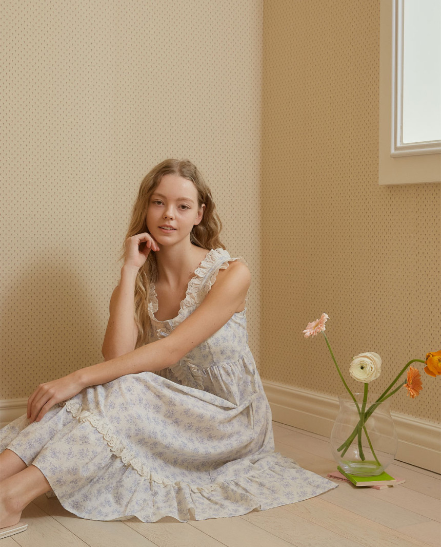 여성 로제플라워 원피스 투피스 수면 잠옷