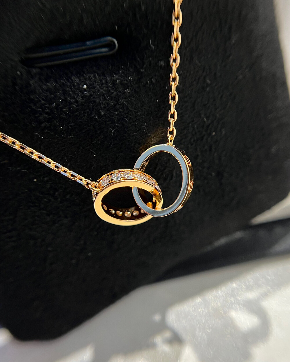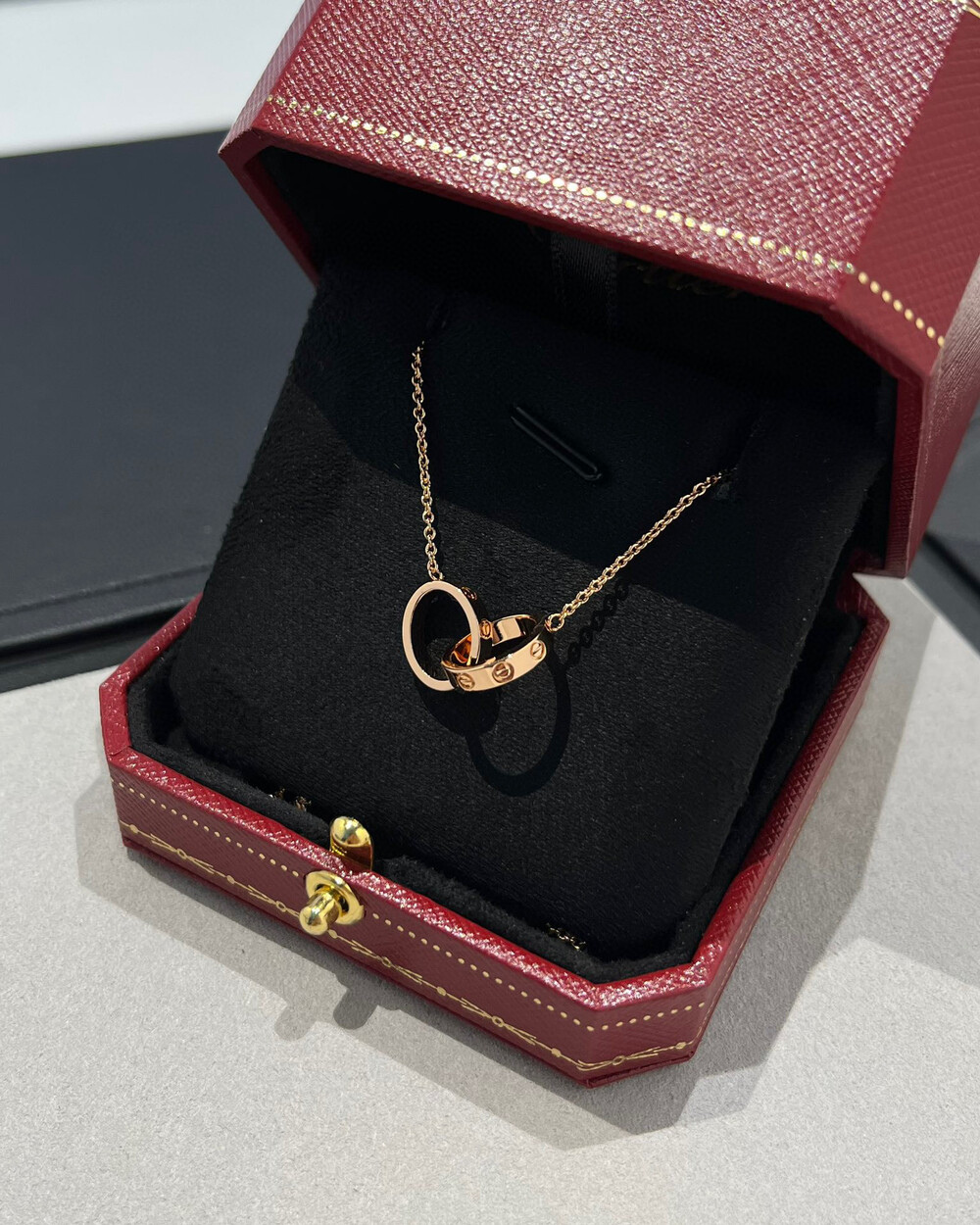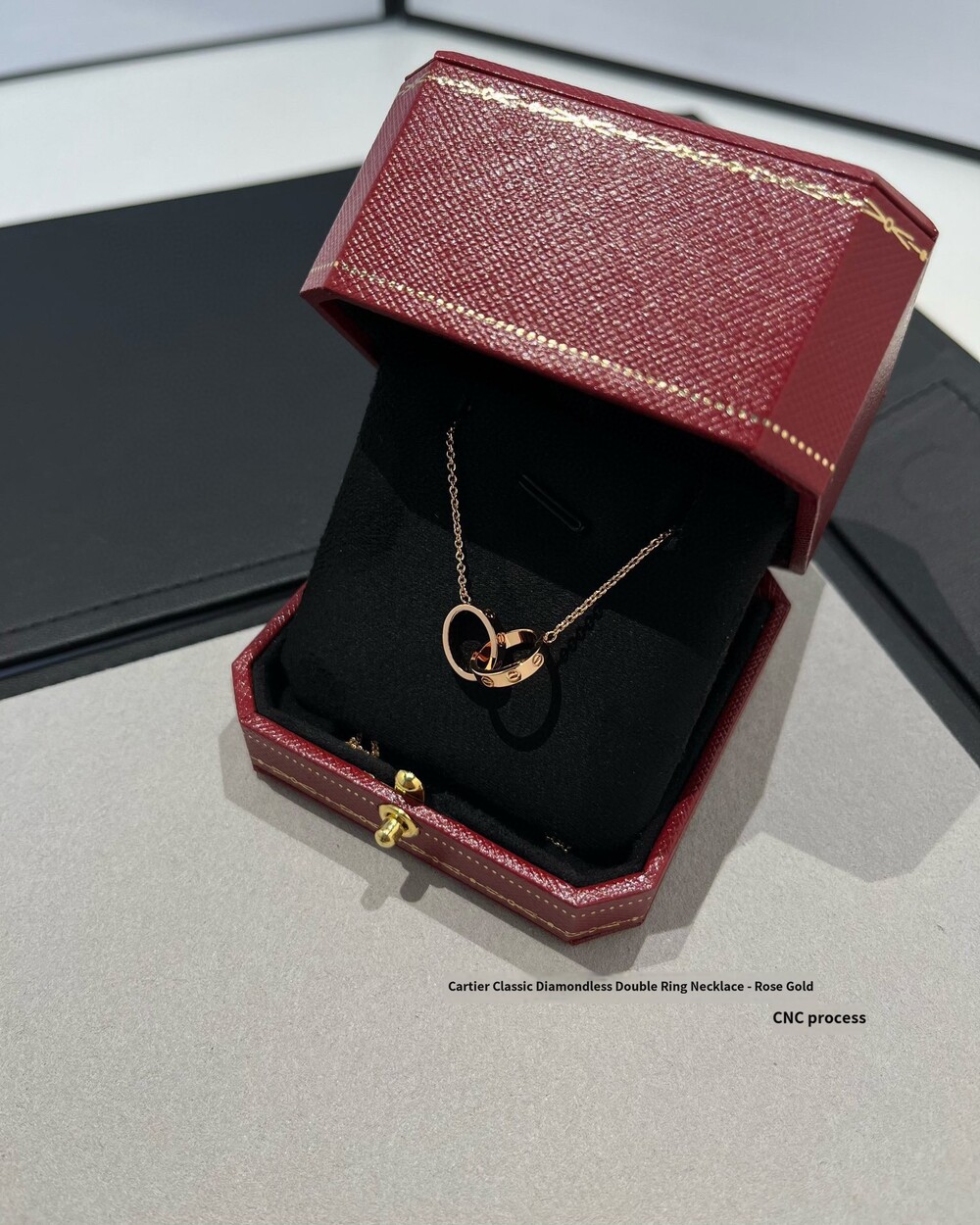 Cartier Double Ring Necklace without Diamond CNC TechnologyThe classic screw design means eternal love, small and big brand, gold plated 1m, love series be bracelet ring or necklace, edge corner must be clear, even hand rub will lose a sharp feeling!And the main part of the necklace is very small, so the depth of the notch is very difficult to grasp.Only the effect of CNC carving is the most correct version, color you can see pictures and videos, are pure big brand rose gold, logo and engraving these we have very mature are according to the ZP ratioLength 41-45 cm
