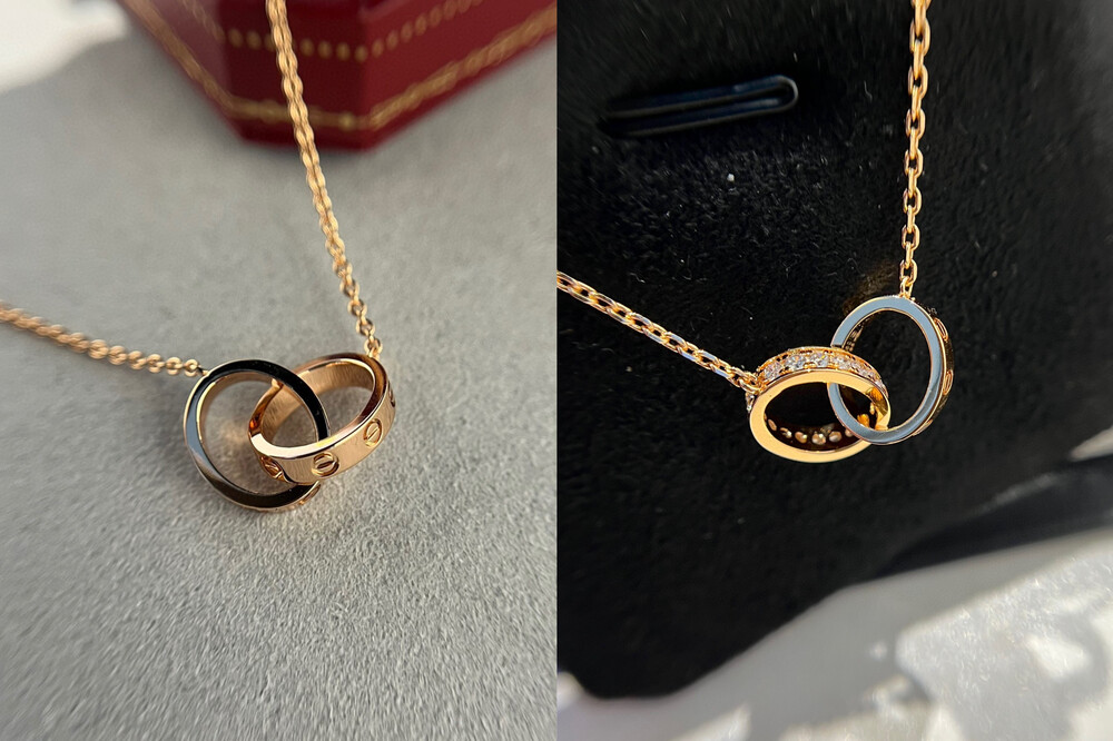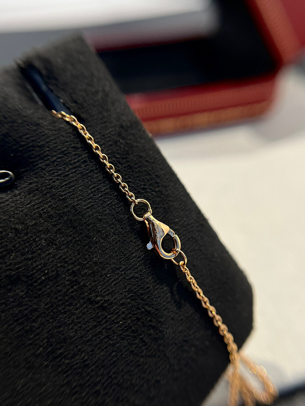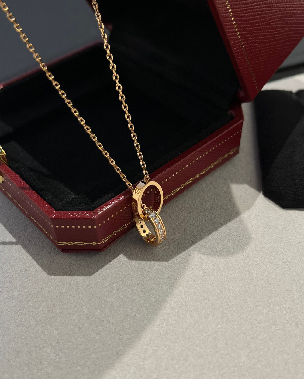 Cartier Double Ring Necklace without Diamond CNC TechnologyThe classic screw design means eternal love, small and big brand, gold plated 1m, love series be bracelet ring or necklace, edge corner must be clear, even hand rub will lose a sharp feeling!And the main part of the necklace is very small, so the depth of the notch is very difficult to grasp.Only the effect of CNC carving is the most correct version, color you can see pictures and videos, are pure big brand rose gold, logo and engraving these we have very mature are according to the ZP ratioLength 41-45 cm