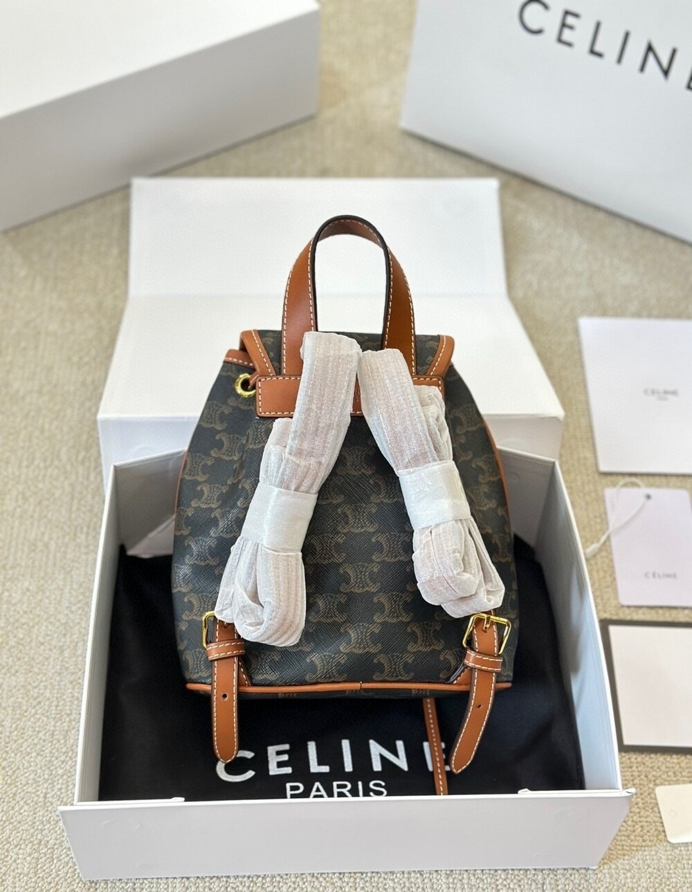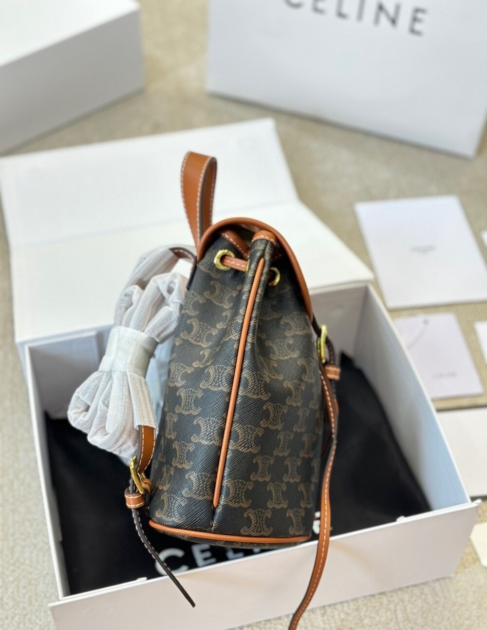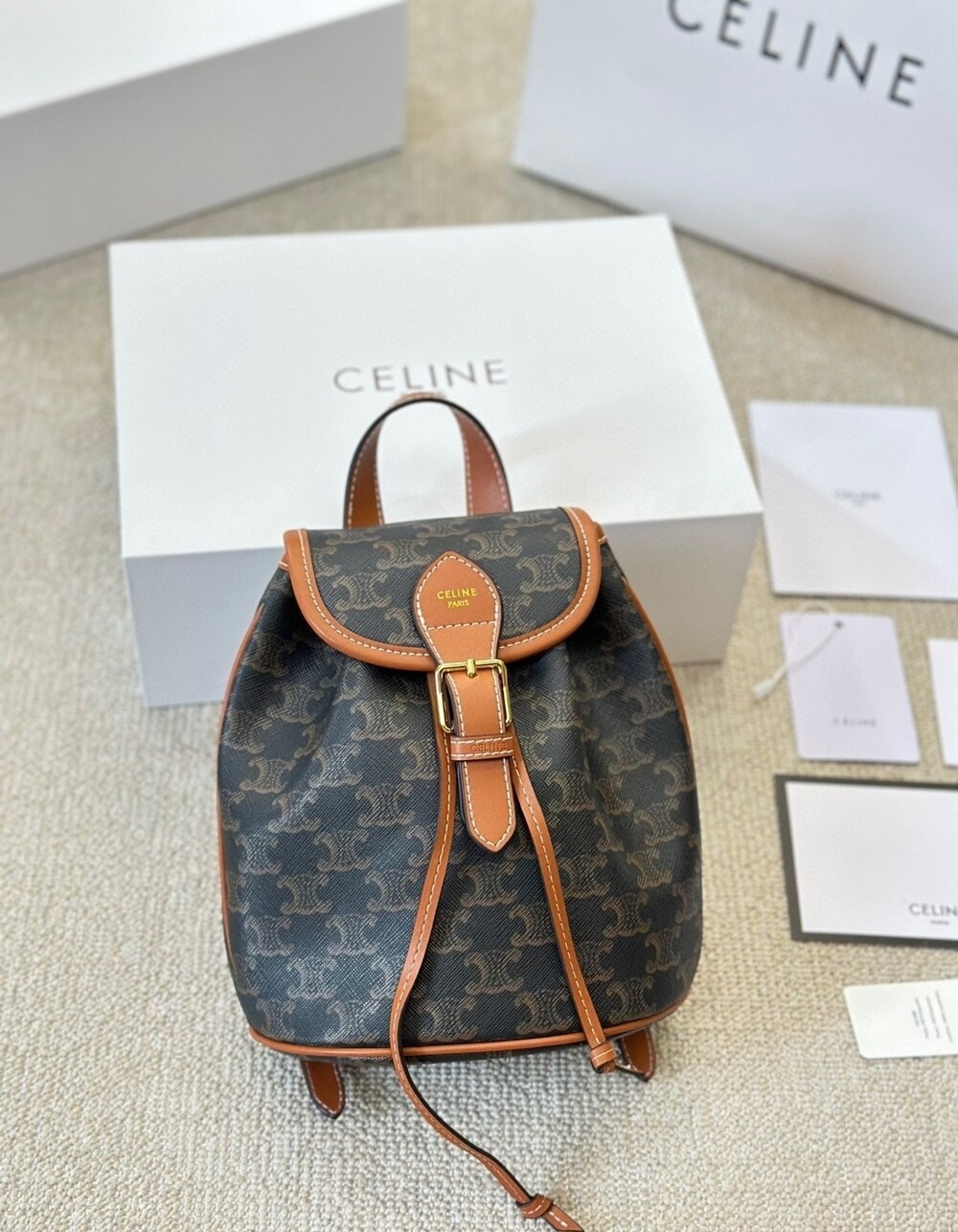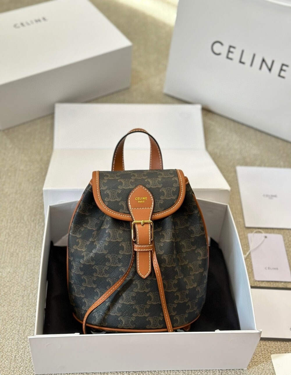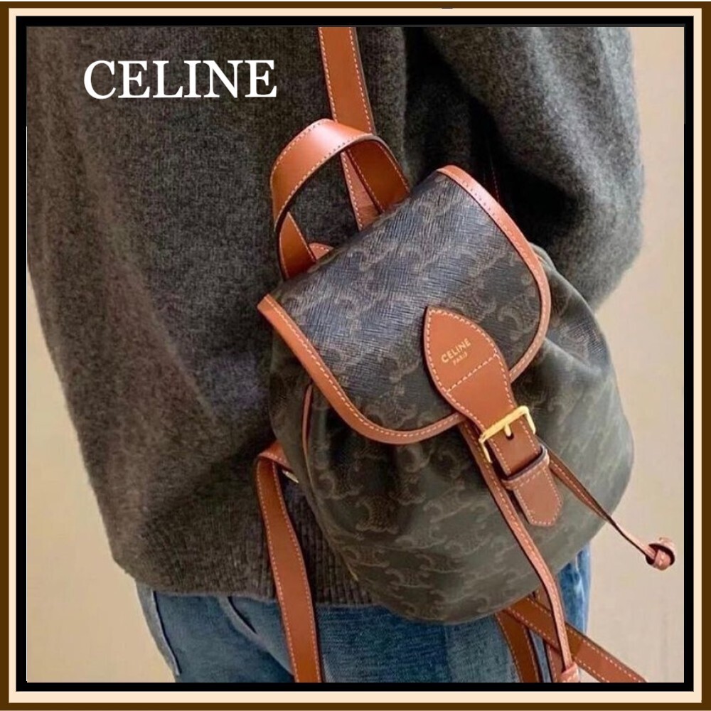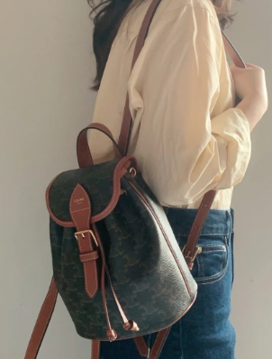 Celine 24 Early Spring Gift Bag Fei Points Exchange for Middle-aged Web Site~Arc de Triomphe Old Flower Mini Backpackretro compact practical design Shoulder strap length adjustable capacity full Youth and refinement A relaxed retro girlish feeling.Size:18*22