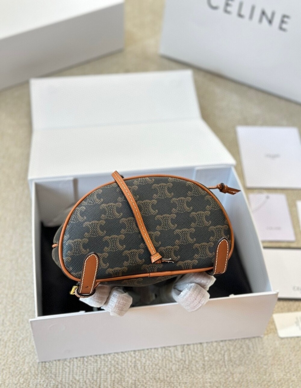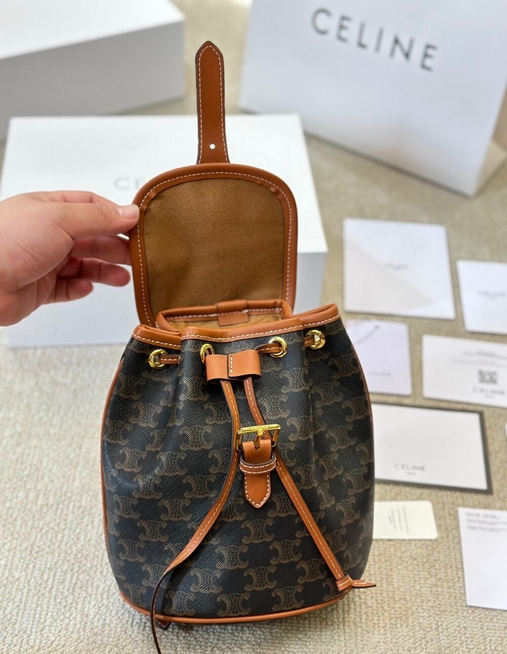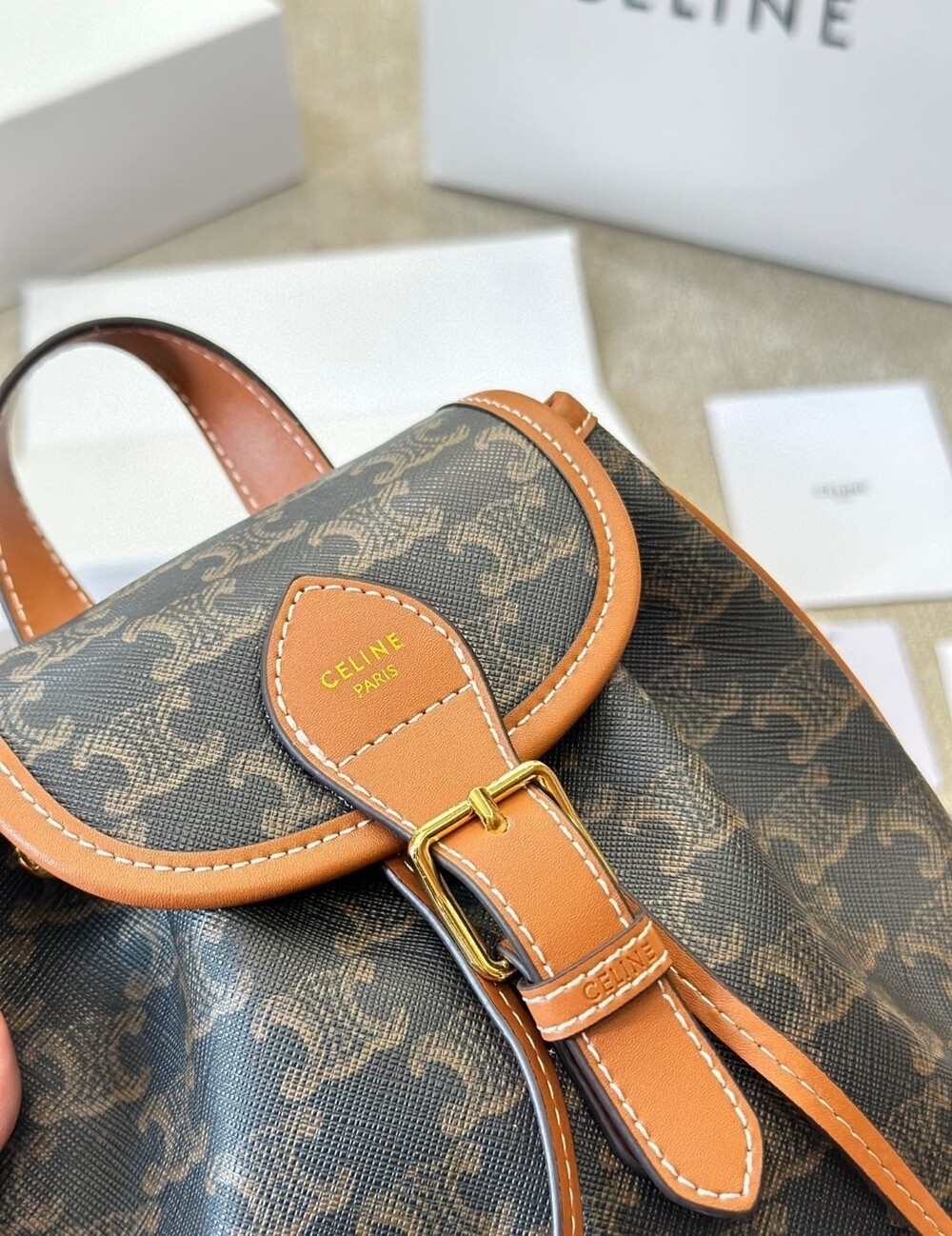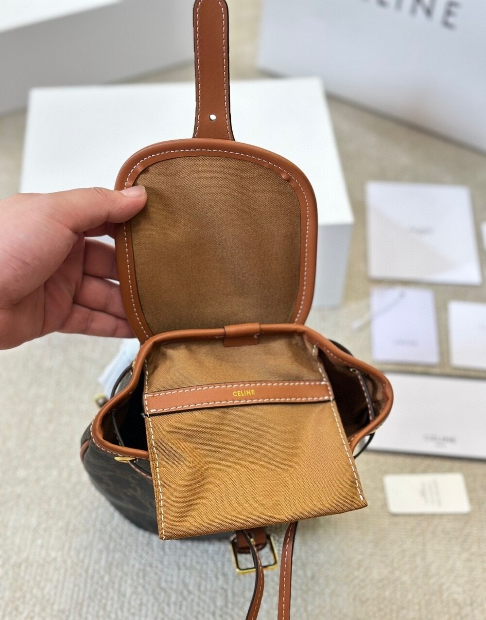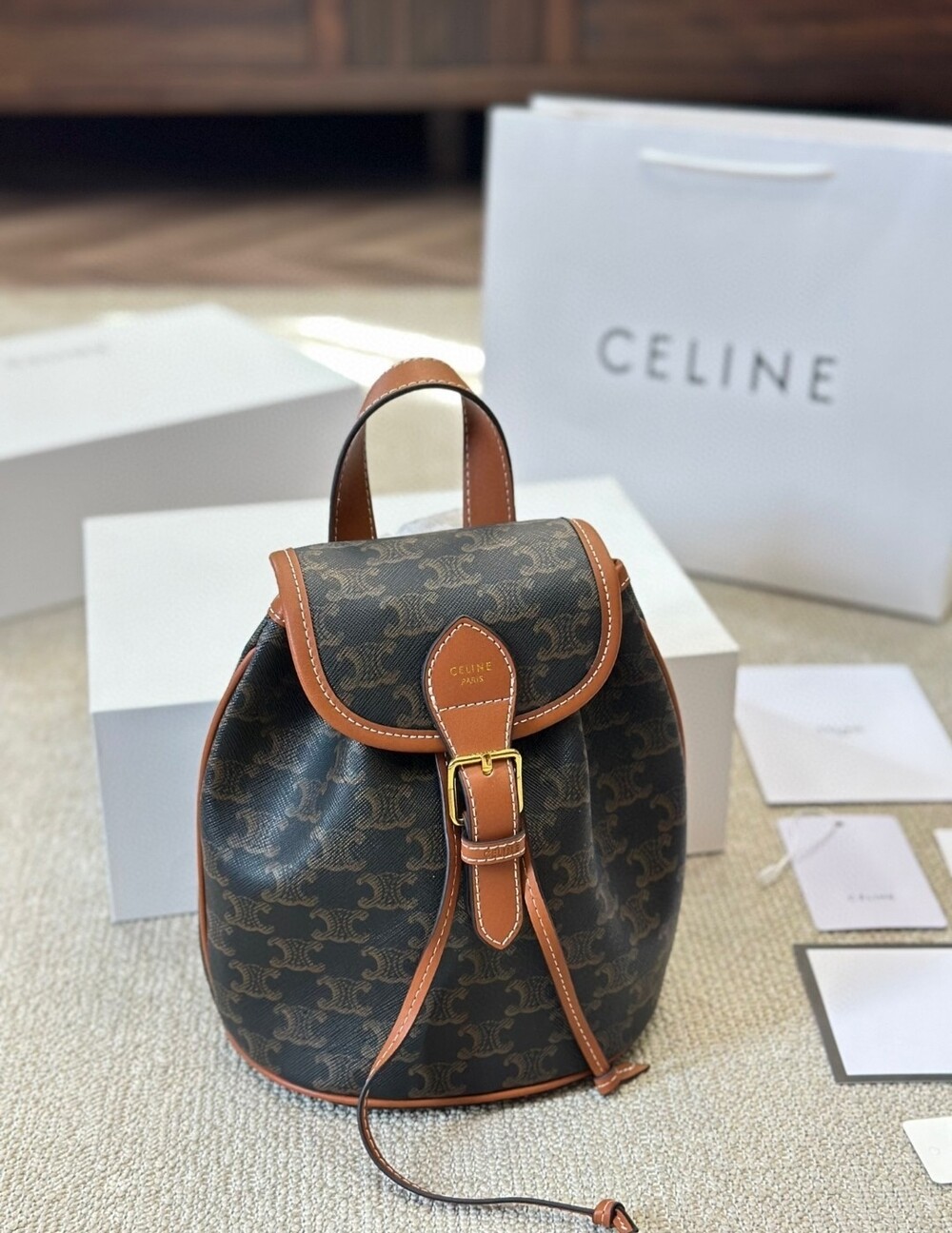 Celine 24 Early Spring Gift Bag Fei Points Exchange for Middle-aged Web Site~Arc de Triomphe Old Flower Mini Backpackretro compact practical design Shoulder strap length adjustable capacity full Youth and refinement A relaxed retro girlish feeling.Size:18*22
