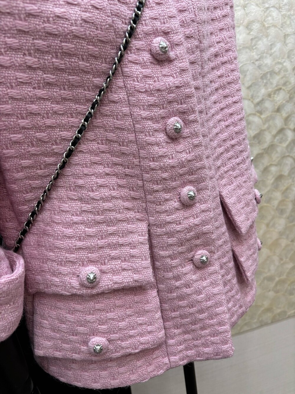F. CC 백 채인 트리밍 카라 트위드