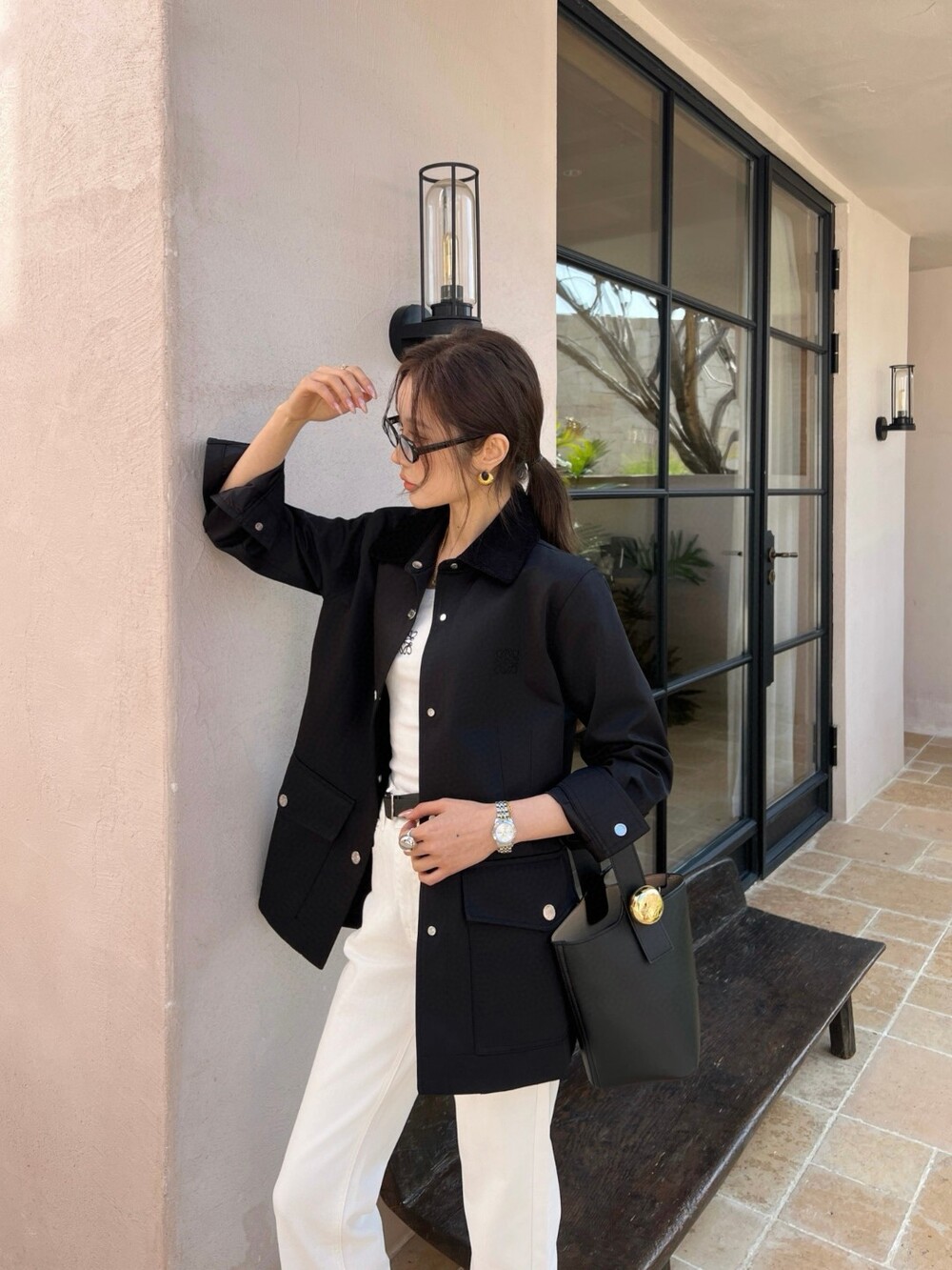 E. CC 하이넥 버튼 자켓
