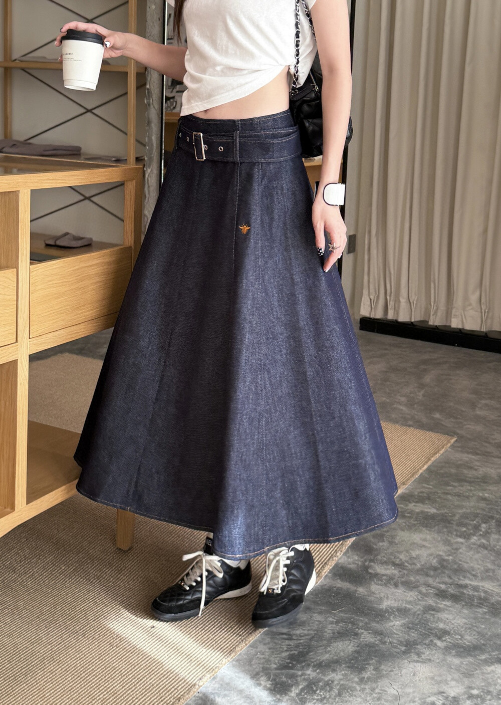 O. CD 데님 플레어 롱 스커트