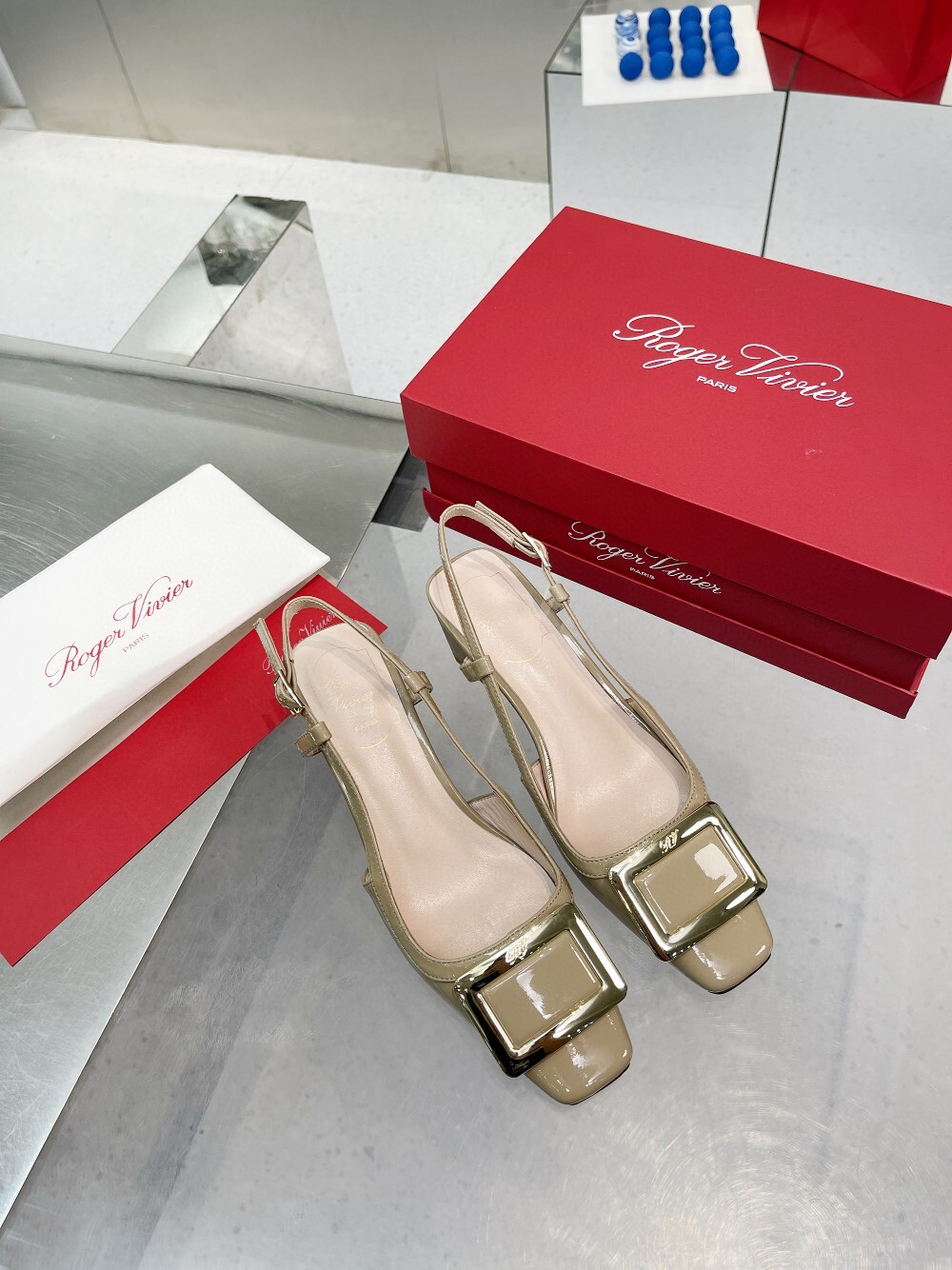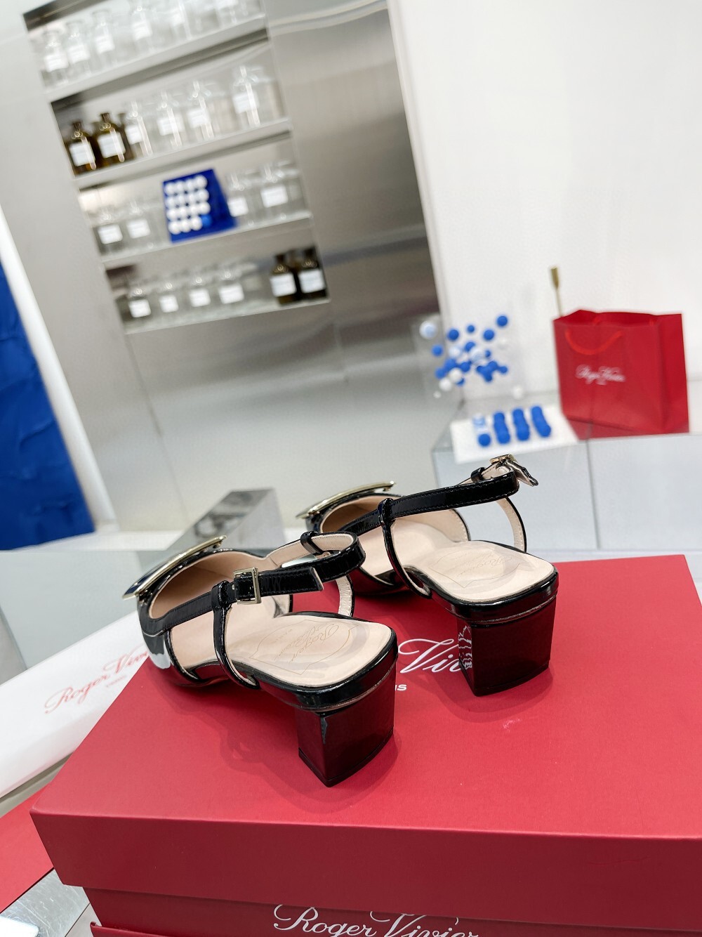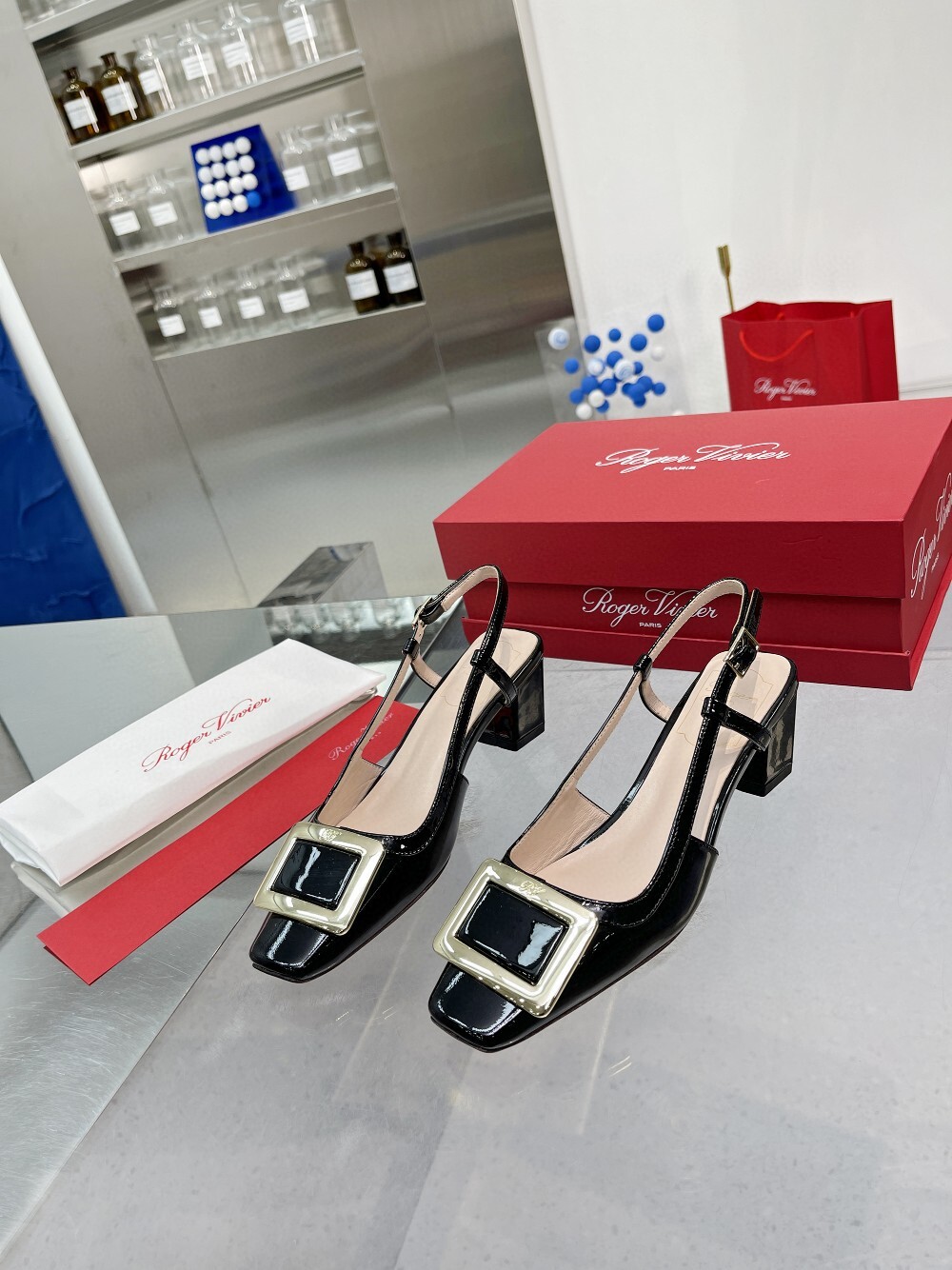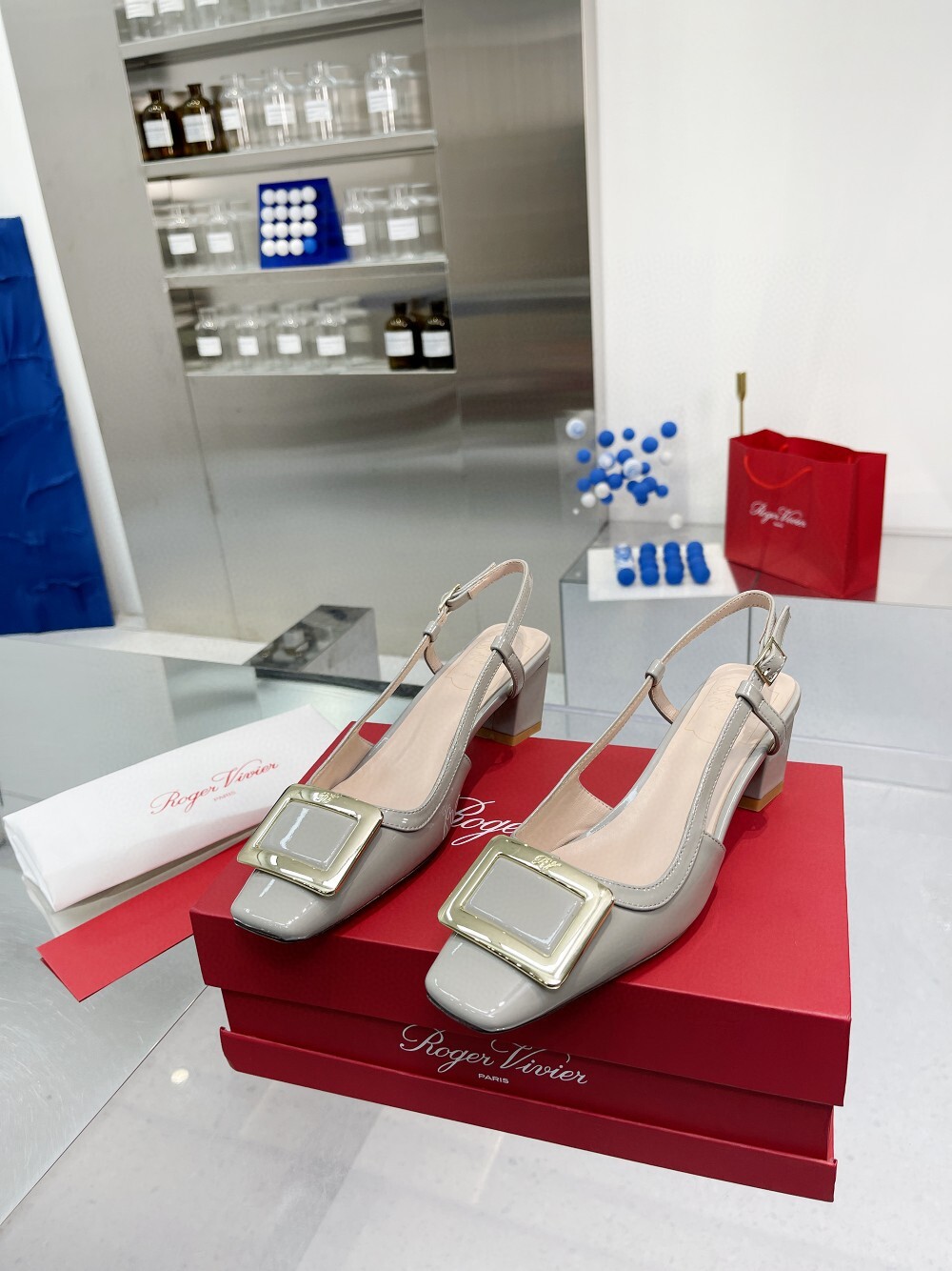 R. 로저 새틴 스퀘어토 7cm 하이힐