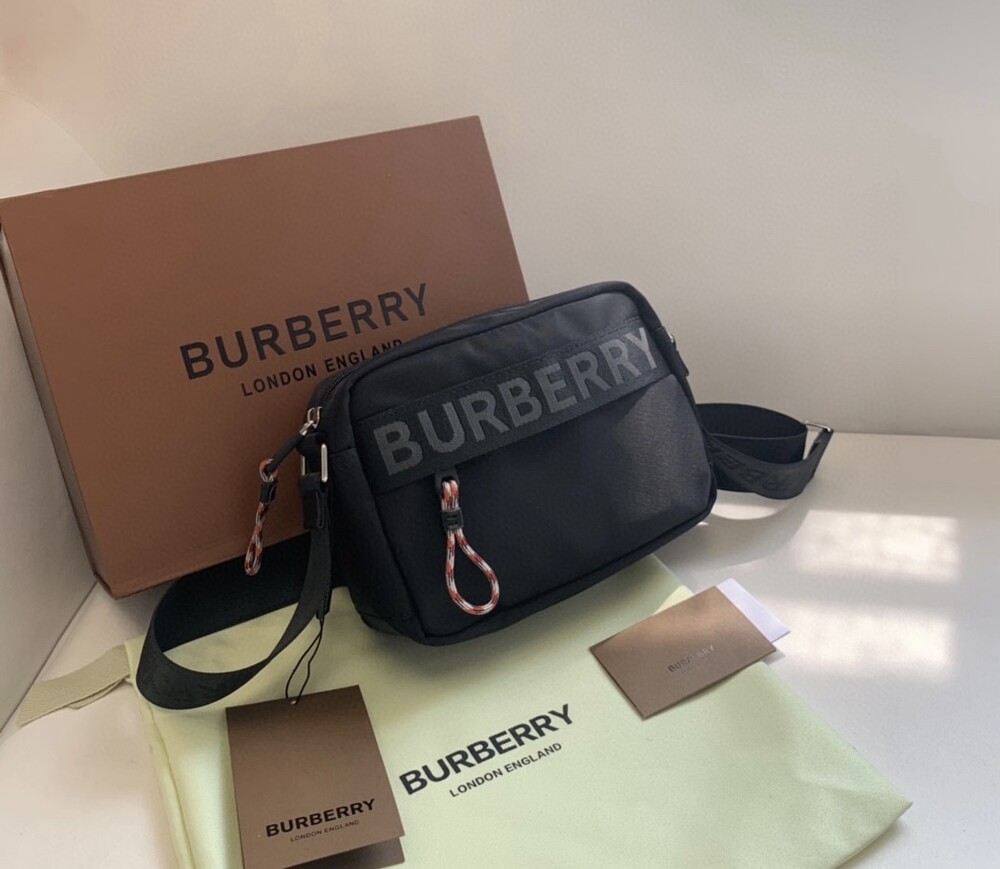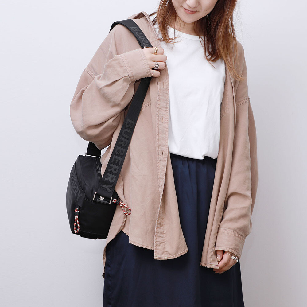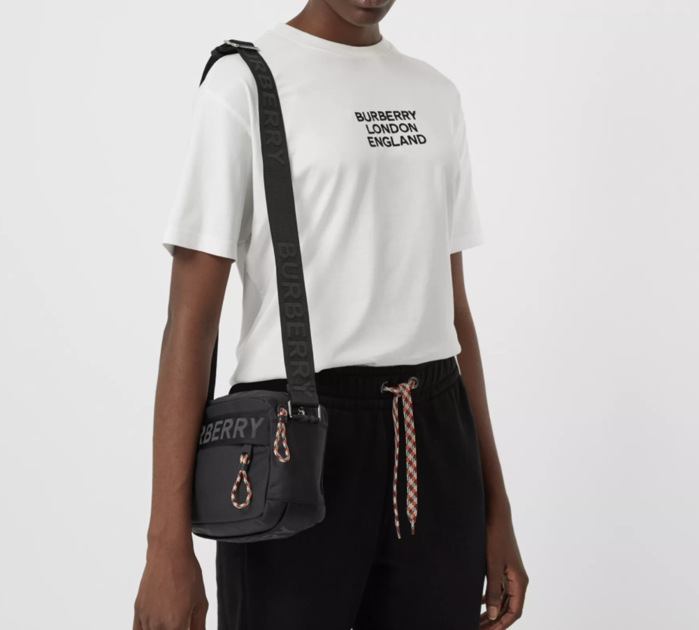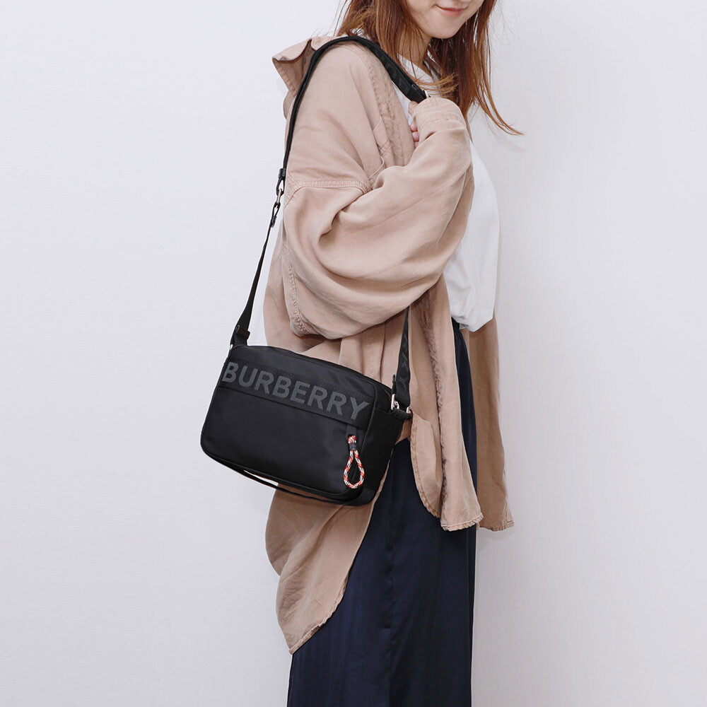 overseas counter points redeem/ A compact bag reinterpreted in ECONYL material. It features leather trim and jacquard Burberry logo, and an adjustable webbing nylon strap allows it to be carried in the hand or worn crossbody.22 x 11 x 16.5 cm Outer: Poly Trim: 100% calfskinAdjustable crossbody strap3 card slots / zip fastening / polished metal hardware