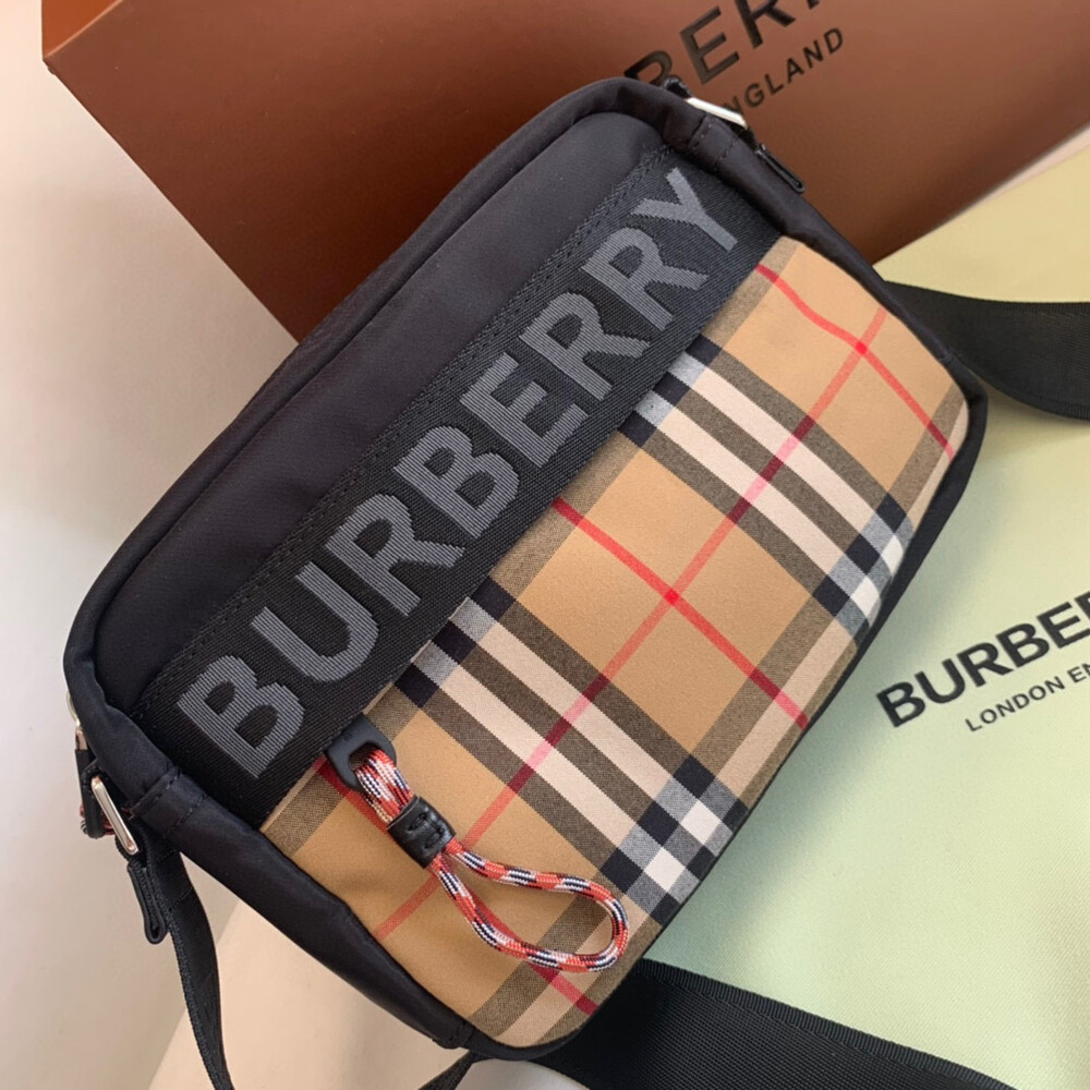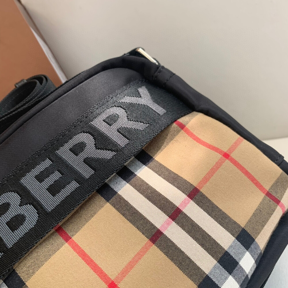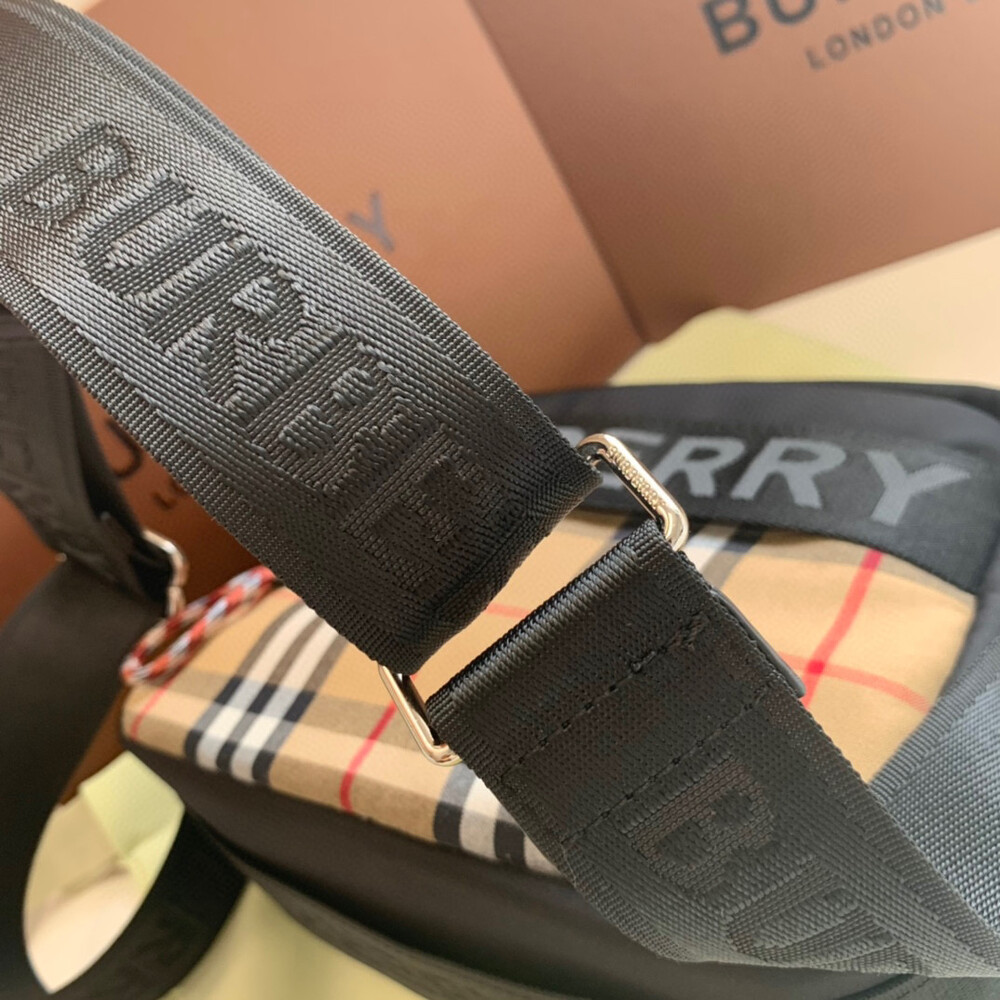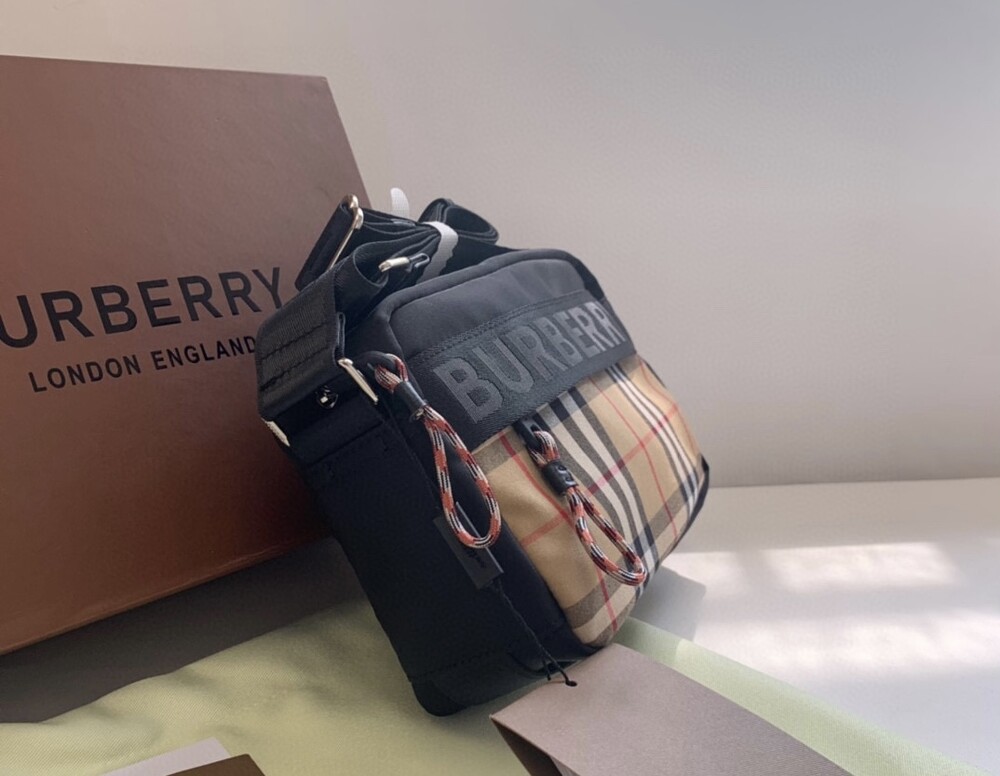 overseas counter points redeem/ A compact bag reinterpreted in ECONYL material. It features leather trim and jacquard Burberry logo, and an adjustable webbing nylon strap allows it to be carried in the hand or worn crossbody.22 x 11 x 16.5 cm Outer: Poly Trim: 100% calfskinAdjustable crossbody strap3 card slots / zip fastening / polished metal hardware