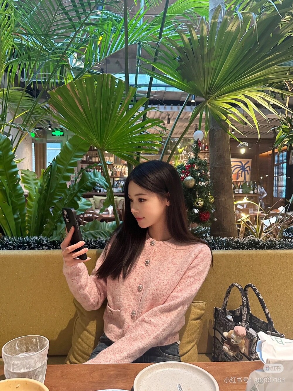 부드럽고 포근한 핑크 트위드 니트 가디건이에요 🌸