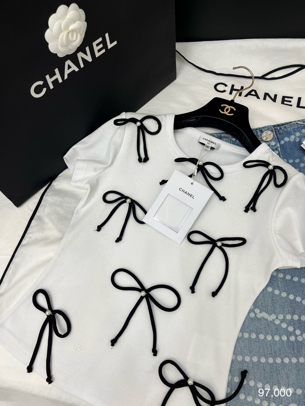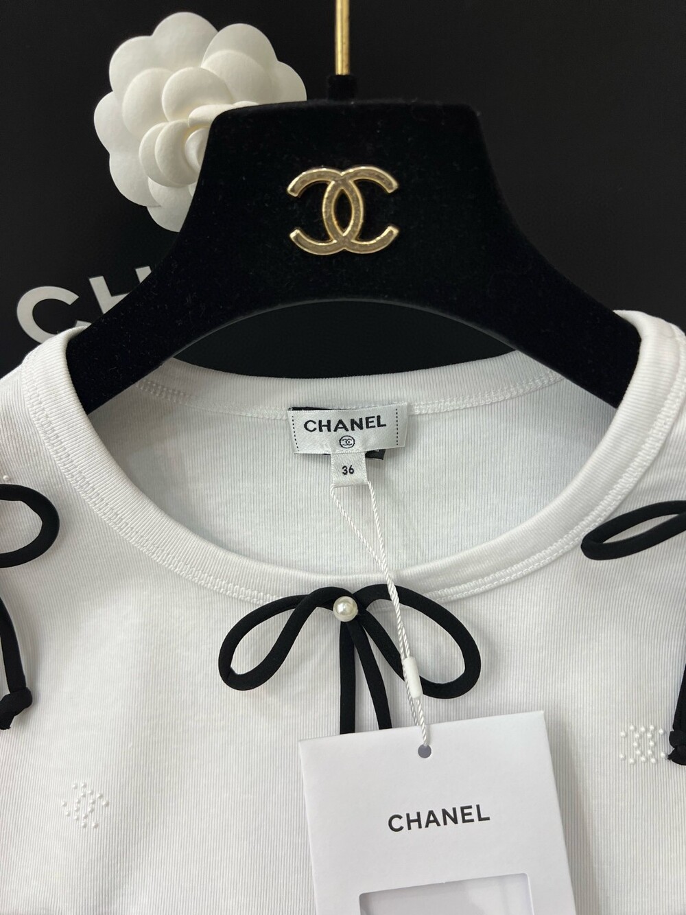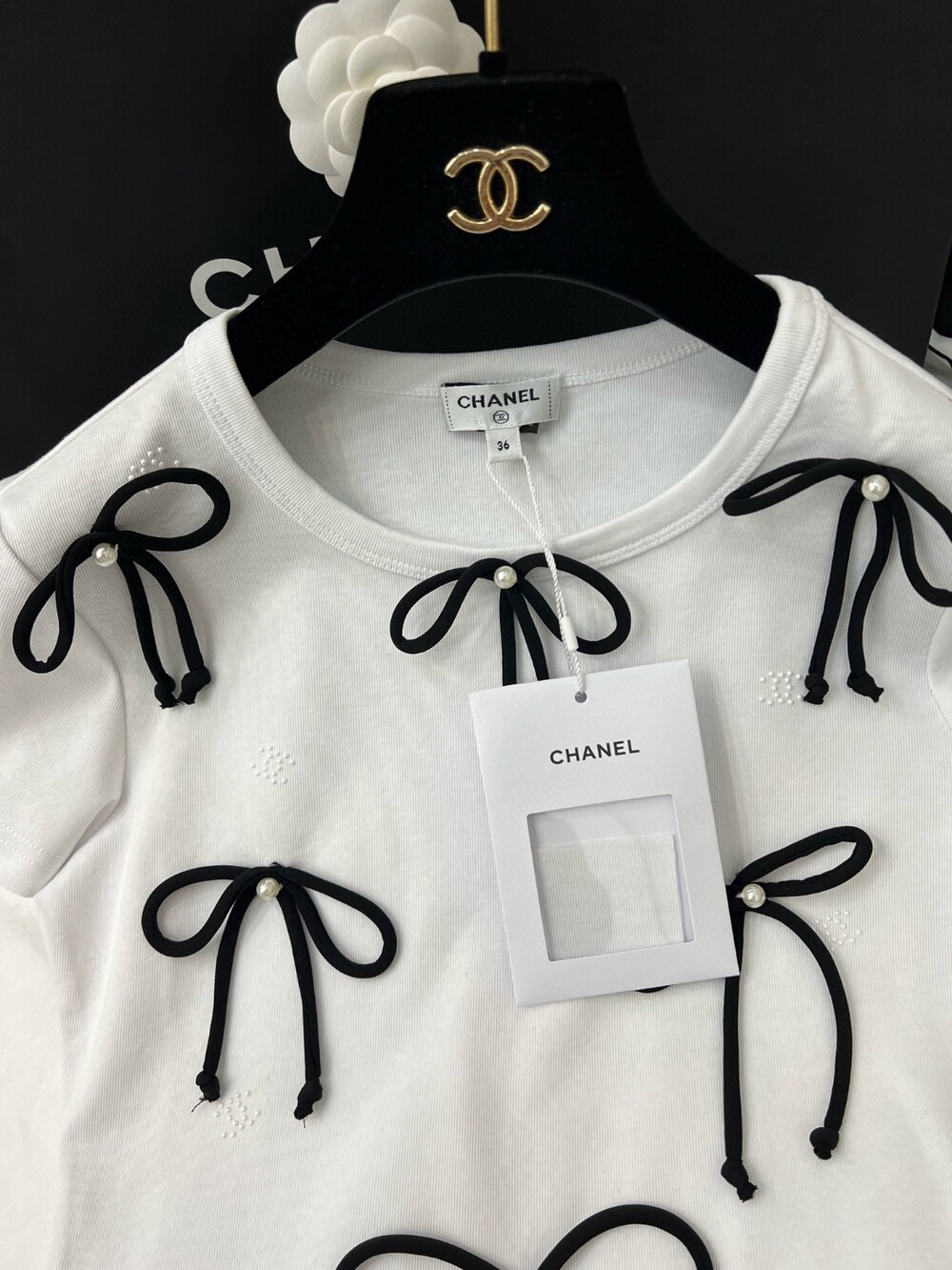 D. 샤넬 리본 디테일 반팔 티셔츠