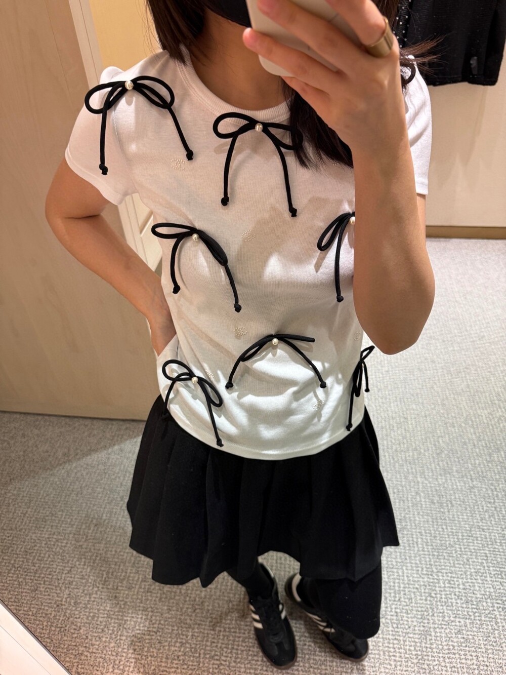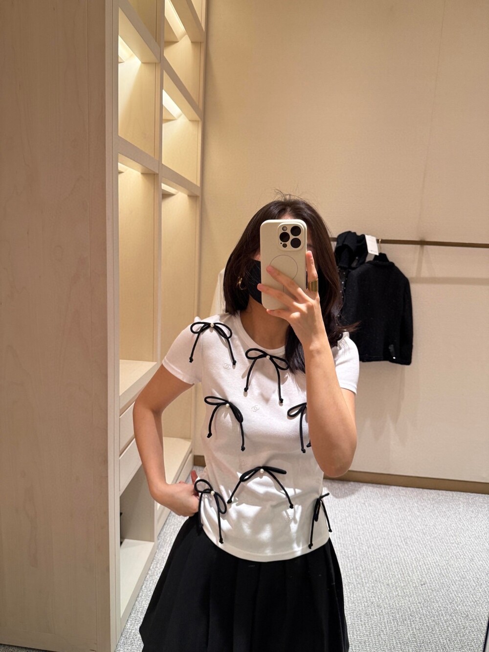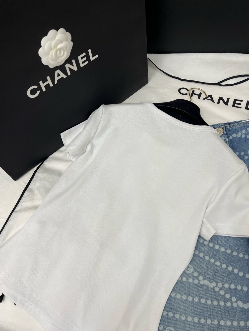 D. 샤넬 리본 디테일 반팔 티셔츠