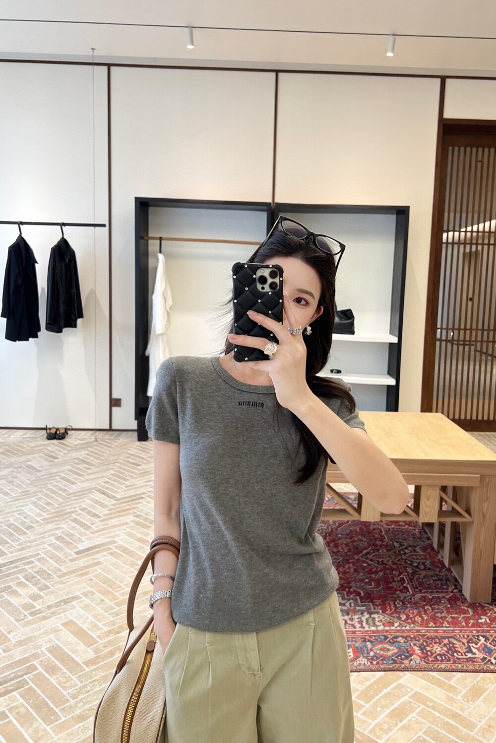 F. 미우 그레이 심플 로고 니트