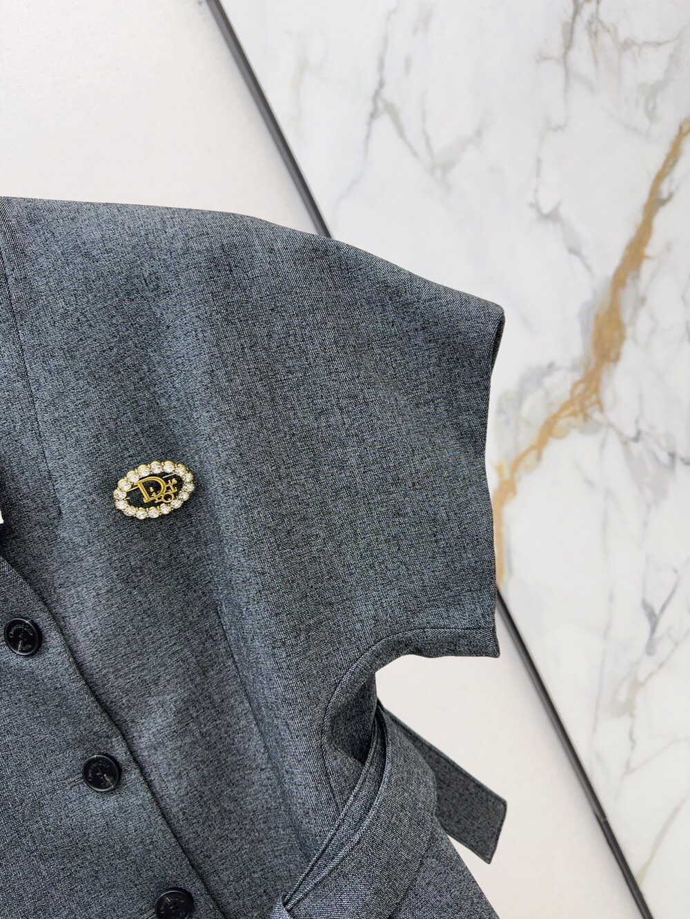 G. CD 벨티드 그레이 반팔 자켓