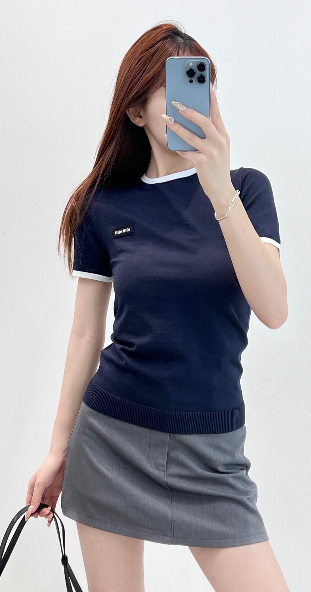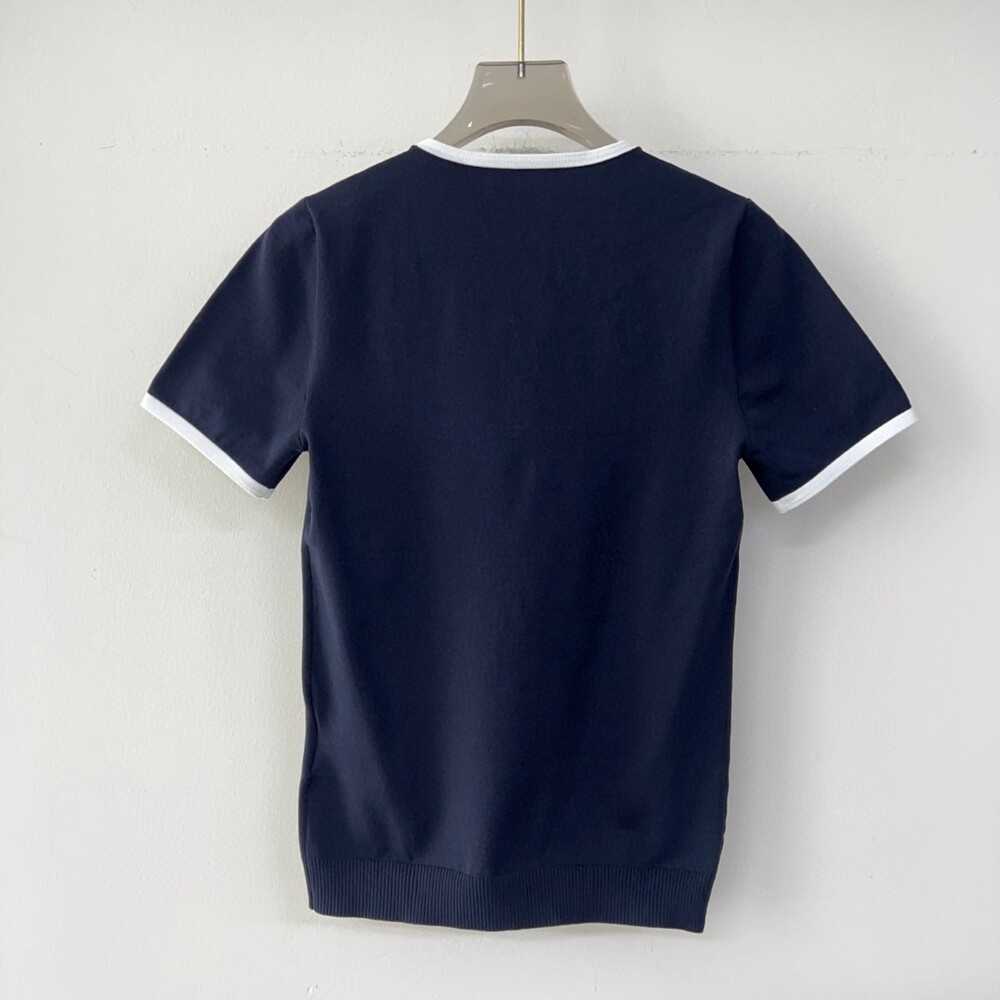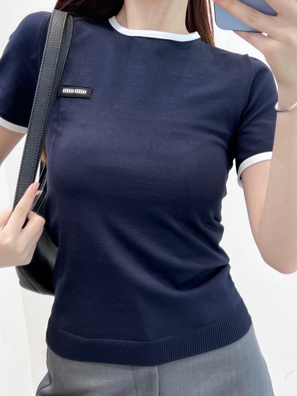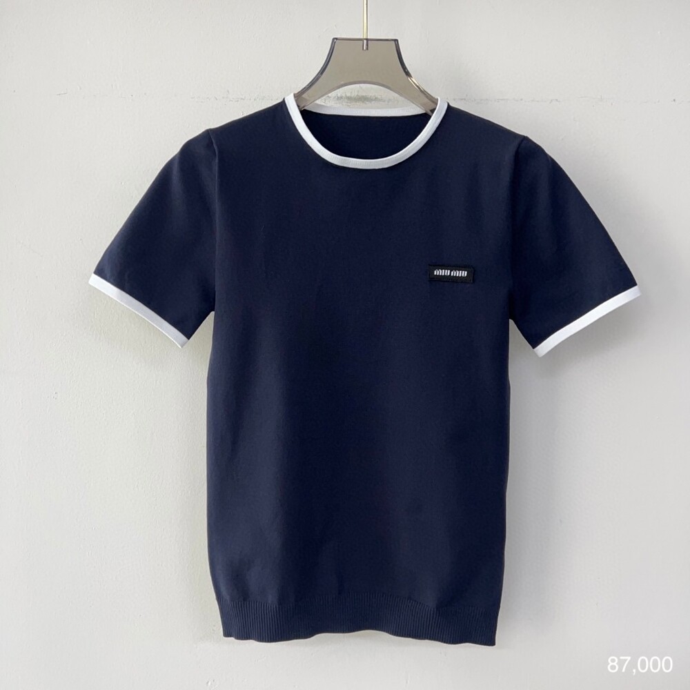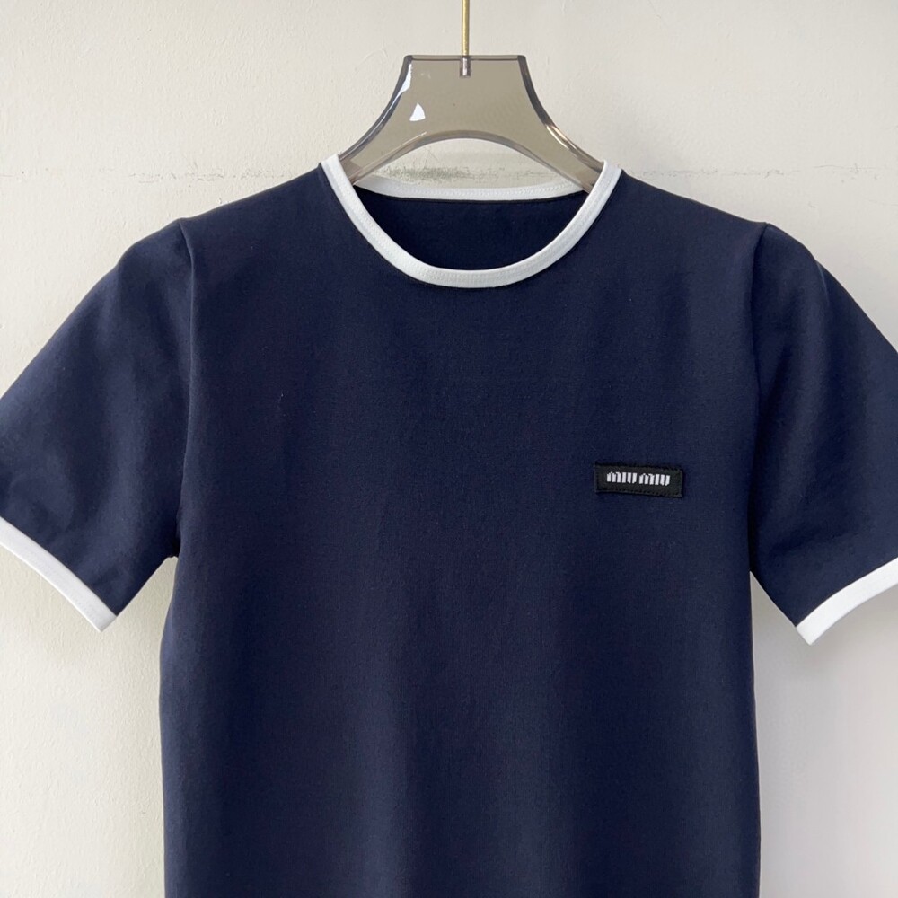 I. 미우 네이비 배색 라운드 티셔츠