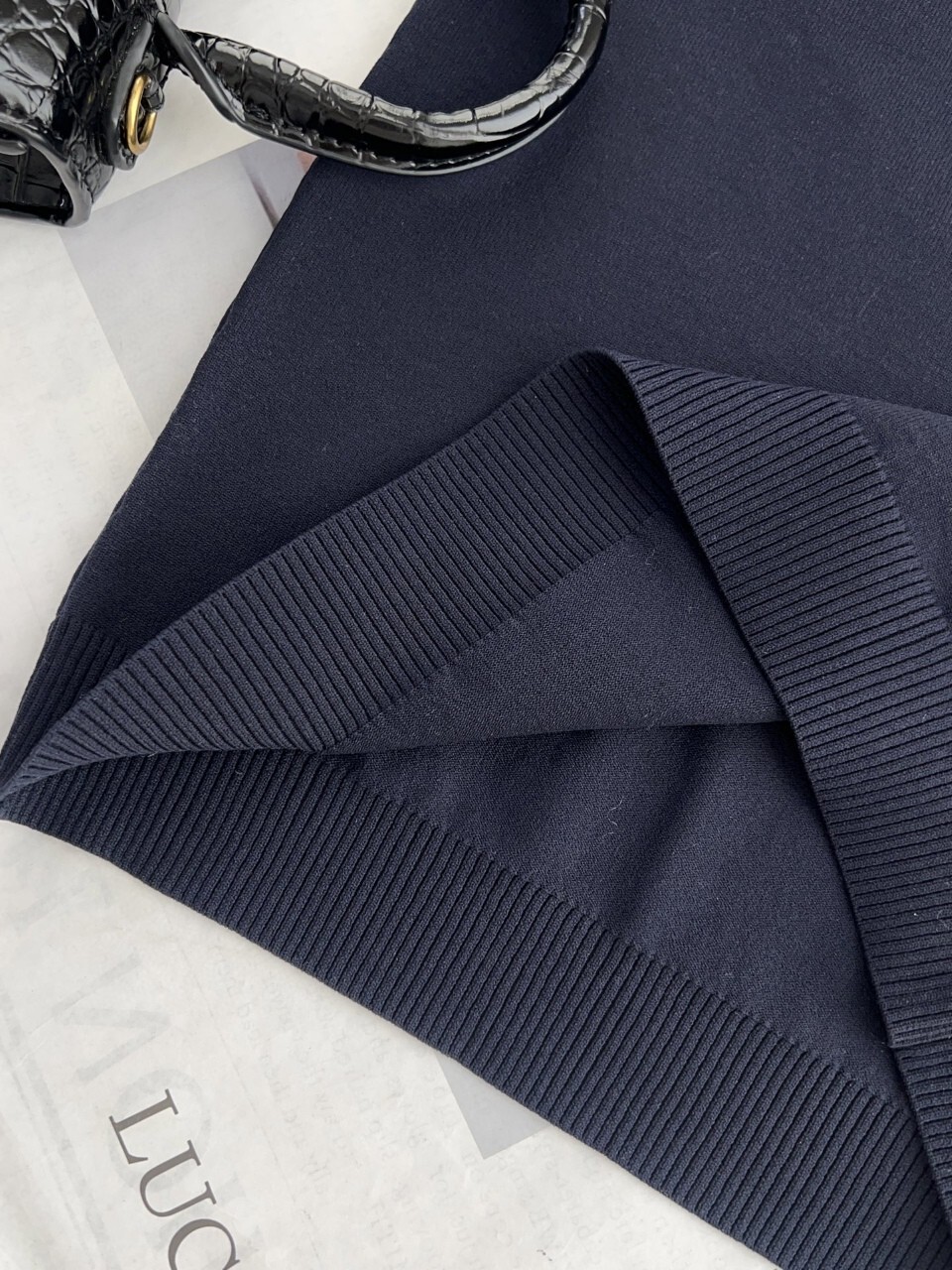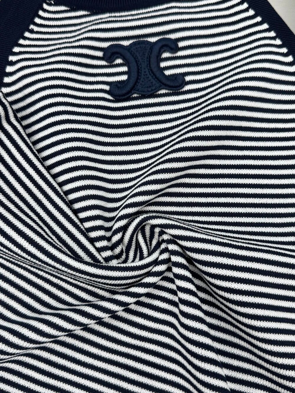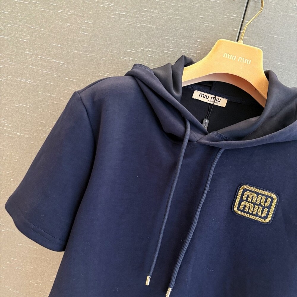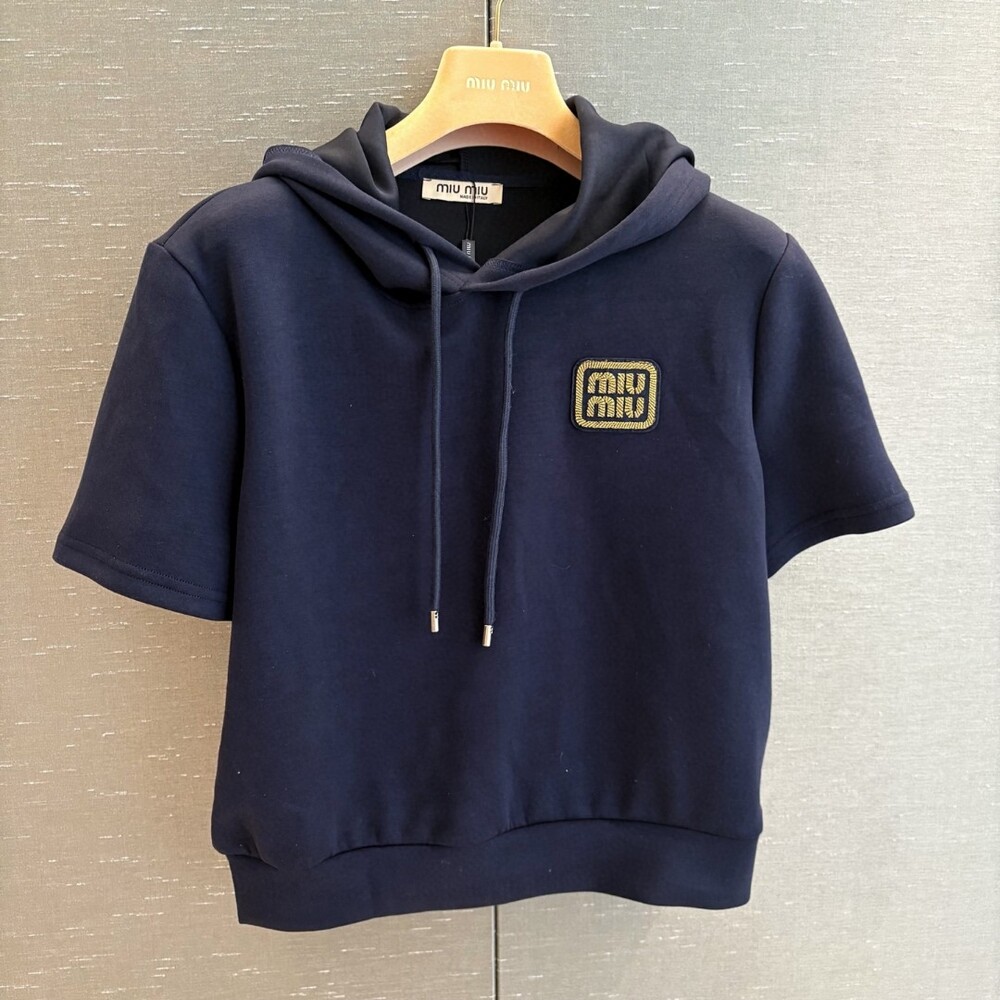 I. 미우 네이비 배색 라운드 티셔츠