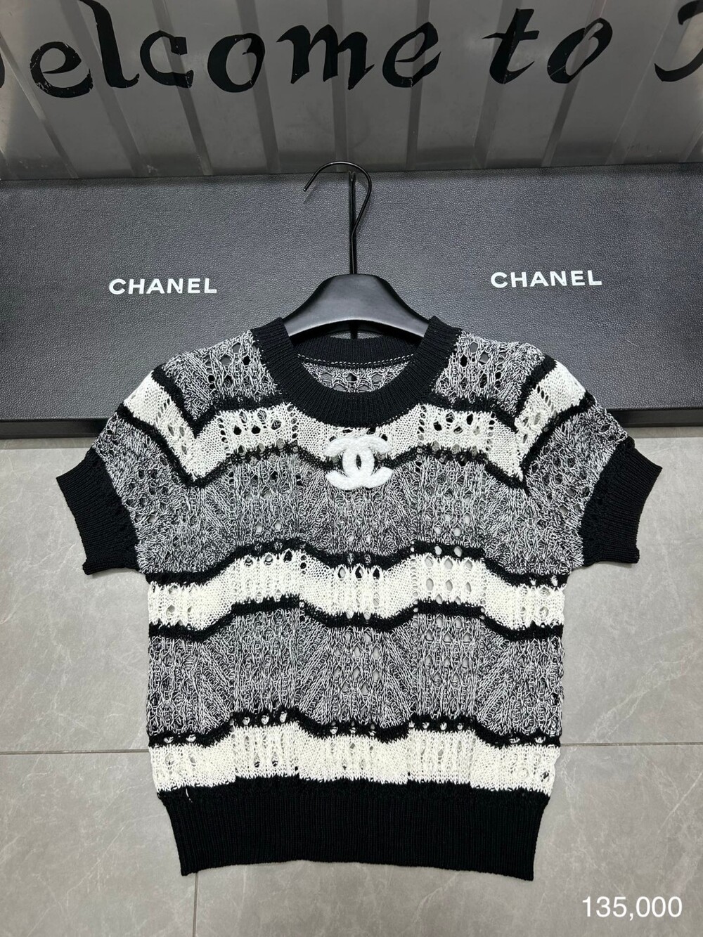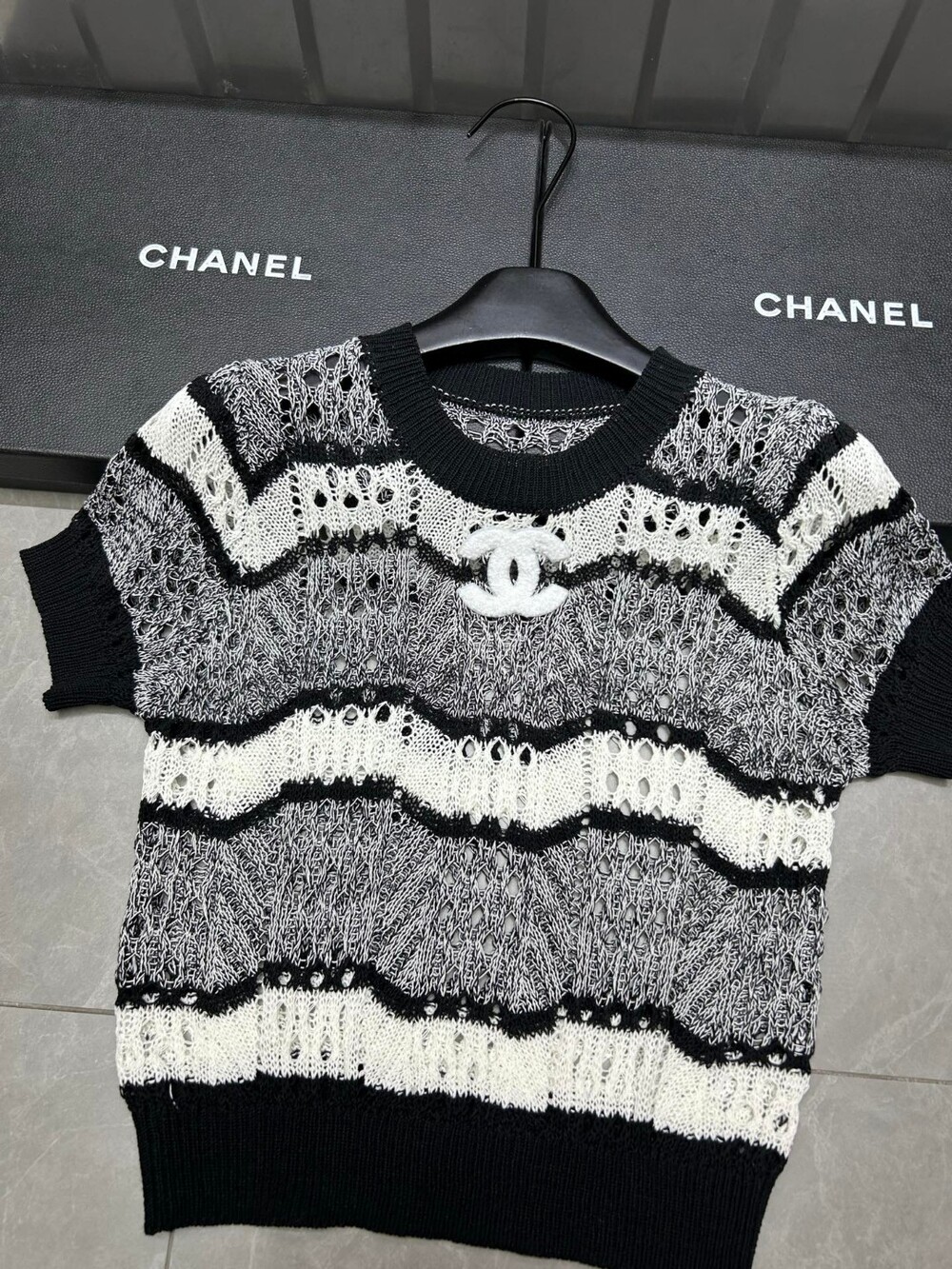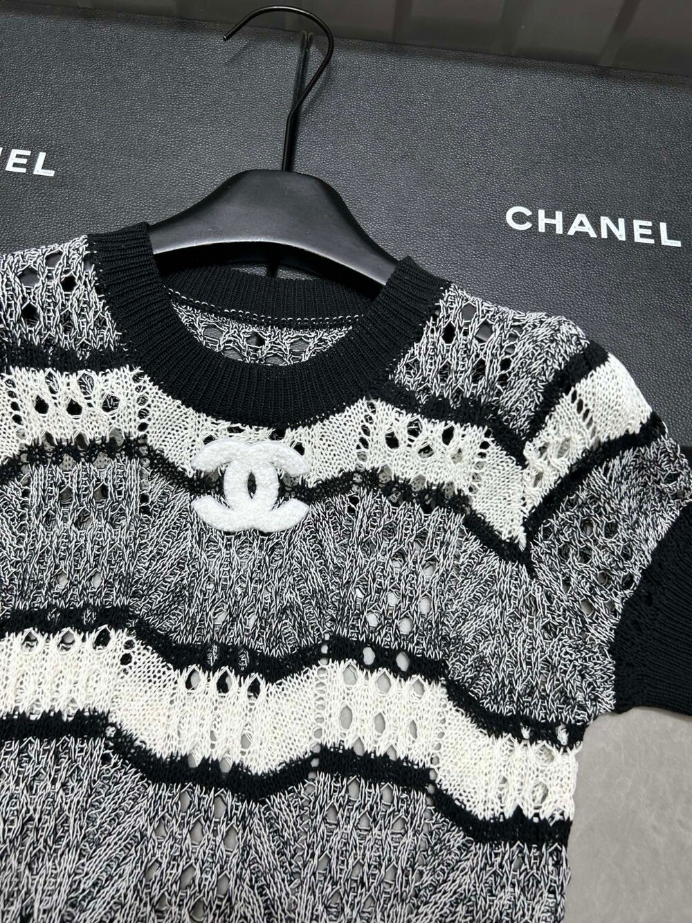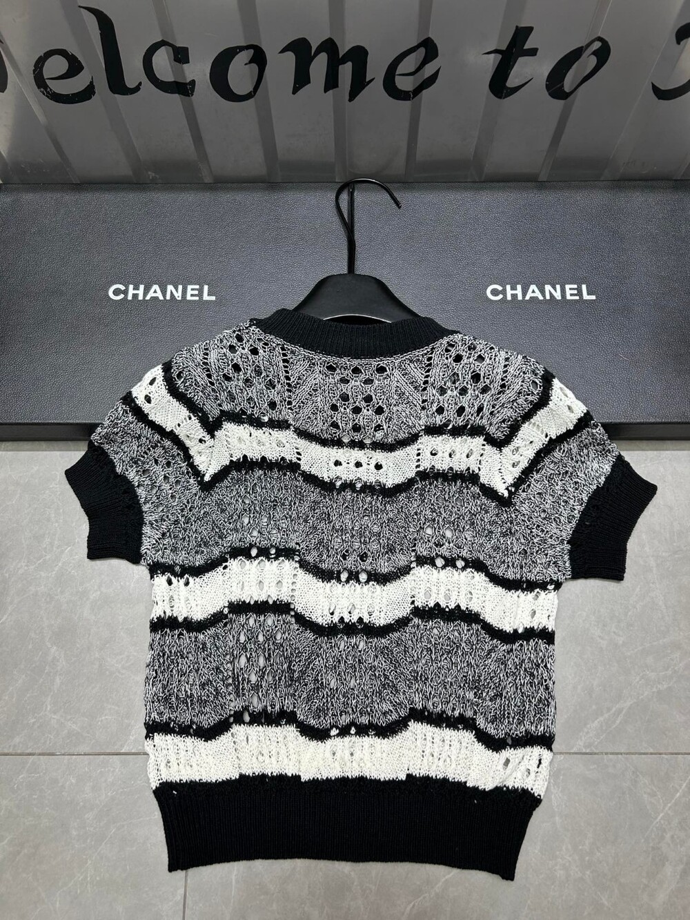 M. CC 펀칭 블랙 화이트 반소매 니트