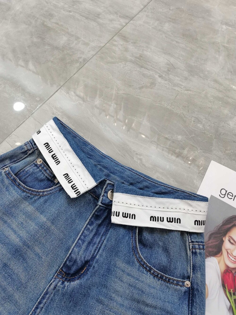 N. 뮤뮤 워싱 와이드 데님
