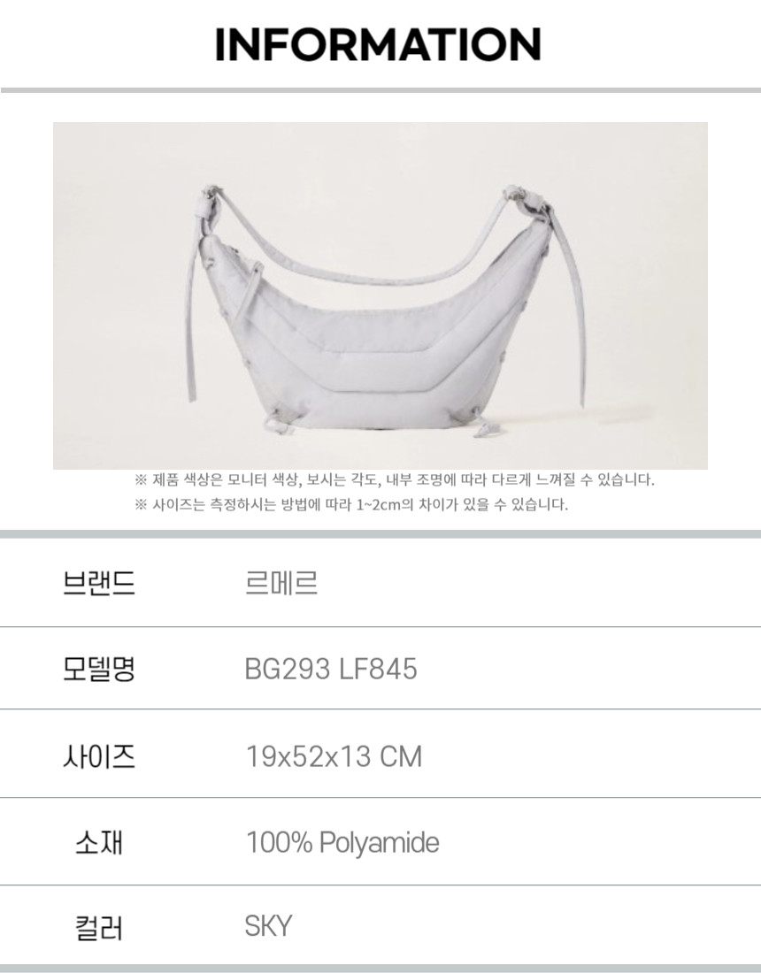 [국내재고보유] 르메르 스몰 소프트 게임백 라이트스카이[SKY] BG293 LF845