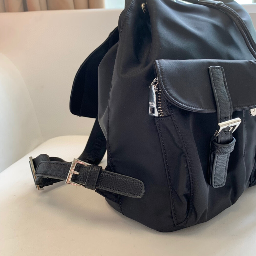 The whole is made of the brand's unique parachute waterproof nylon material with exquisite Saffiano leather trim. Its nylon is different from ordinary nylon, and the texture is very strong, not soft, soft and smooth to the touch, not to mention light, and very resistant to dirt durable. It's also waterproof, so you won't be afraid of getting distressed when it rains. Flip cover + internal drawstring design can maximize the use of space Only Prada's can think of such a feel bag. Many foreign celebrities like to carry on their backs, women carrying them are particularly handsome and individual. In addition to their daily use when going out, they are also a powerful tool for concave shapes. Size: 35×30cm