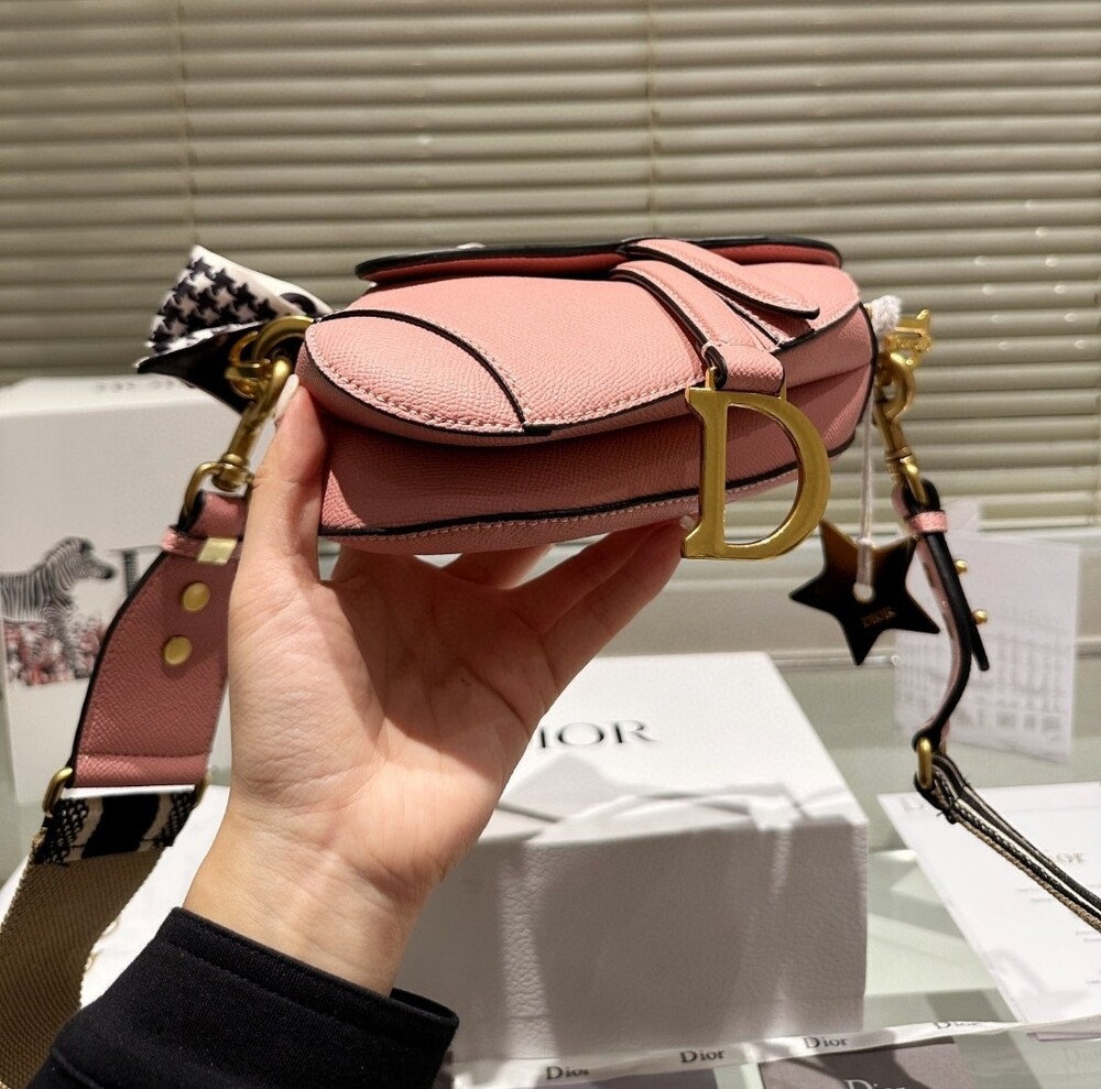 Mini Dior Saddle BagIt was created in 2000 by John Galliano, a Dior designer, who wanted to inspire women to be more independent of themselvesSaddle bag design modeling from the side to see the saddle modeling, sagging D perfect formation of horseshoe designThe Saddle cover is in a natural arc, like Lady Dior-, and is also made from a hand-made mould stand Reflect the spirit of Dior's advanced hand-made customization, adhere to the most traditional and extreme French style, as well as Italian exquisite crafts The flap design comes from the saddle.The suction buckle design of the items placed on the magnet buckle simple and generous, highlighting the perfect consistency of the bag