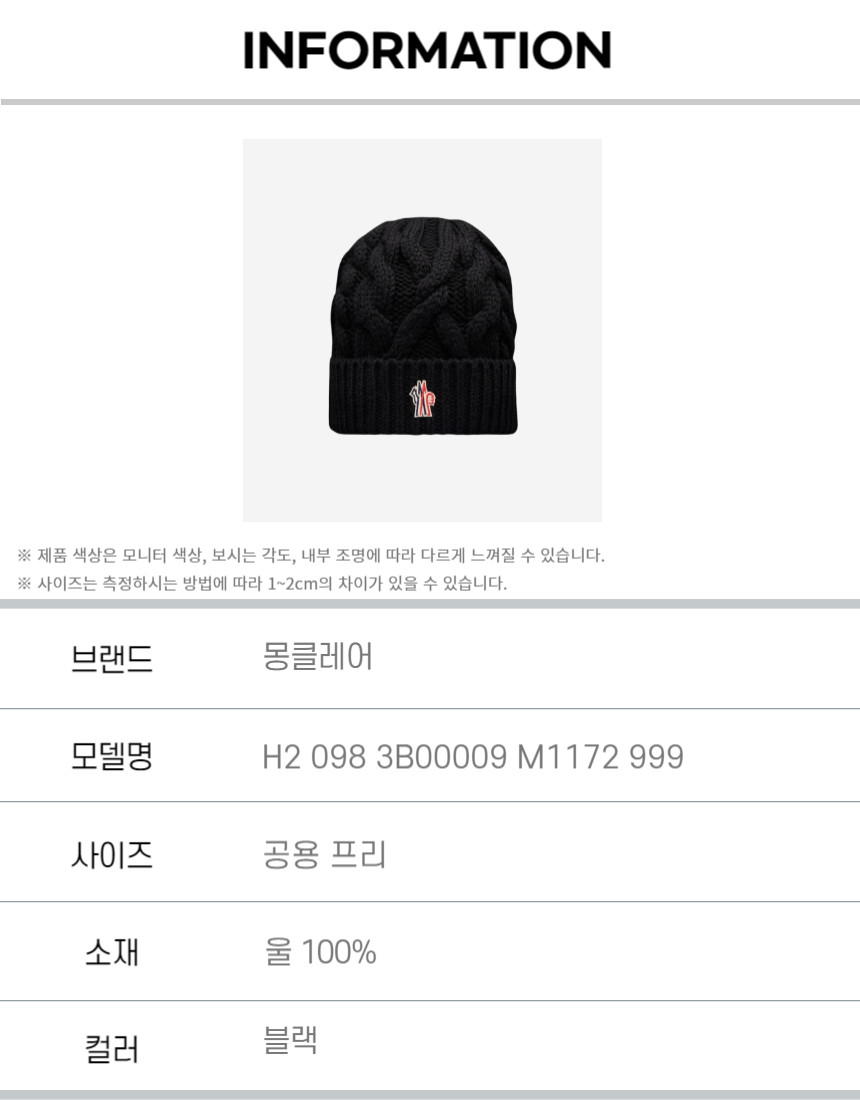 [국내재고보유] 몽클레어 꽈배기 비니 베이지 블랙 H2 098 3B00009 M1172 216