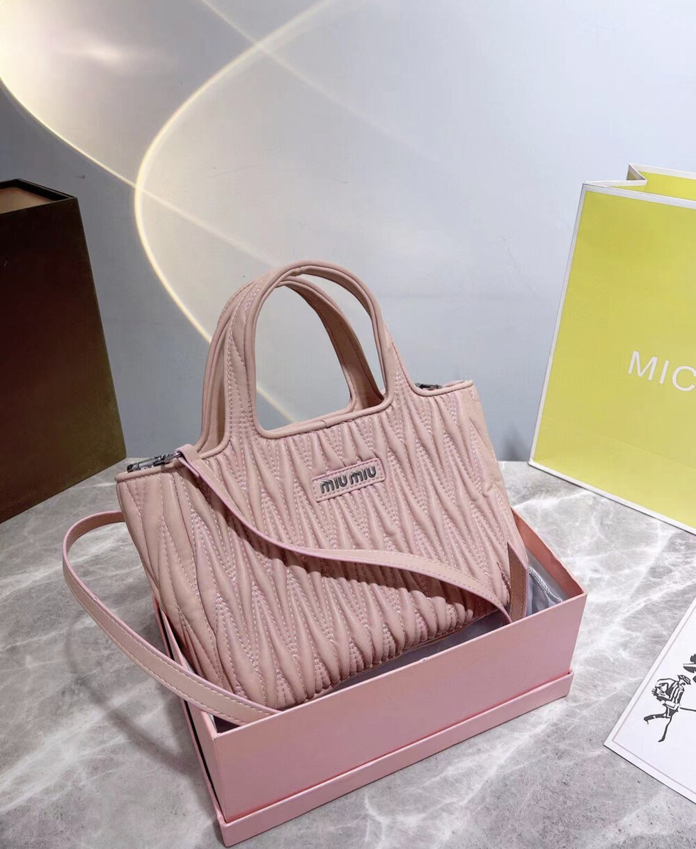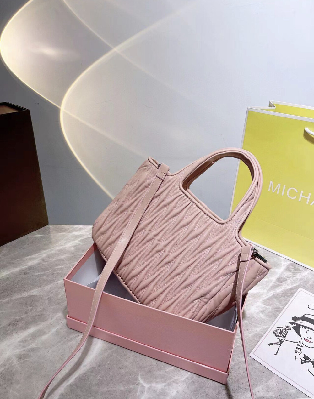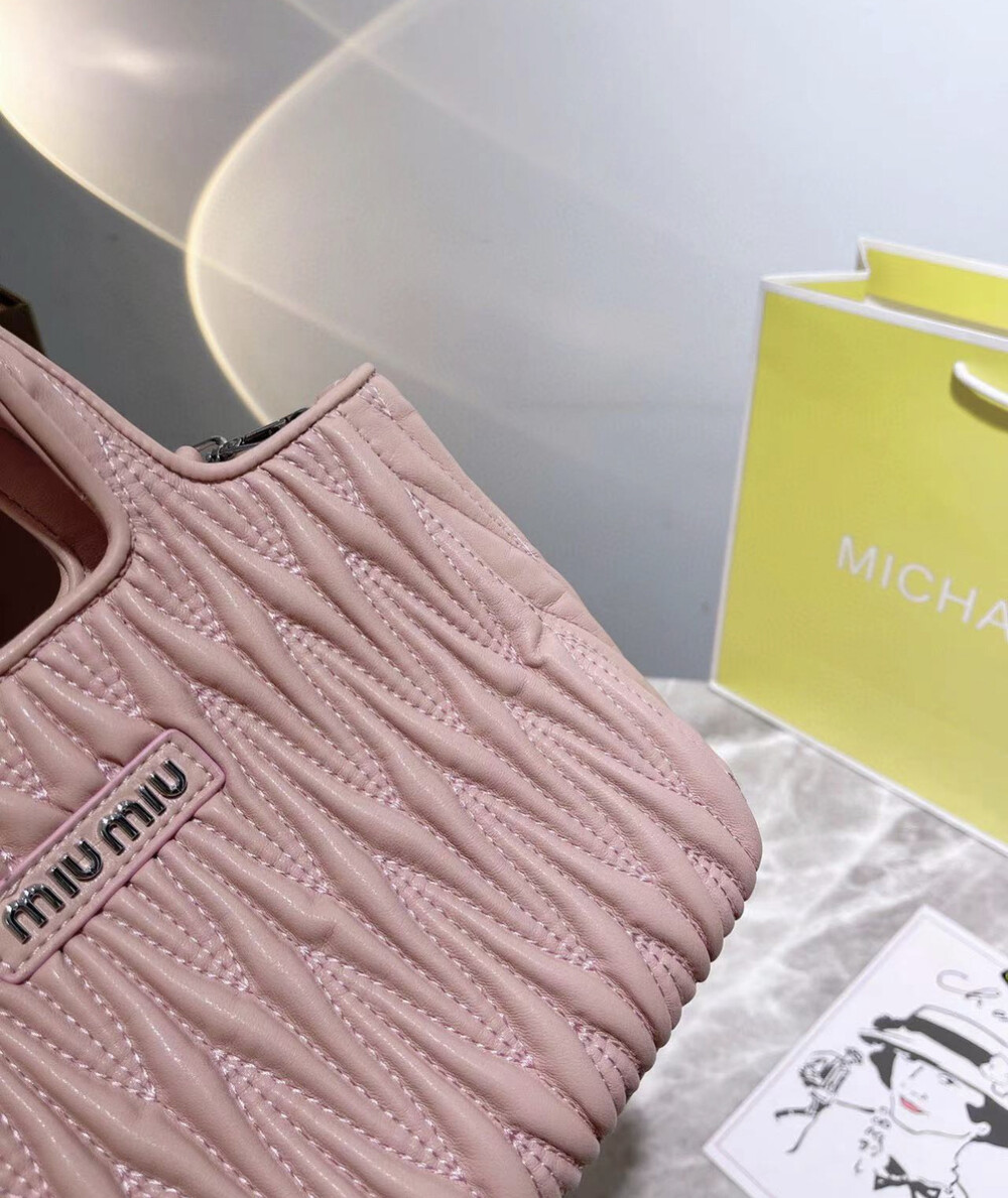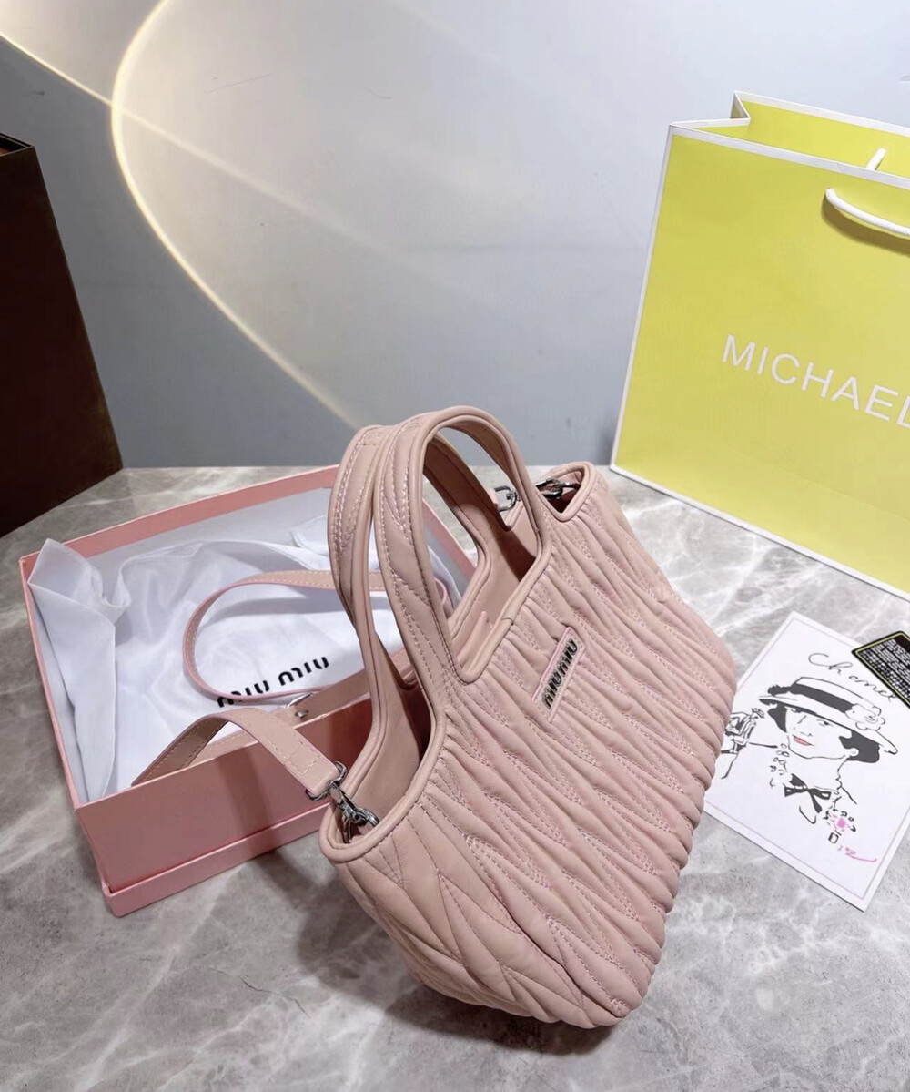 The new Miumiu SS21 lamb skin pleated shopping basket Tote is a -flavored season with an extra-fine, light touch added to the weight and texture of a girlish, practical fit: 21 18cm