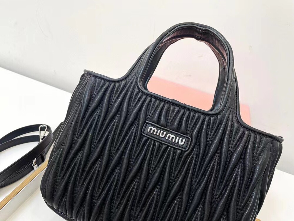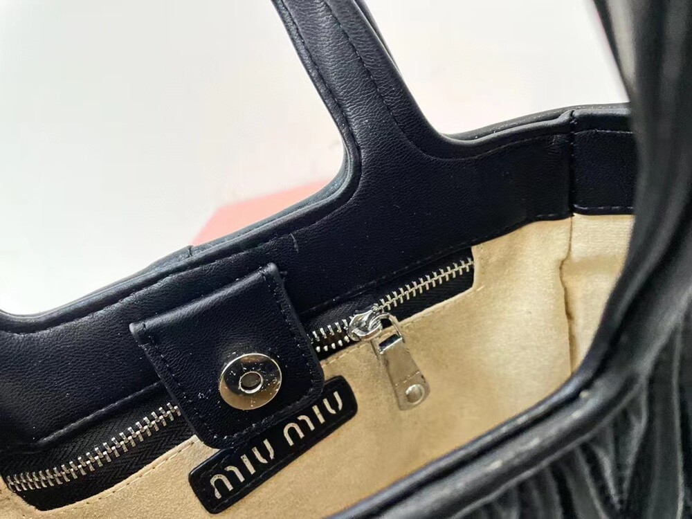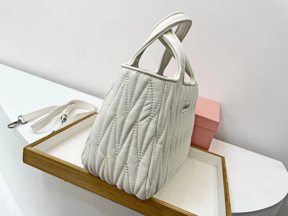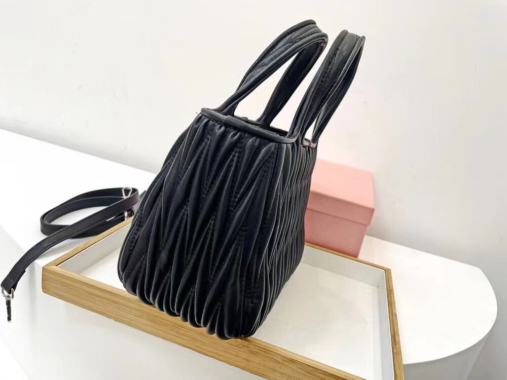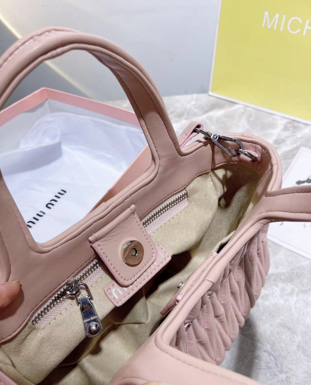The new Miumiu SS21 lamb skin pleated shopping basket Tote is a -flavored season with an extra-fine, light touch added to the weight and texture of a girlish, practical fit: 21 18cm