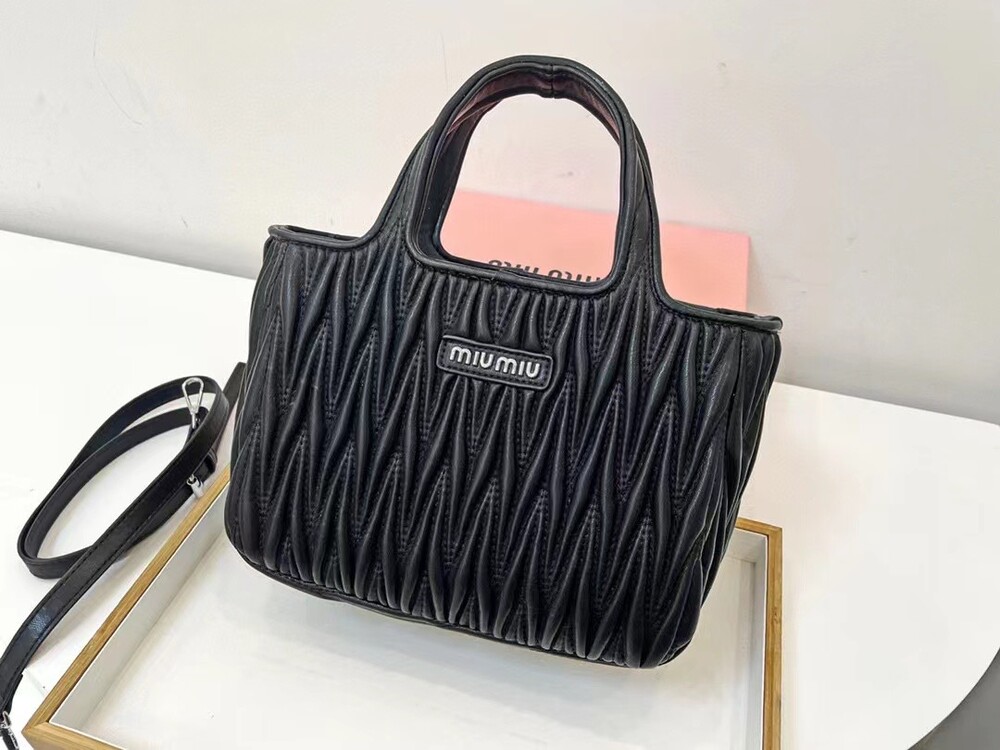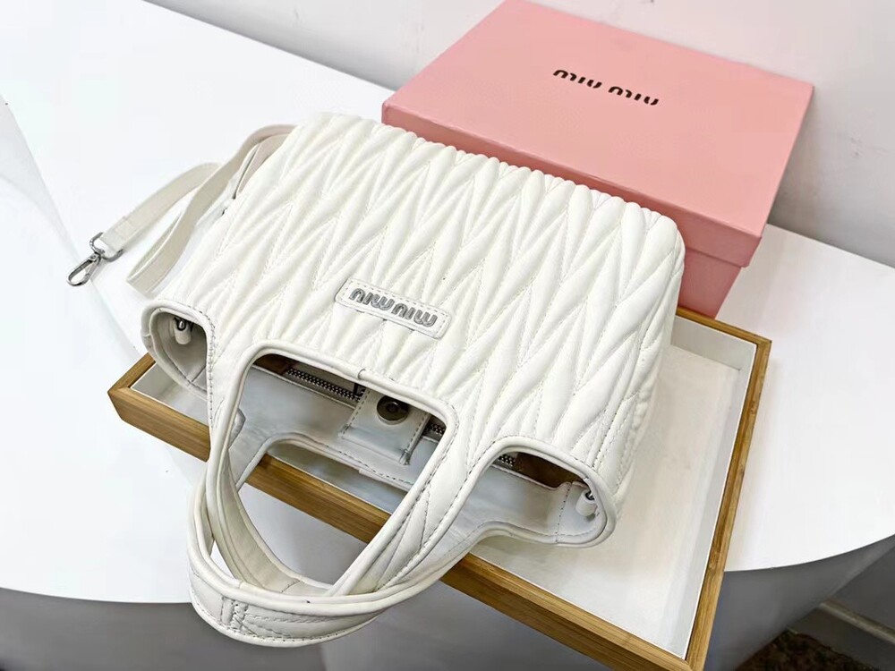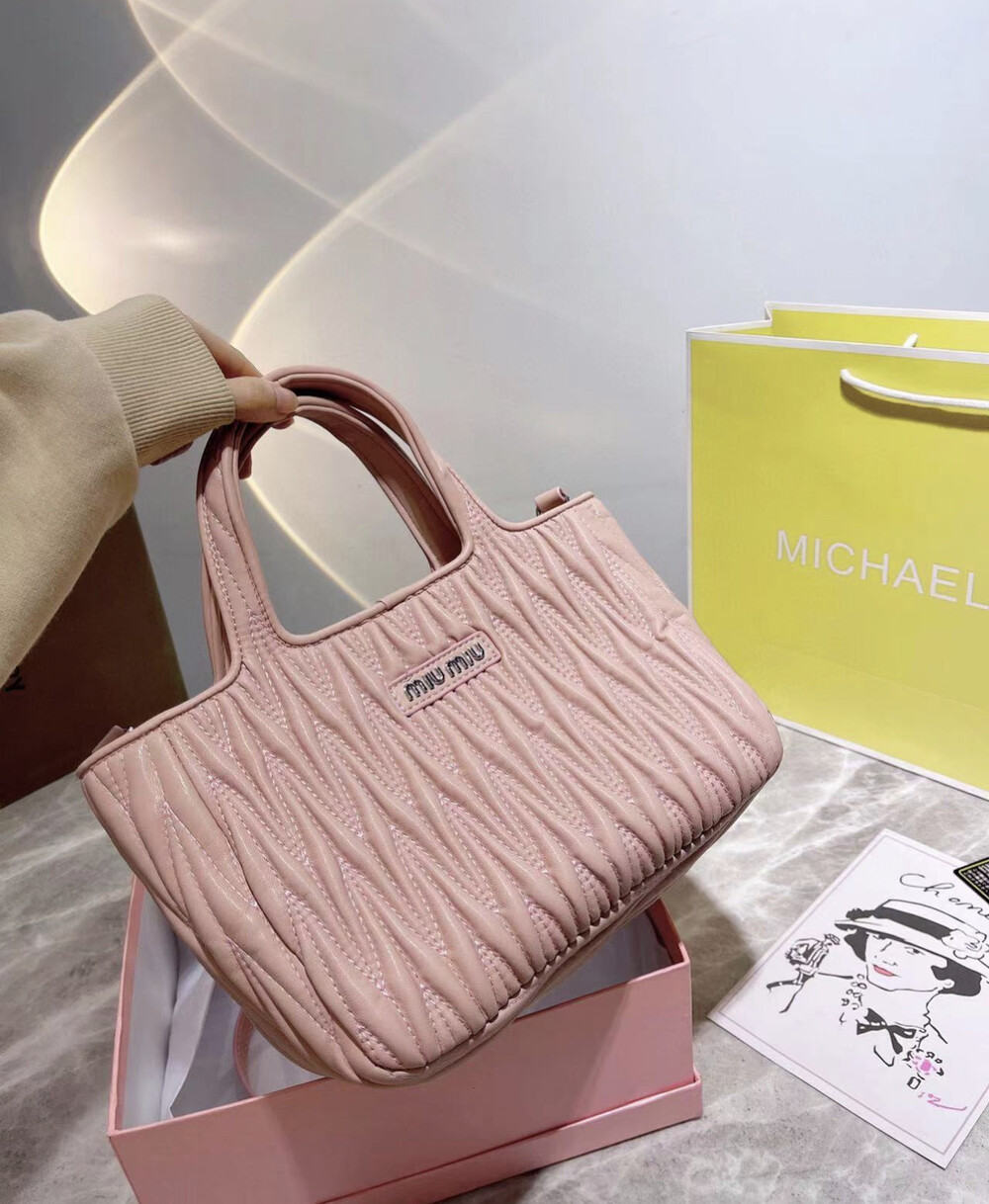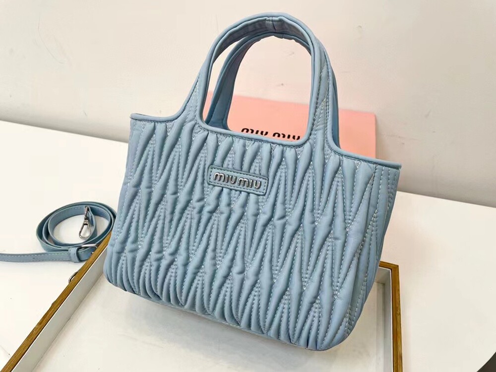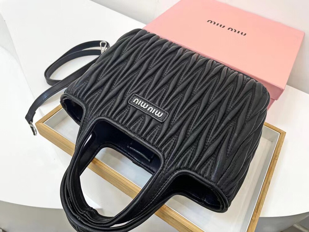 The new Miumiu SS21 lamb skin pleated shopping basket Tote is a -flavored season with an extra-fine, light touch added to the weight and texture of a girlish, practical fit: 21 18cm