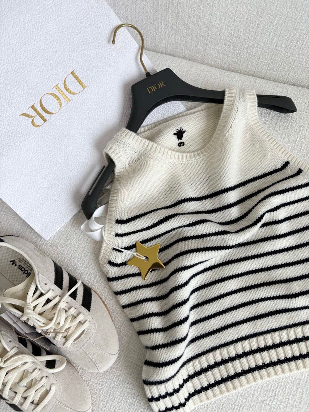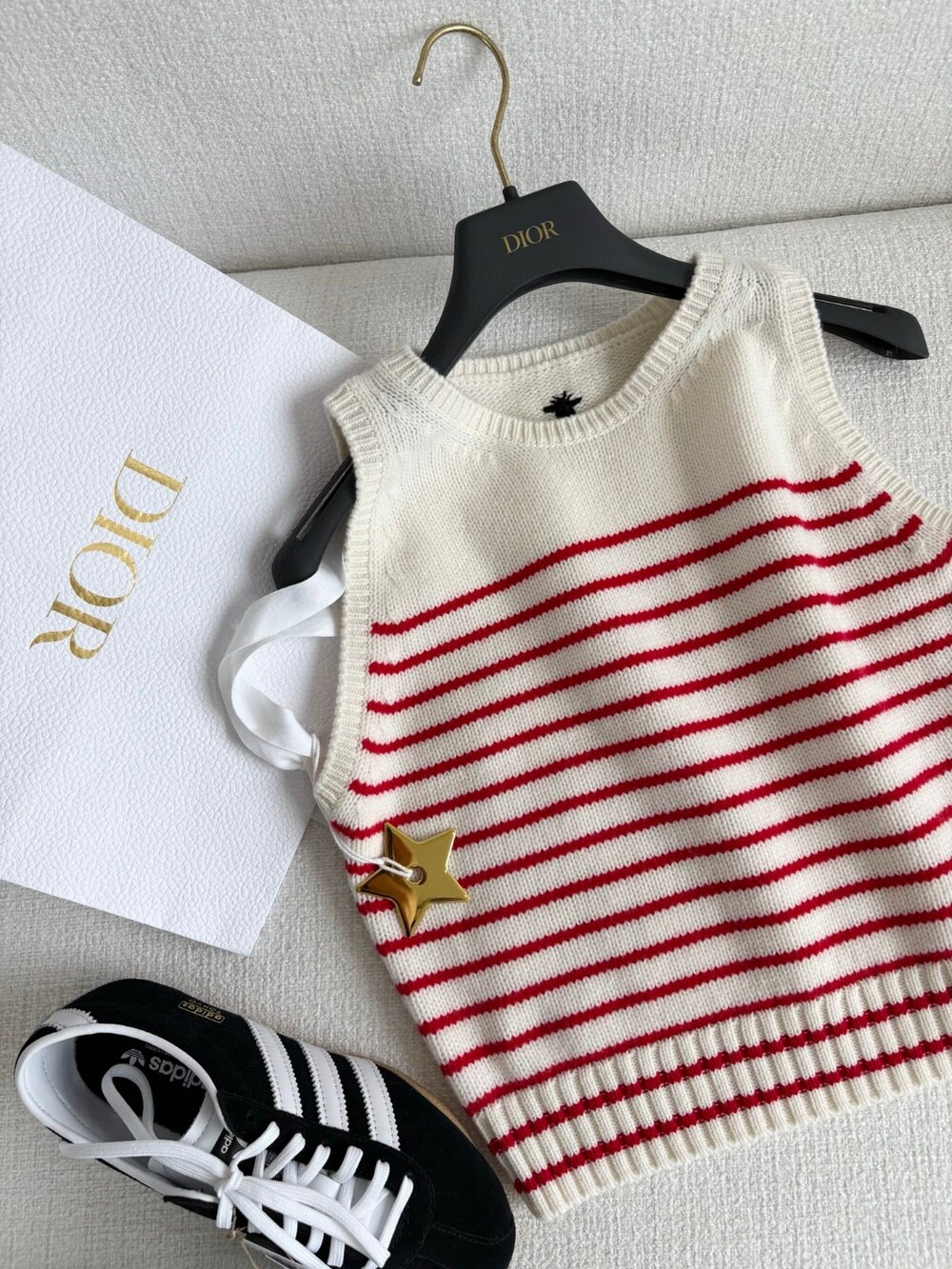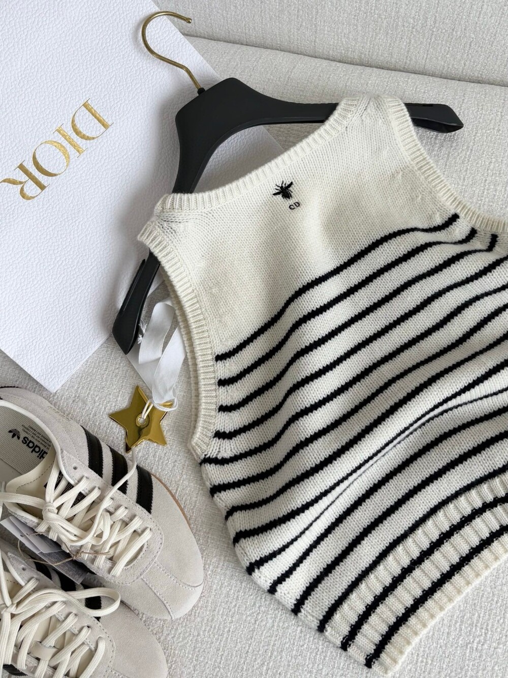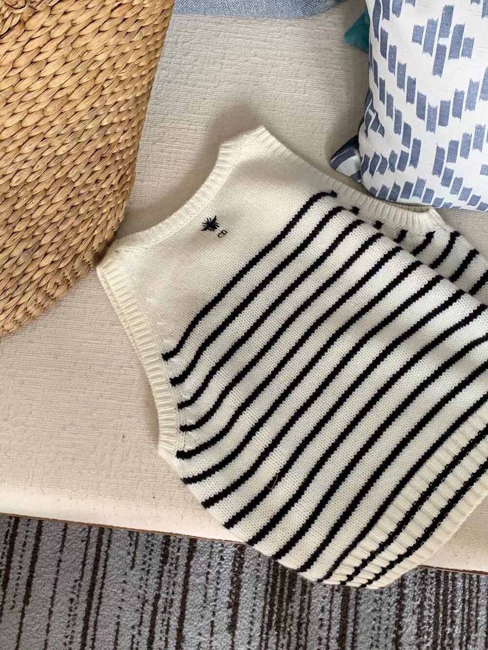 귀엽고 세련된 무드의 스트라이프 울 니트 조끼입니다.
