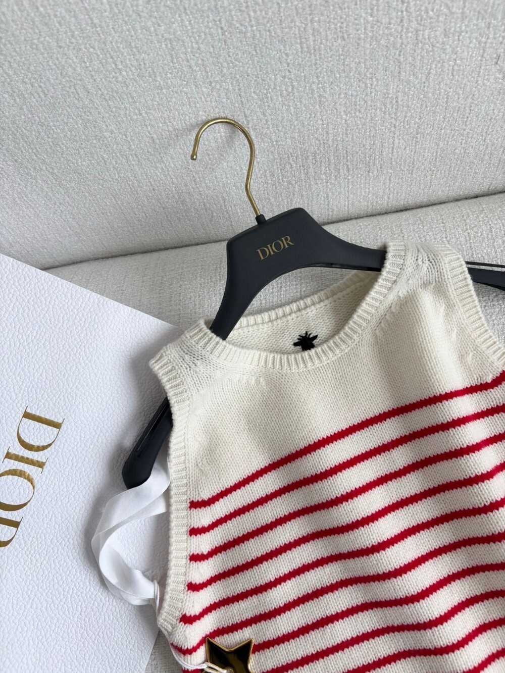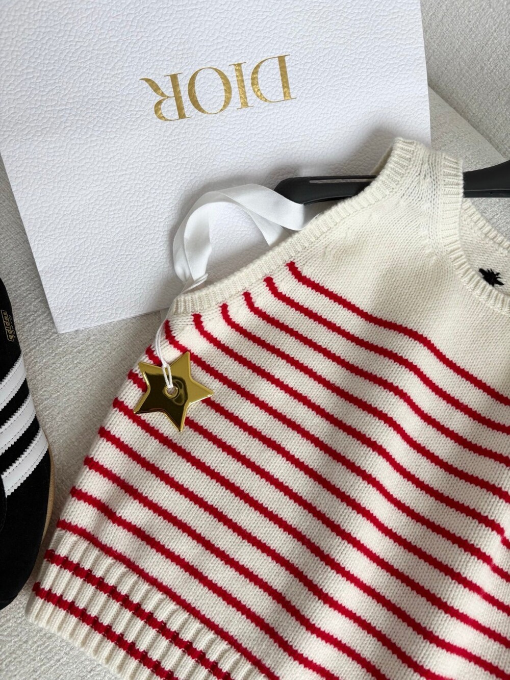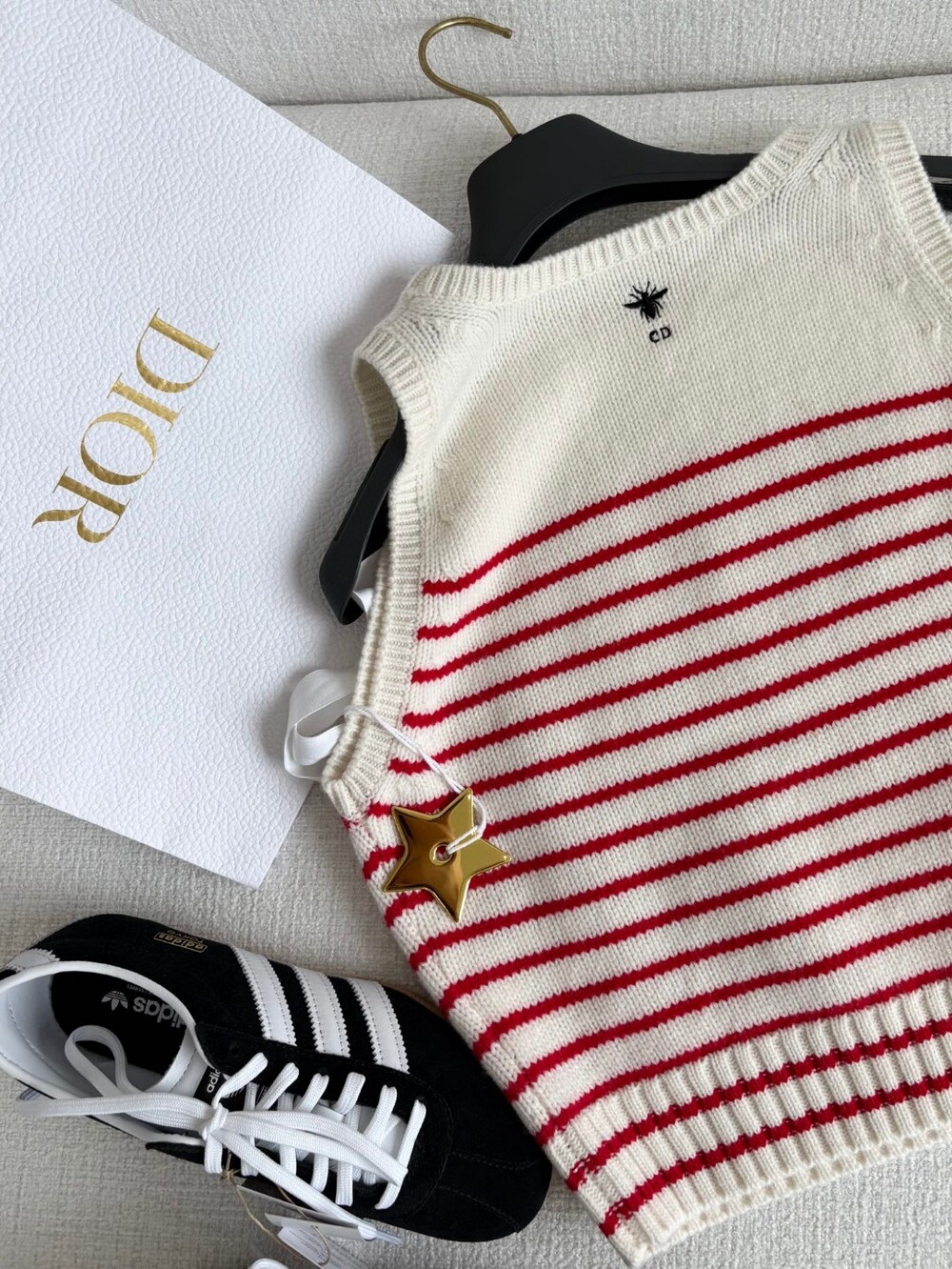 귀엽고 세련된 무드의 스트라이프 울 니트 조끼입니다.