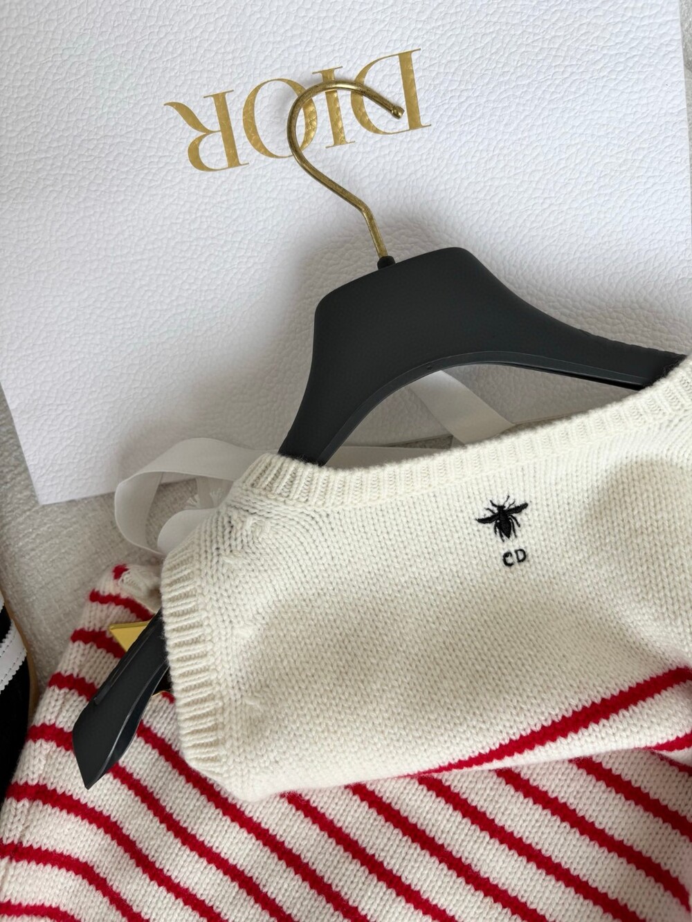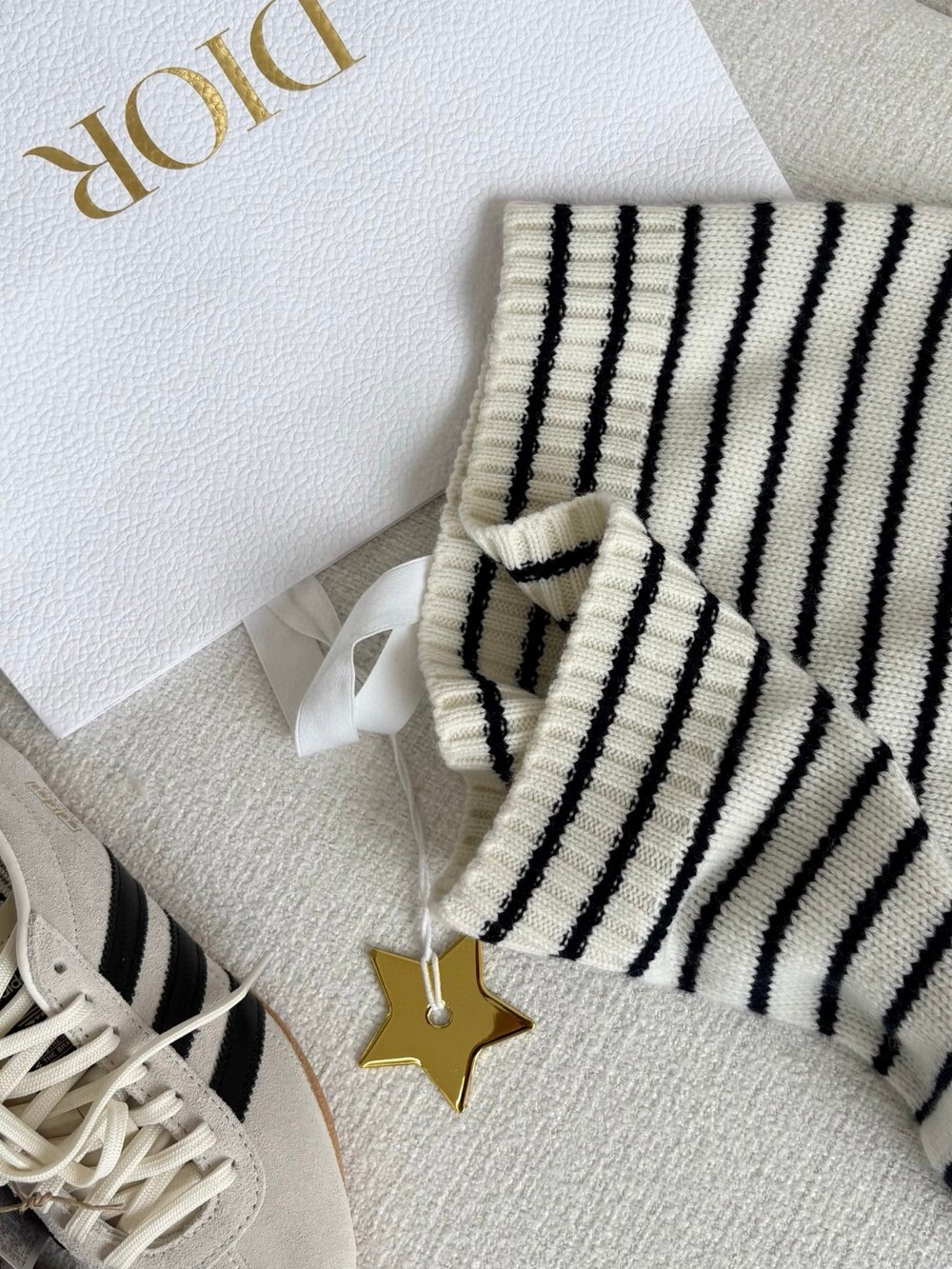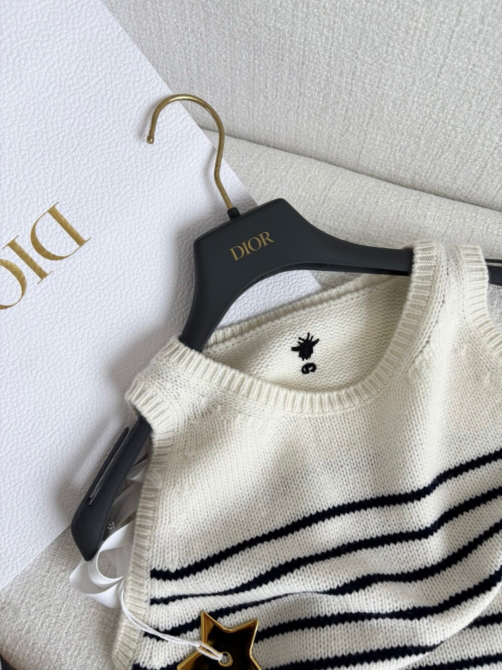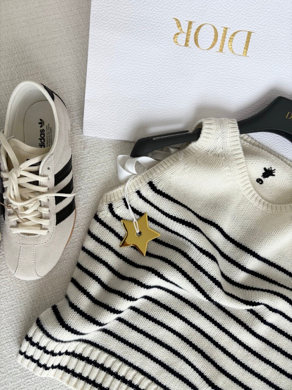 귀엽고 세련된 무드의 스트라이프 울 니트 조끼입니다.