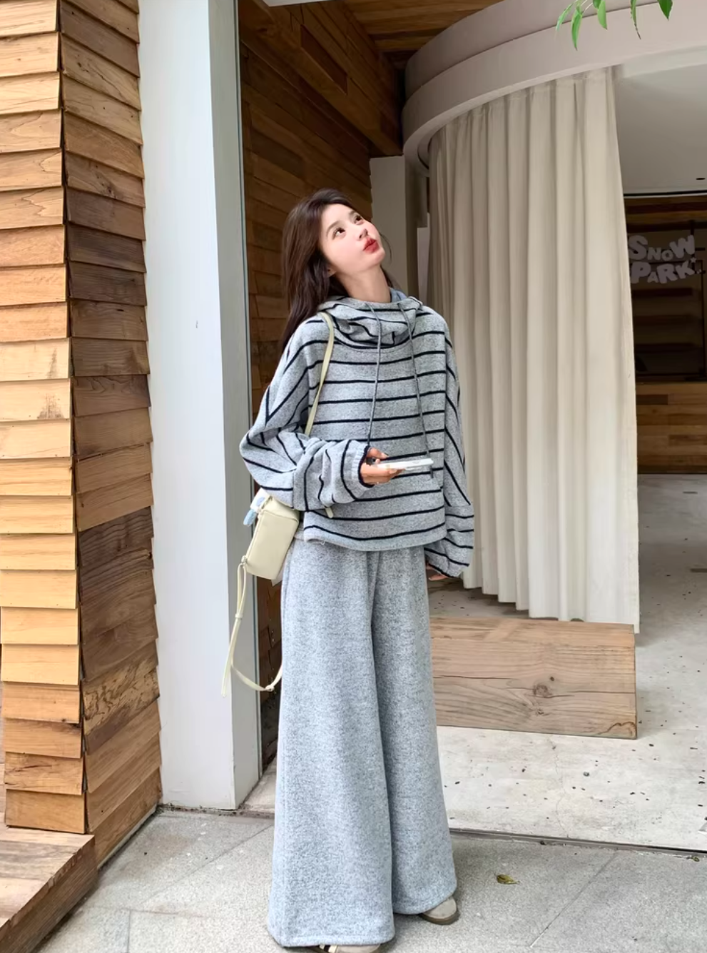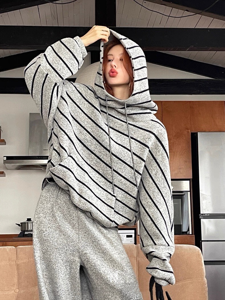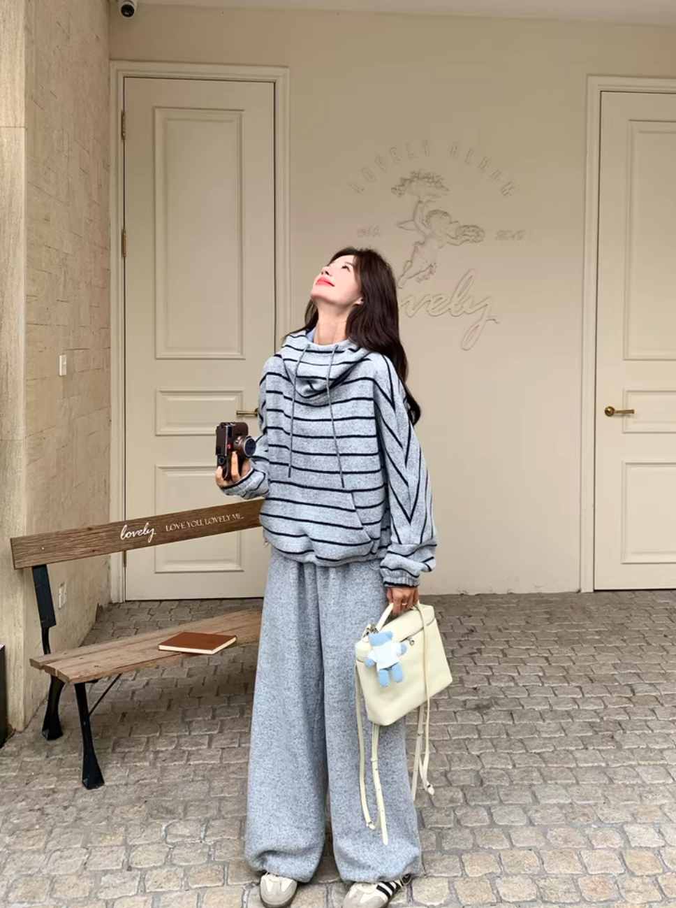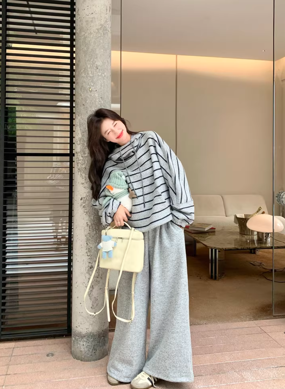 도톰한 원단으로입자마자 따뜻하고 포근한 스트라이프 트레이닝 세트예요.
