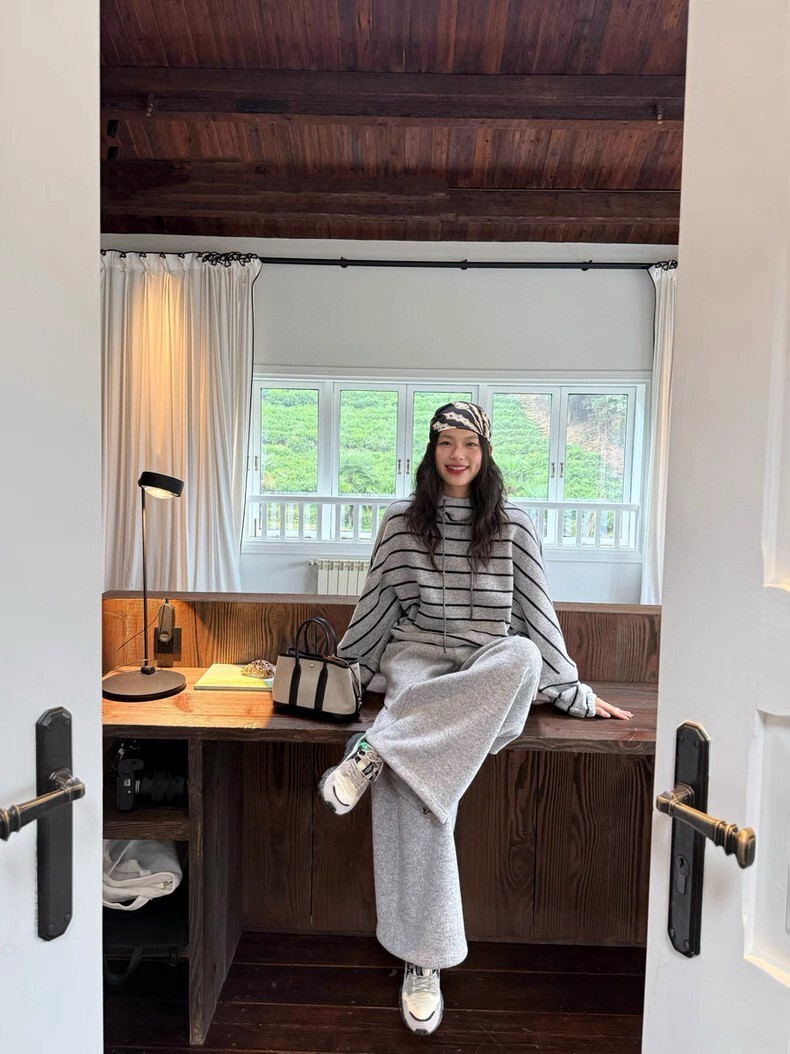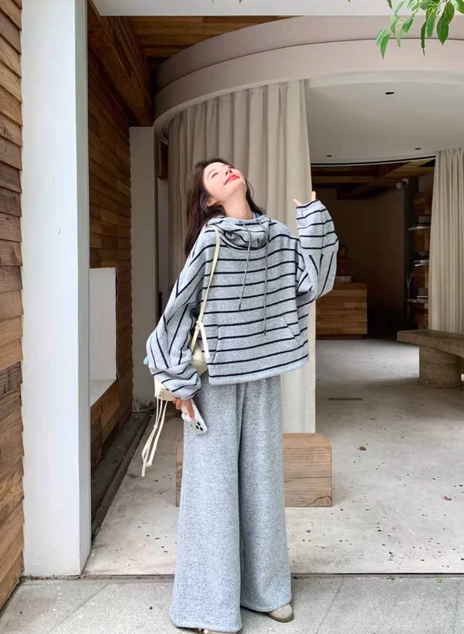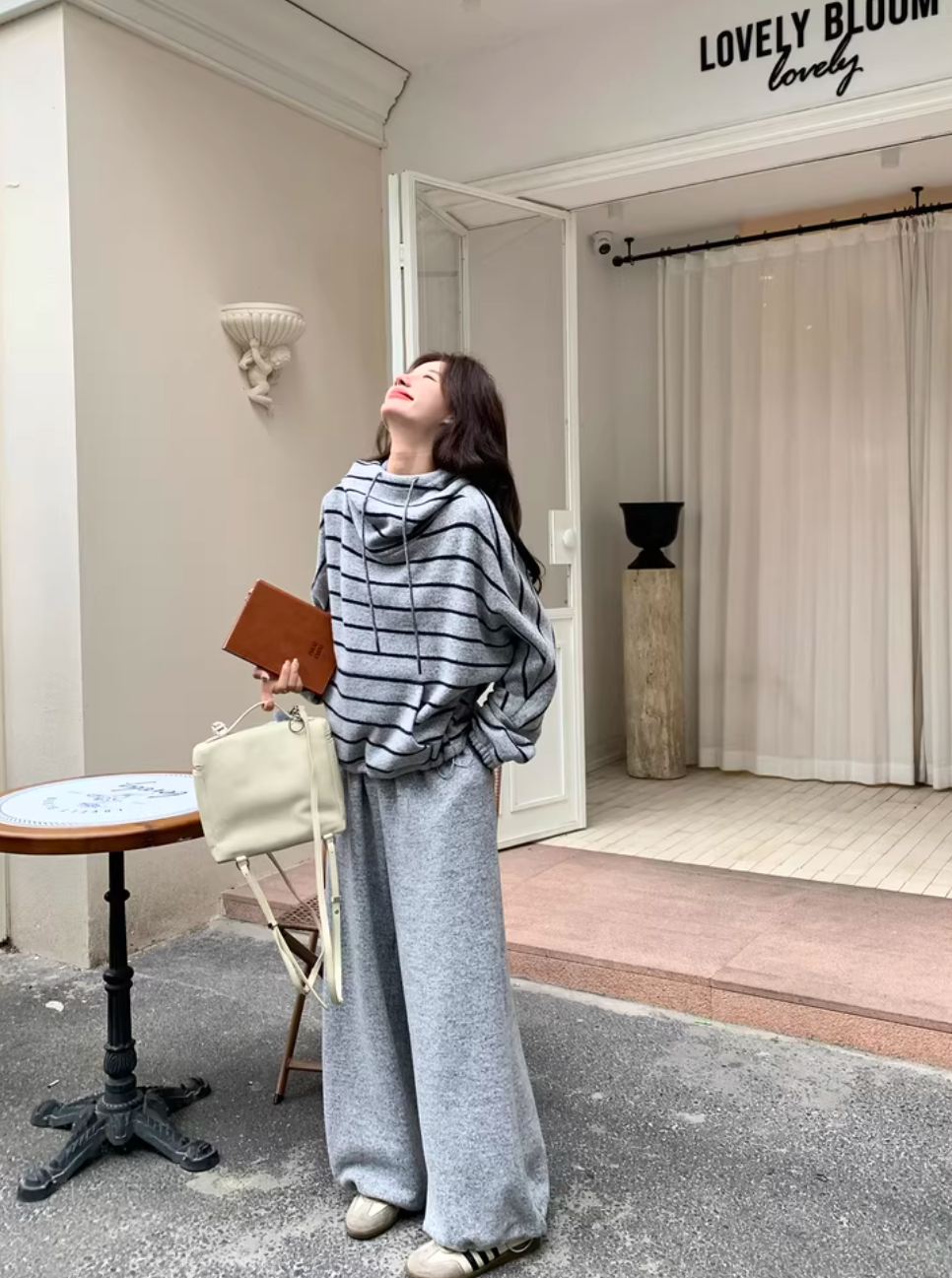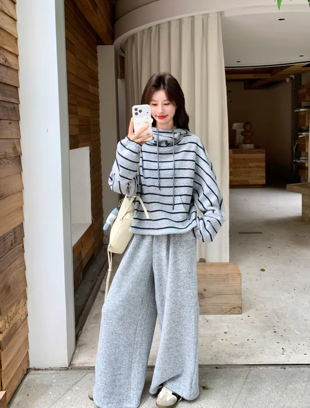 도톰한 원단으로입자마자 따뜻하고 포근한 스트라이프 트레이닝 세트예요.