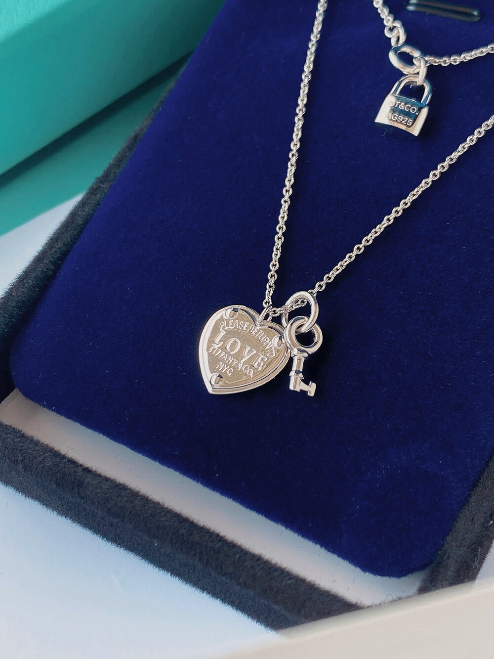 Tiffany & Co Tiffany 925 Pure Silver Necklace Heart Lock Love 925 Pure Silver Clavicle Chains with Love Classic Tiffany & Co Tiffany 925 Pure Silver Necklace Simple and resonant Design, Explaining the True Meaning of Love Material: 925 Silver Chain Length ~45 cm